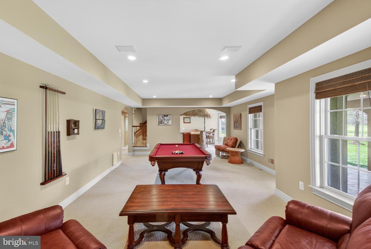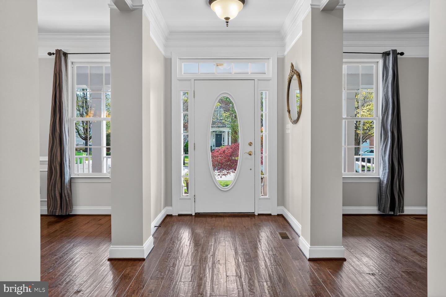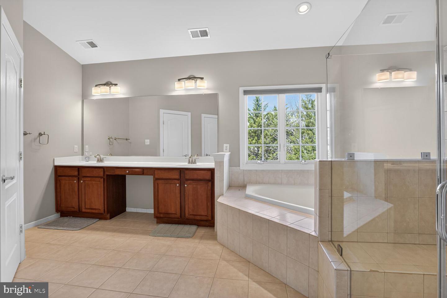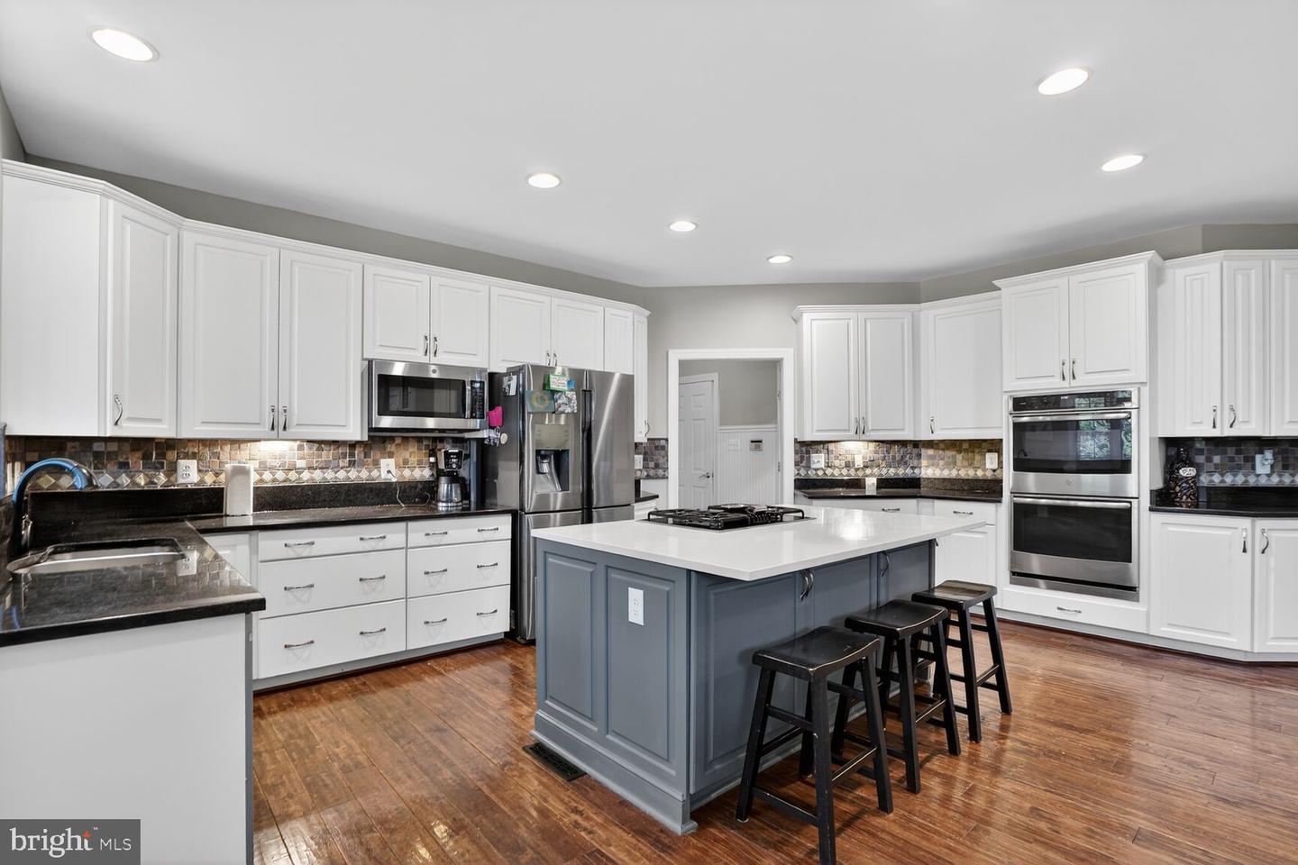 Freshly painted inside and out, this home is move-in ready! Super popular Fitzgerald II model from Van Metre Homes offers over 5,400 sq ft on three finished levels with two large unfished storage rooms, tranquil front porch and a two-car front-load garage. Great lot bordered with trees offers a rear patio, perfect for relaxing around a firepit along with a maintenance-free Trex deck for grilling and dining out. The inside has been freshly painted and youll find gorgeous hardwood floors throughout the entire main level. Kitchen has been updated with quartz and granite counters along with stainless steel appliances including a gas cooktop, double wall oven, dishwasher and refrigerator with ice maker. The 15 by 12 breakfast room off the kitchen offers a French door to the rear Trex deck. Two-story family room with floor to ceiling stone fireplace, main level office with double glass doors. Four bedrooms and three full baths on upper level with newer plush neutral carpet. Youll love the primary bedroom suite with lower sitting area, cathedral ceiling, ceiling fan, two large walk-in closets and luxurious primary bathroom with dual sink vanity, updated plumbing fixtures, large soaking tub and separate shower with new seamless glass enclosure. Lower level offers luxury vinyl plank flooring in rec room and game room and new plush neutral carpet in bonus room/5th bedroom. In-ground irrigation system. HVAC replaced inside and out. Enjoy all the community amenities that make Lansdowne on the Potomac so popular including indoor lap pool, fitness center, outdoor resort style pool, 2nd outdoor swimming pool, tot lots and pickleball and tennis courts. Hurry to see this home before its gone!