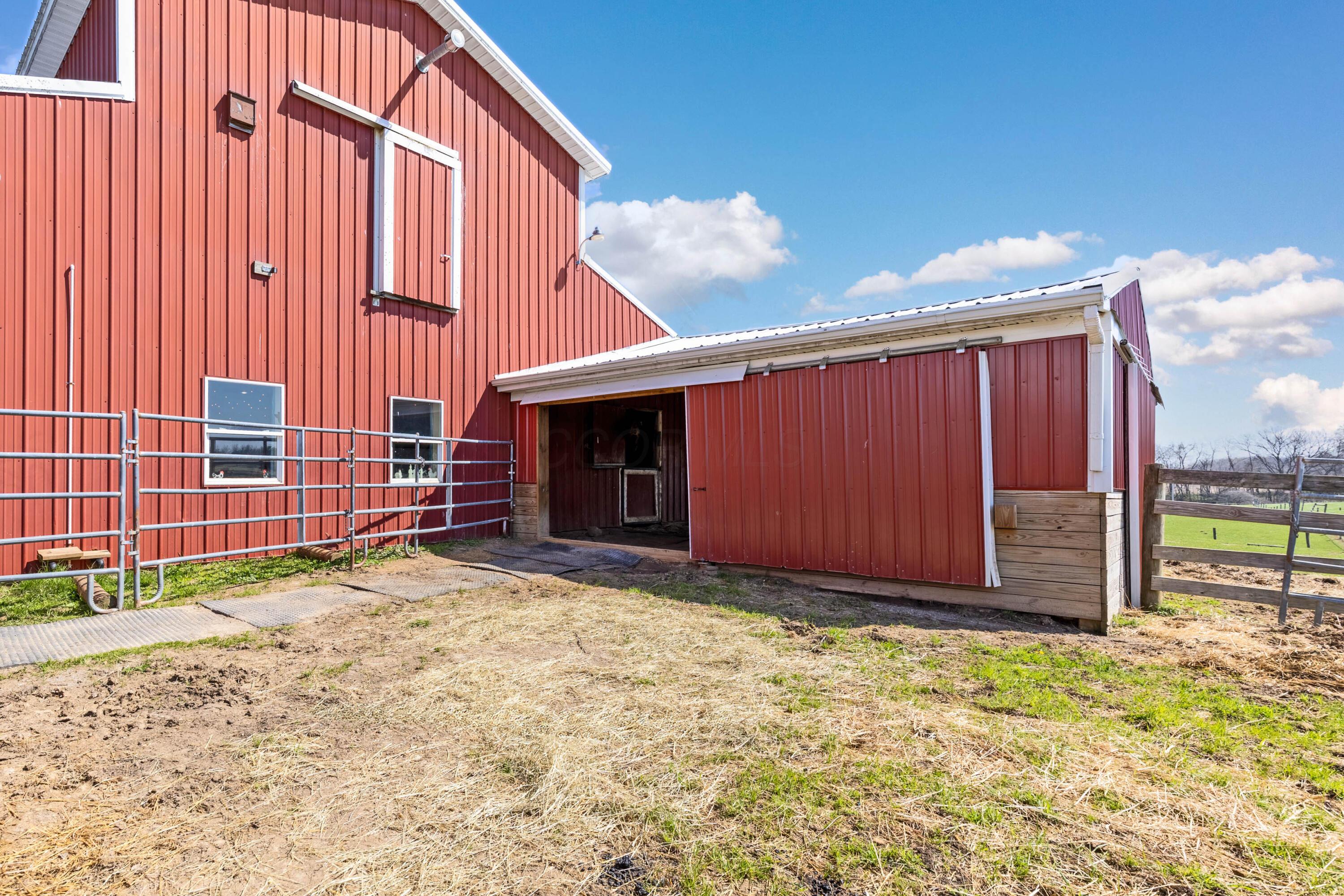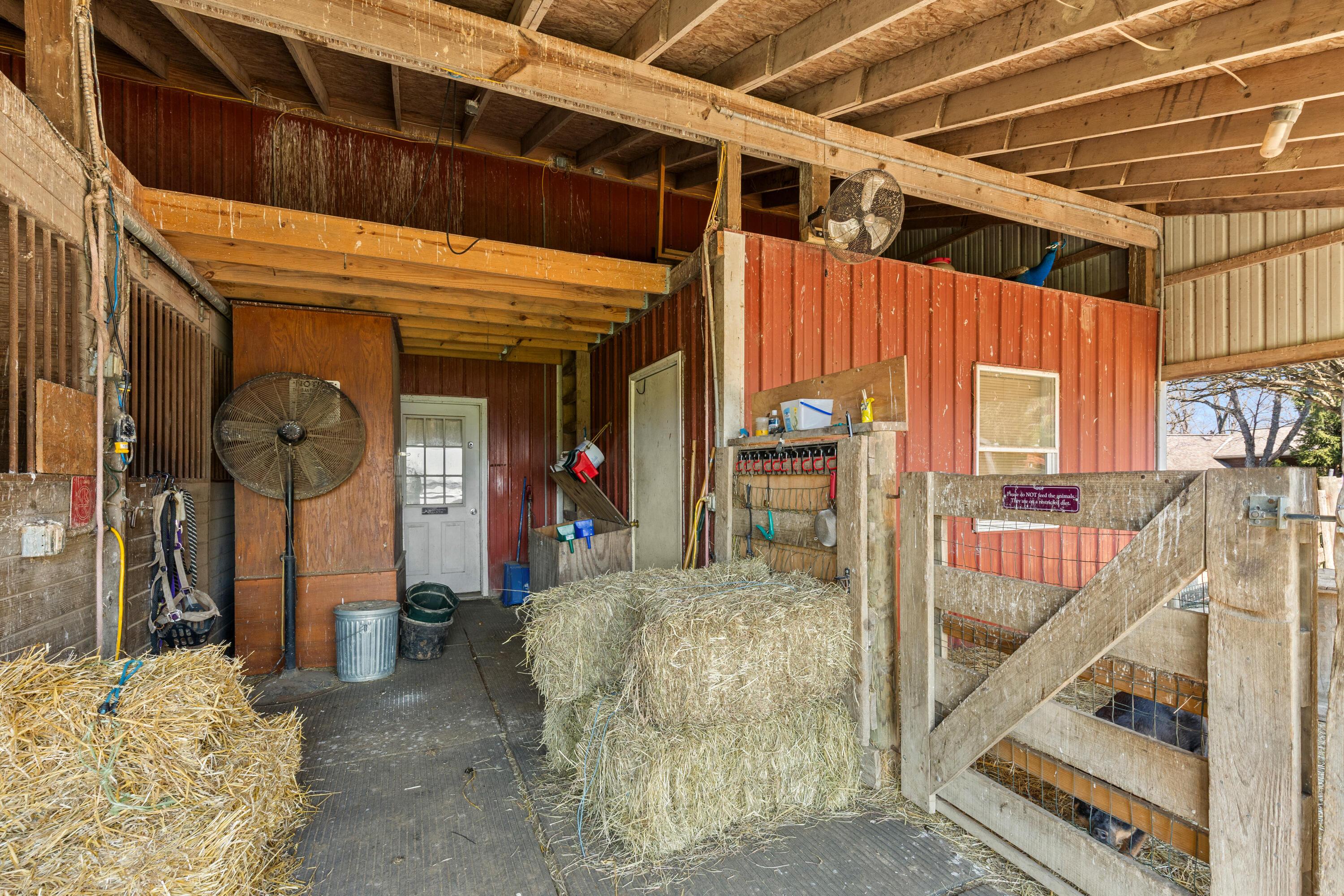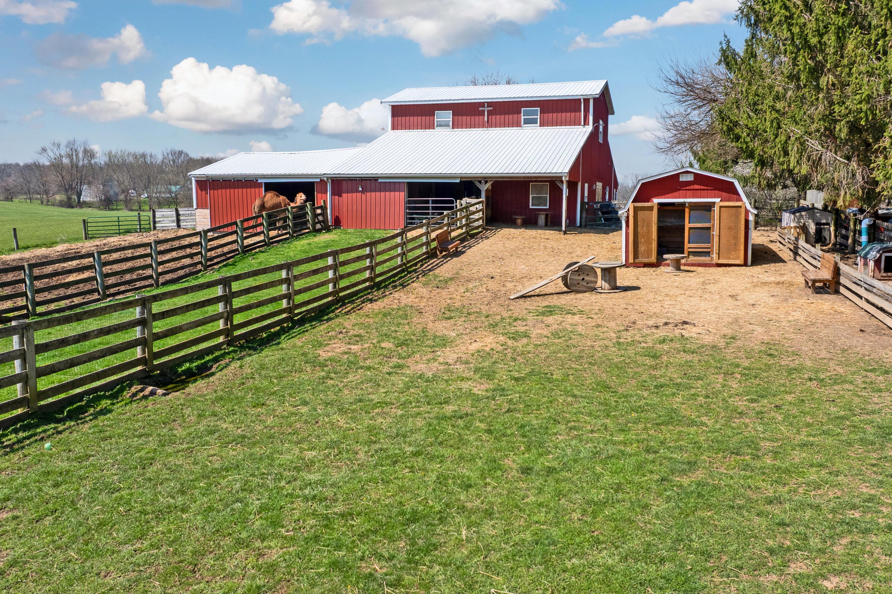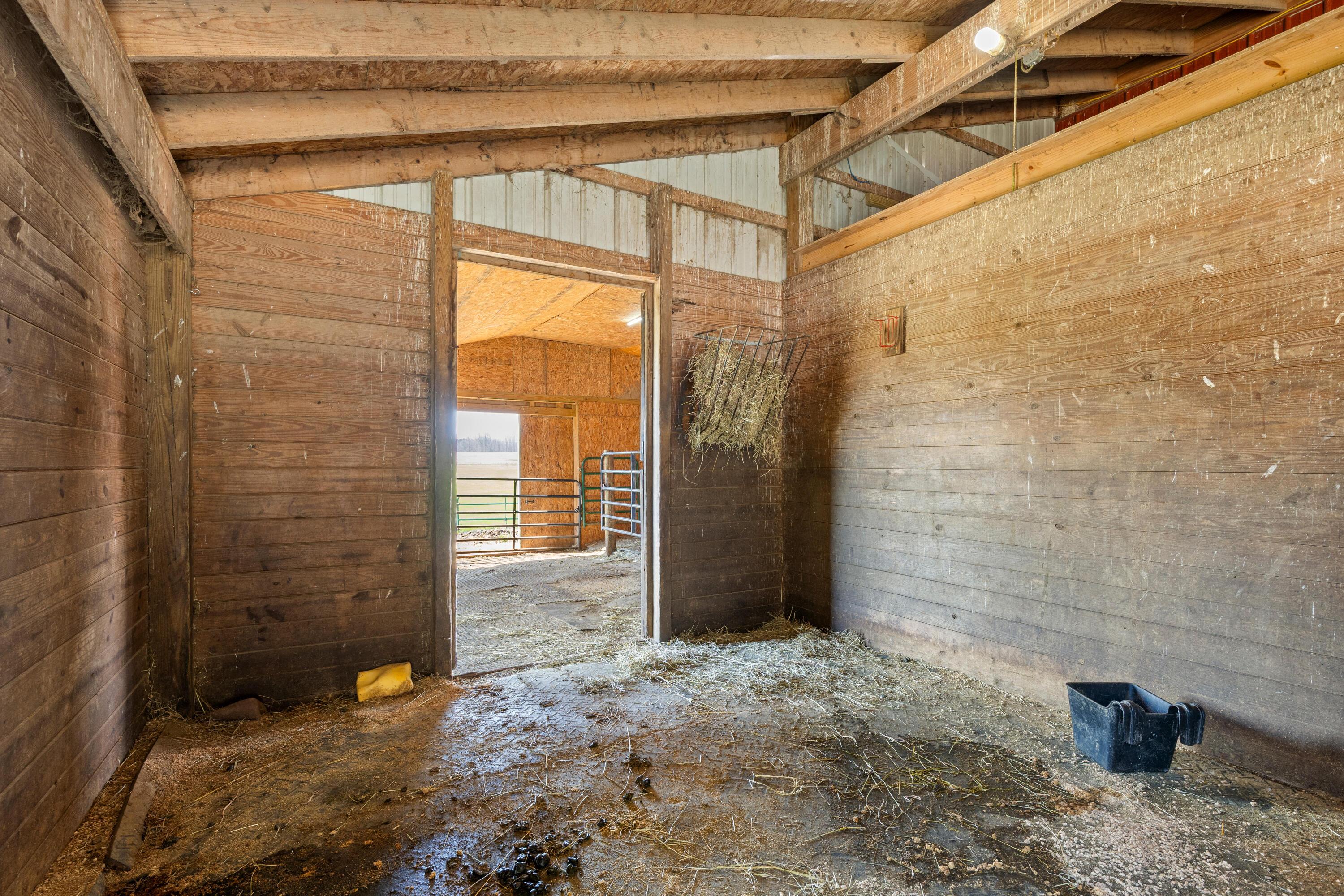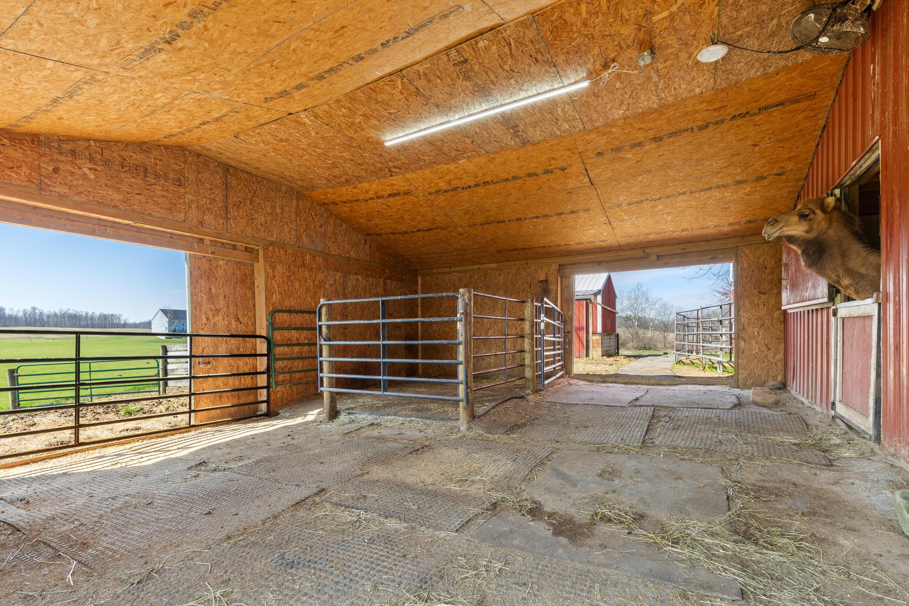 Nestled on 60 beautifully fenced acres, this stunning property offers an unparalleled blend of comfort and functionality. This 5-bedroom home, complete with office and 3 bathrooms, is country living at its finest. The large master suite is a true retreat, featuring vaulted ceilings, a walk-in closet and a 5-piece master bathroom w/ a jetted tub and a walk out to a private deck, providing the ultimate in relaxation. The spacious kitchen is adorned w/ granite countertops, a central island, custom cabinets, wood grain ceramic tile flooring and a walk out to a large glass paneled deck w/ firepit. The great room has an abundance of natural light from the floor to ceiling windows and is warmed by a pellet stove. The fully finished walkout basement features a family room with propane stove and wet bar, 2 bedrooms and a full bath w/ double vanity and washer/dryer hookups. Additional amenities of the home include a main floor laundry room, central A/C, and a whole-house backup generator. The oversized 3-car garage is fully dry-walled and equipped w/ an overhead propane heater, hot water, and floor drains. The fully landscaped yard features a redwood gazebo nestled amongst mature trees. The pastures are fenced and cross-fenced, and lined with electric wire. The front and rear pastures, along w/ the goat and dog yards, include hydrants and tank heaters. The 50x100 metal drive-through barn has a concrete floor, w/ a half bath, 4 stalls w/ turnouts (3 w/ automatic waterers), 2 hydrants, a horse wash bay, work benches, and a heated tack room. The 8x30 chicken coop has water and electricity and is fully fenced. There is a 10x10 loafing shed in a corral near the barn and a 12x24 loafing shed in the pasture that is equipped with an automatic waterer and electricity. This extraordinary property is an ideal blend of luxury and practicality, perfect for those seeking a serene lifestyle w/ top-notch amenities. Dont miss the opportunity to make this exquisite property your home.