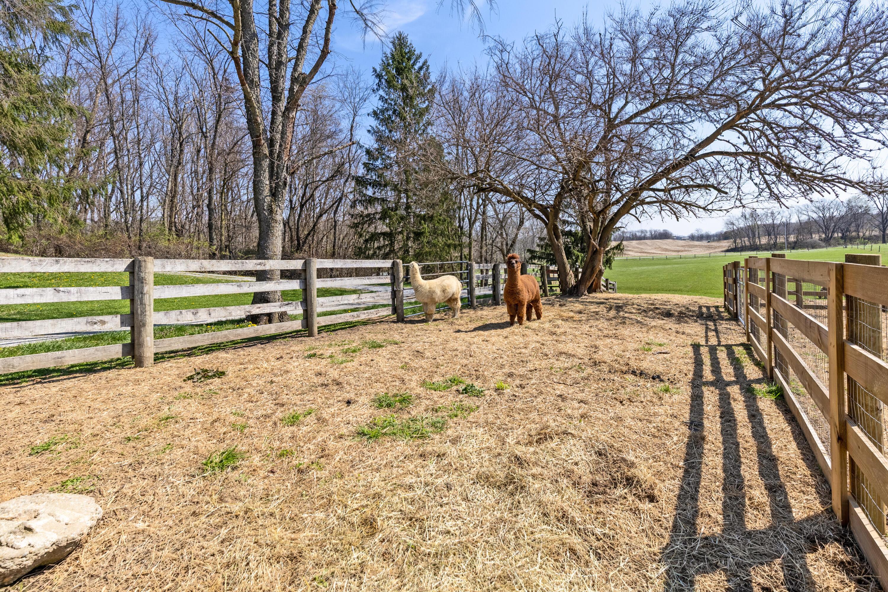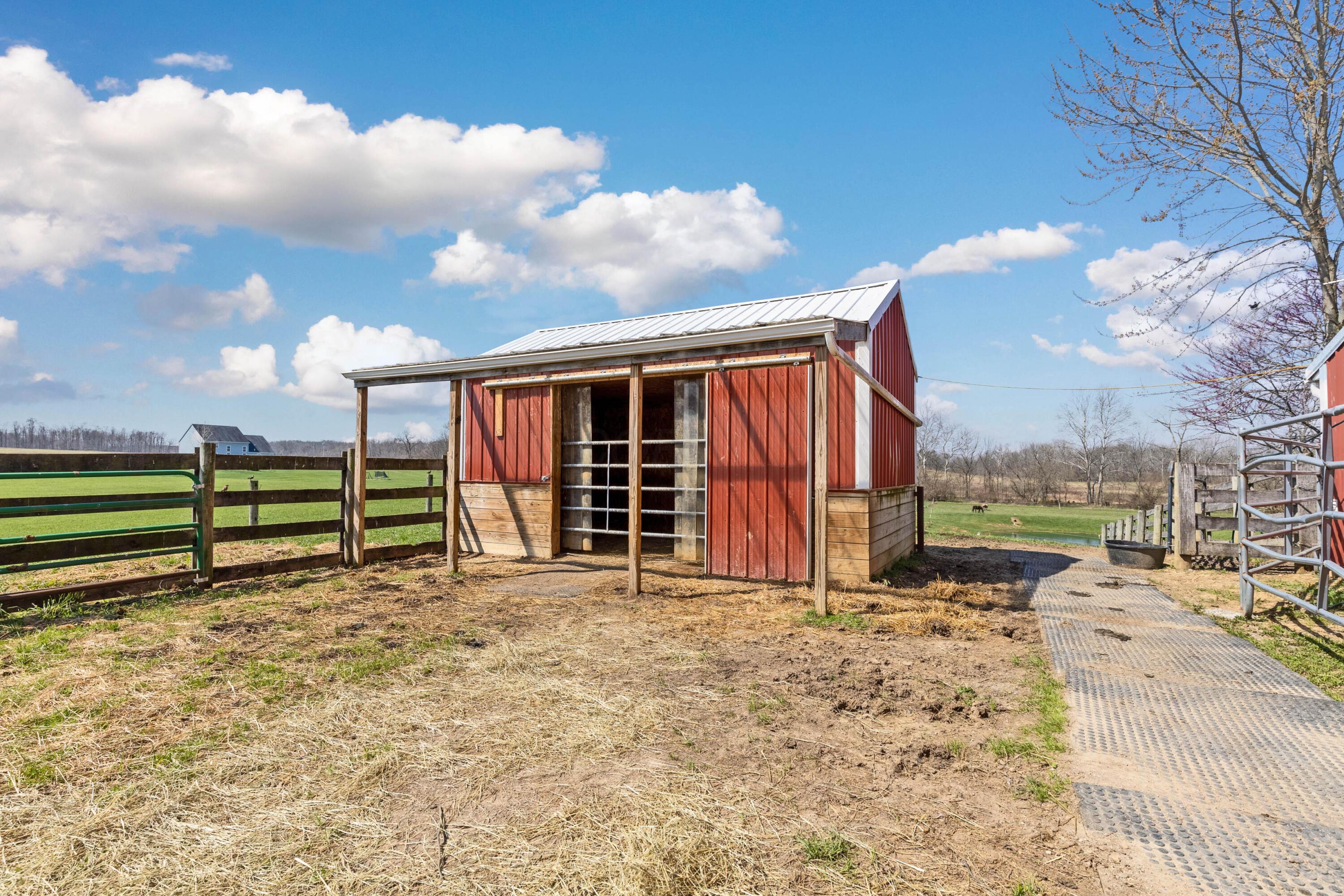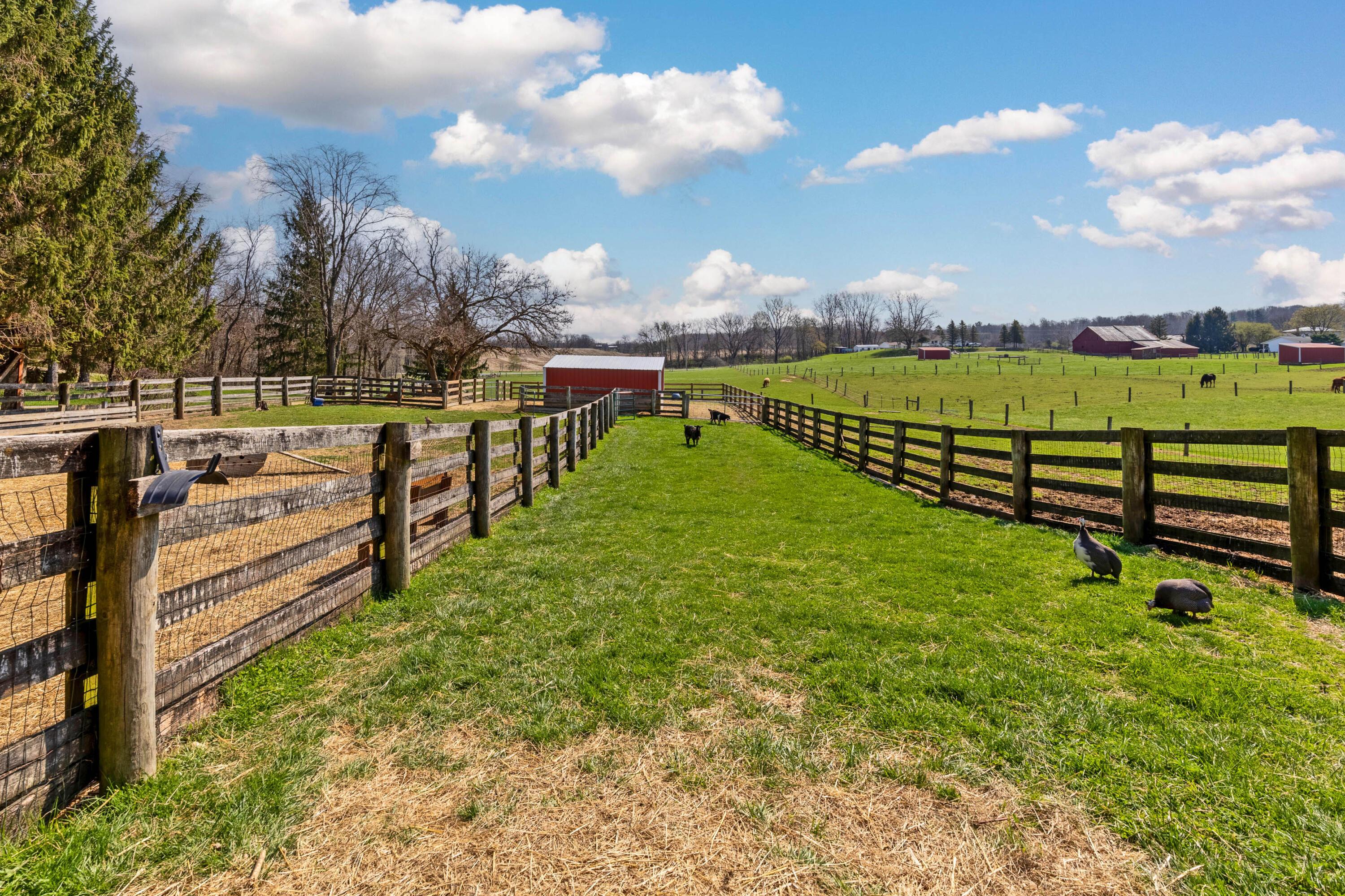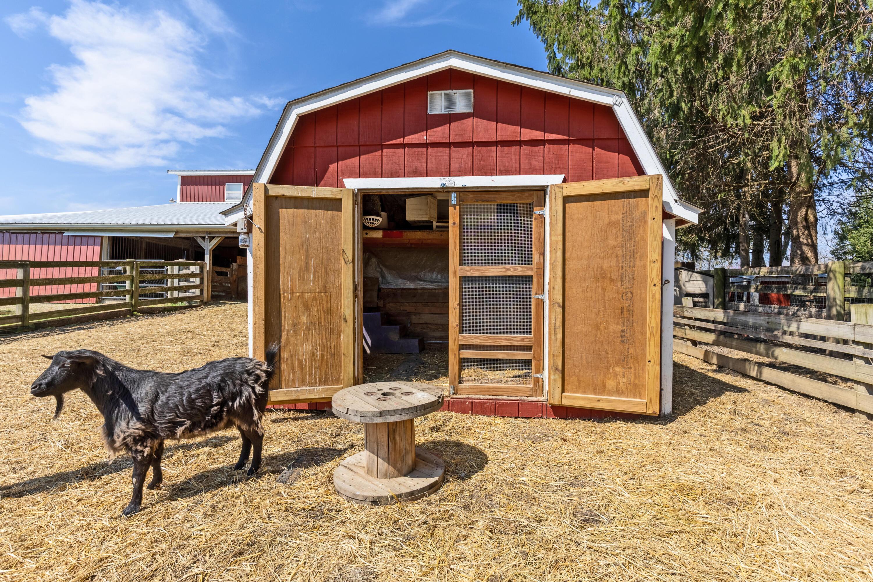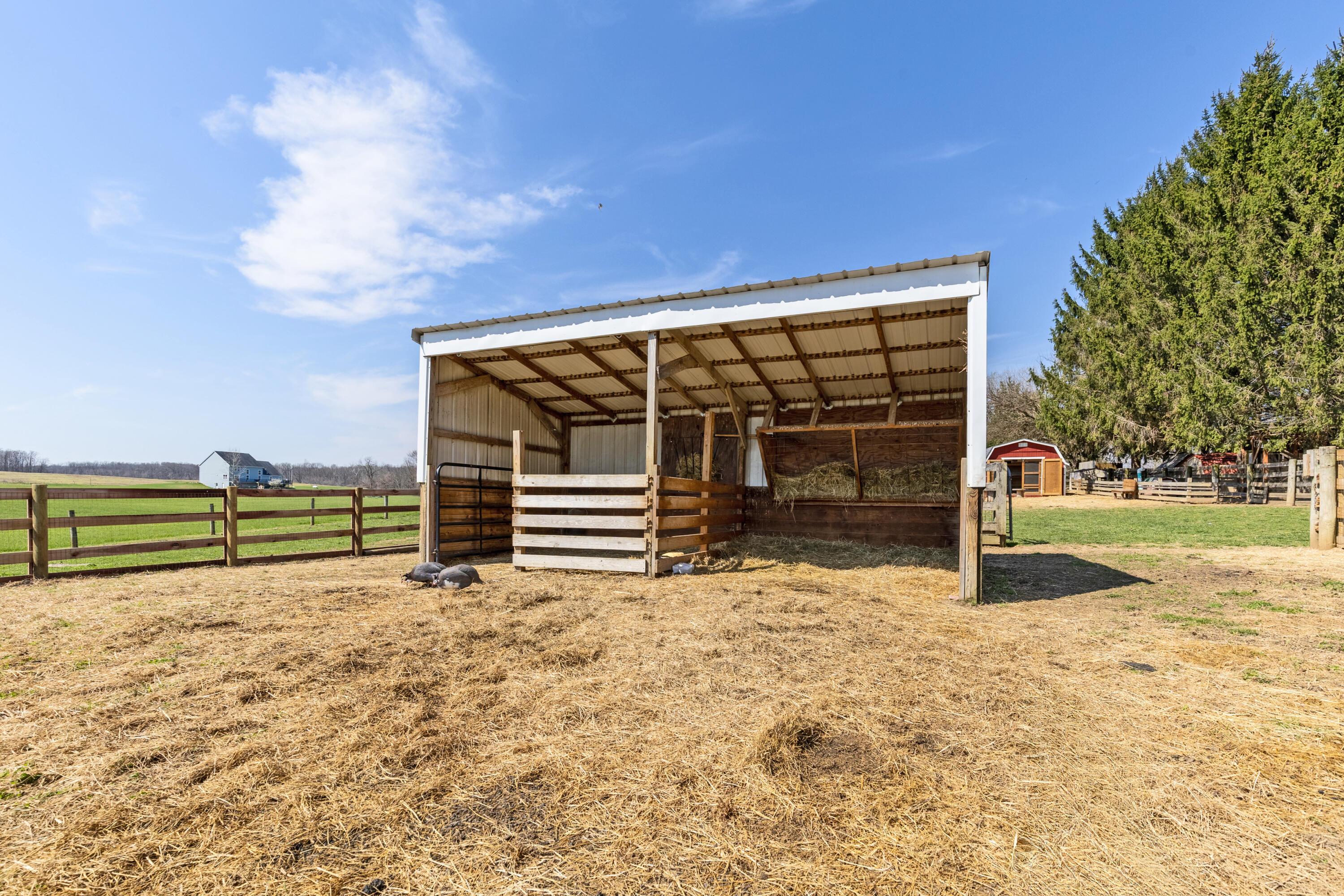 Nestled on 60 beautifully fenced acres, this stunning property offers an unparalleled blend of comfort and functionality. This 5-bedroom home, complete with office and 3 bathrooms, is country living at its finest. The large master suite is a true retreat, featuring vaulted ceilings, a walk-in closet and a 5-piece master bathroom w/ a jetted tub and a walk out to a private deck, providing the ultimate in relaxation. The spacious kitchen is adorned w/ granite countertops, a central island, custom cabinets, wood grain ceramic tile flooring and a walk out to a large glass paneled deck w/ firepit. The great room has an abundance of natural light from the floor to ceiling windows and is warmed by a pellet stove. The fully finished walkout basement features a family room with propane stove and wet bar, 2 bedrooms and a full bath w/ double vanity and washer/dryer hookups. Additional amenities of the home include a main floor laundry room, central A/C, and a whole-house backup generator. The oversized 3-car garage is fully dry-walled and equipped w/ an overhead propane heater, hot water, and floor drains. The fully landscaped yard features a redwood gazebo nestled amongst mature trees. The pastures are fenced and cross-fenced, and lined with electric wire. The front and rear pastures, along w/ the goat and dog yards, include hydrants and tank heaters. The 50x100 metal drive-through barn has a concrete floor, w/ a half bath, 4 stalls w/ turnouts (3 w/ automatic waterers), 2 hydrants, a horse wash bay, work benches, and a heated tack room. The 8x30 chicken coop has water and electricity and is fully fenced. There is a 10x10 loafing shed in a corral near the barn and a 12x24 loafing shed in the pasture that is equipped with an automatic waterer and electricity. This extraordinary property is an ideal blend of luxury and practicality, perfect for those seeking a serene lifestyle w/ top-notch amenities. Dont miss the opportunity to make this exquisite property your home.