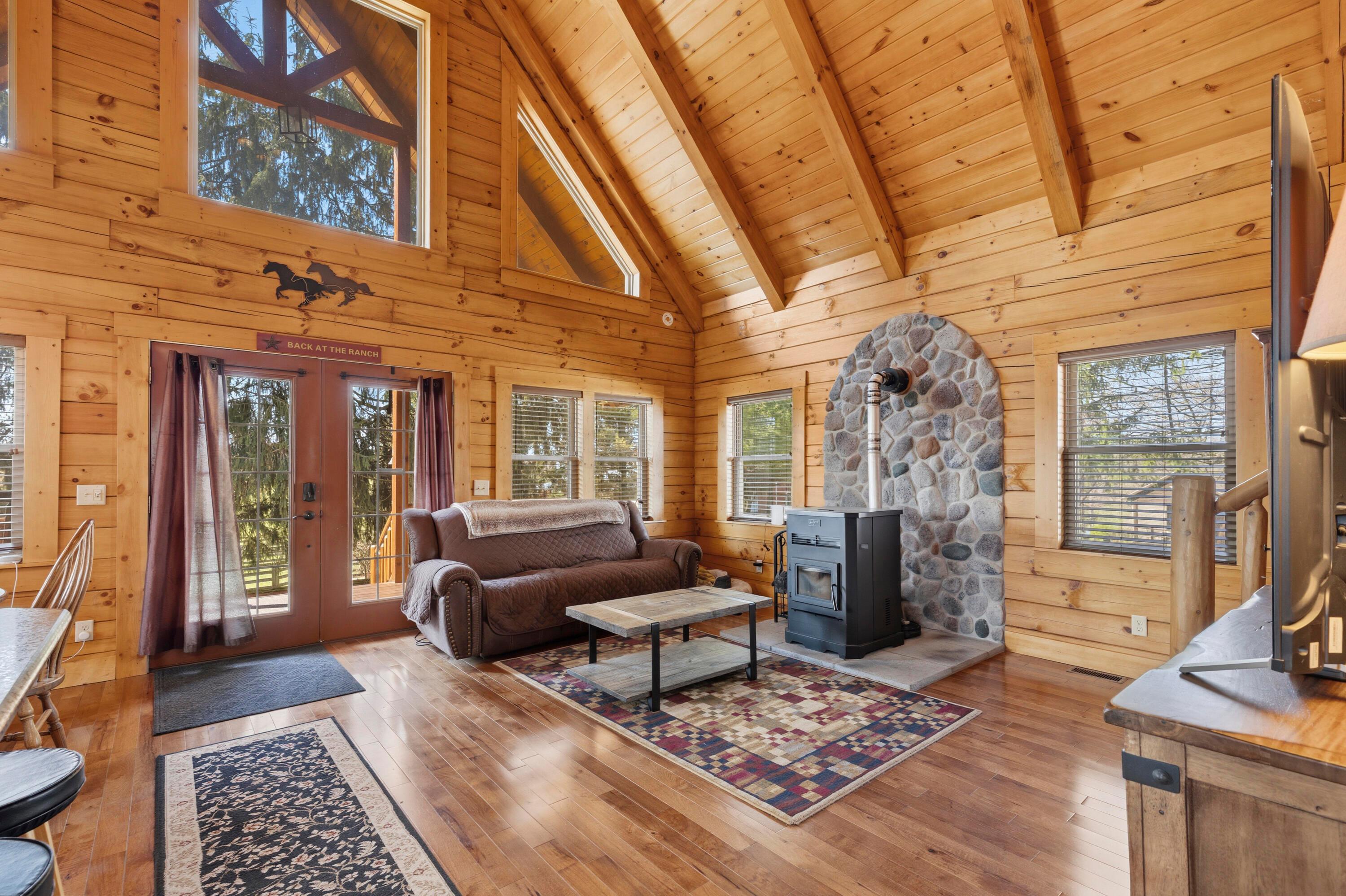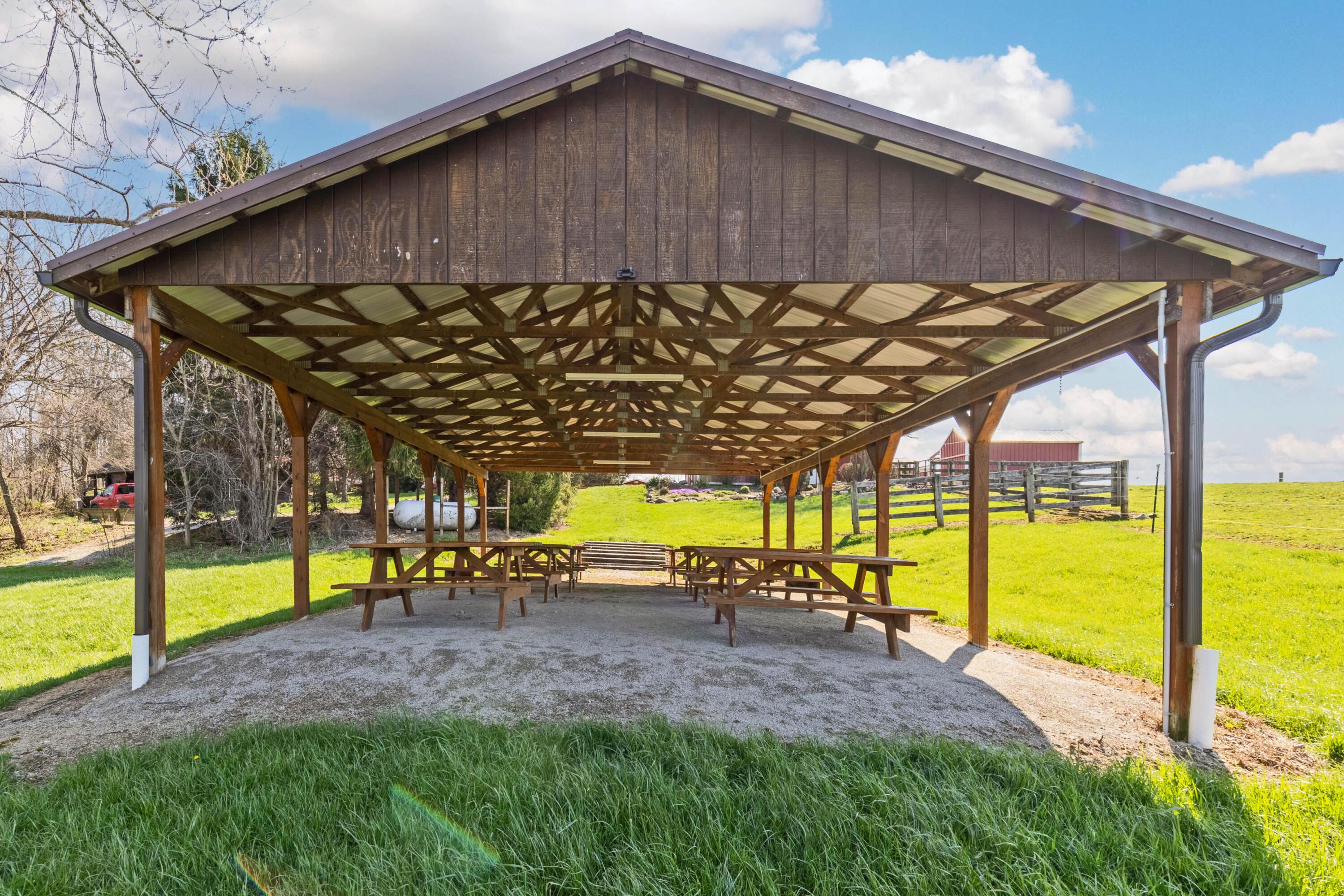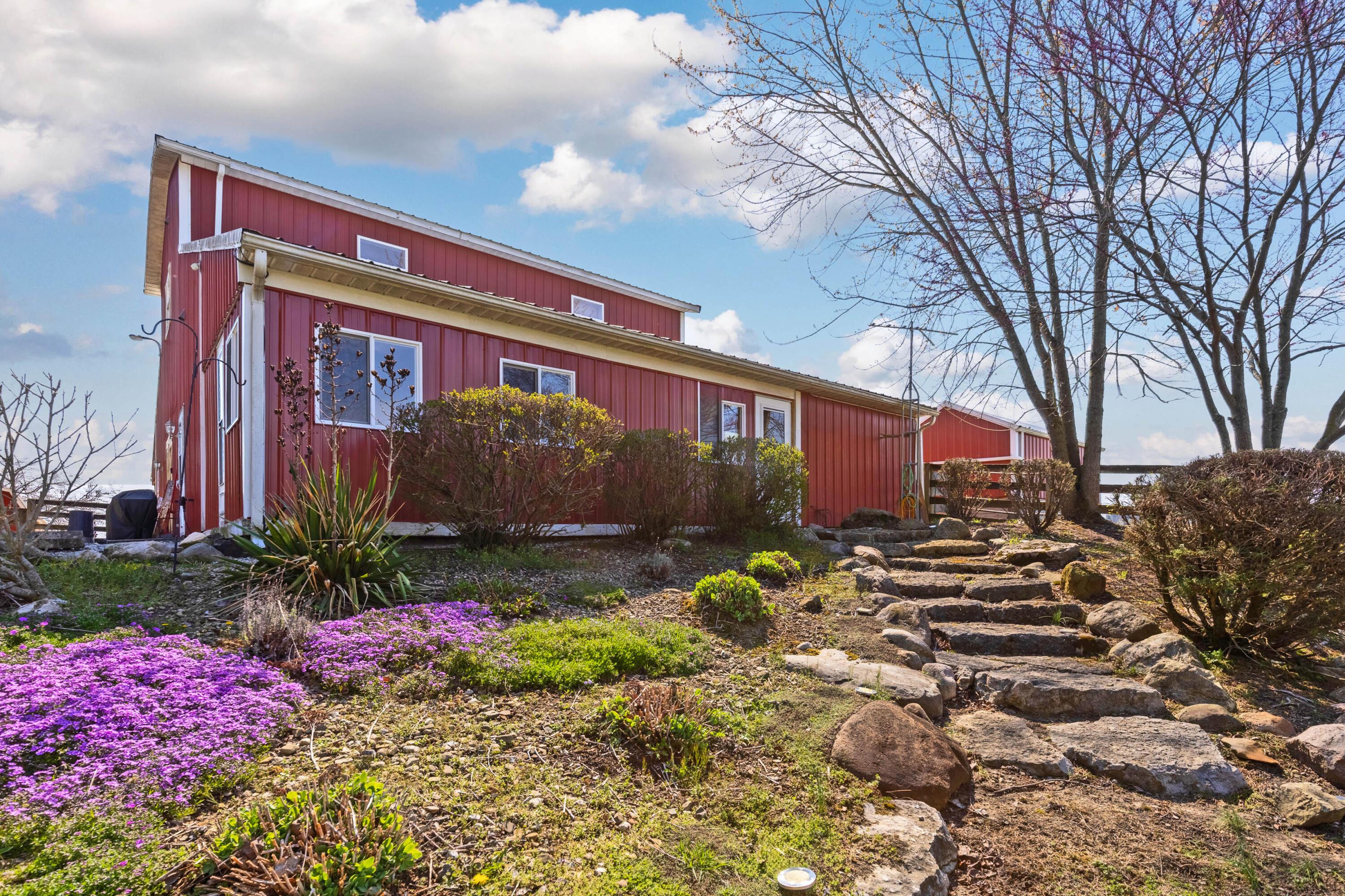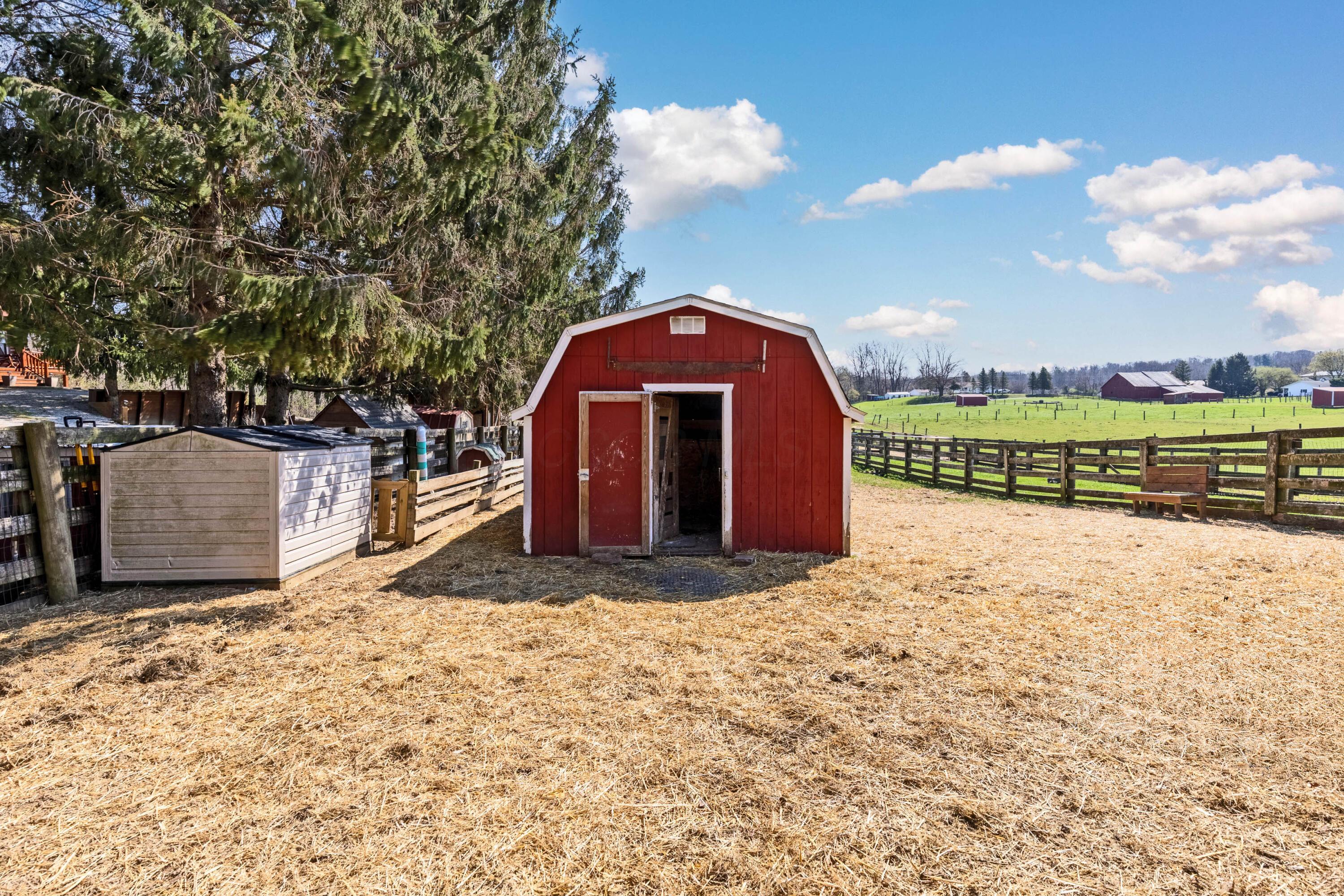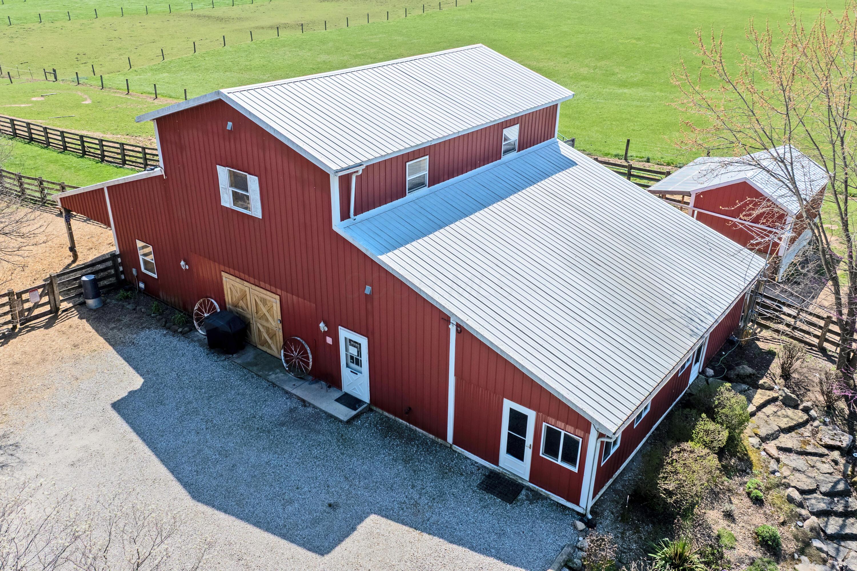 Nestled on 60 beautifully fenced acres, this stunning property offers an unparalleled blend of comfort and functionality. This 5-bedroom home, complete with office and 3 bathrooms, is country living at its finest. The large master suite is a true retreat, featuring vaulted ceilings, a walk-in closet and a 5-piece master bathroom w/ a jetted tub and a walk out to a private deck, providing the ultimate in relaxation. The spacious kitchen is adorned w/ granite countertops, a central island, custom cabinets, wood grain ceramic tile flooring and a walk out to a large glass paneled deck w/ firepit. The great room has an abundance of natural light from the floor to ceiling windows and is warmed by a pellet stove. The fully finished walkout basement features a family room with propane stove and wet bar, 2 bedrooms and a full bath w/ double vanity and washer/dryer hookups. Additional amenities of the home include a main floor laundry room, central A/C, and a whole-house backup generator. The oversized 3-car garage is fully dry-walled and equipped w/ an overhead propane heater, hot water, and floor drains. The fully landscaped yard features a redwood gazebo nestled amongst mature trees. The pastures are fenced and cross-fenced, and lined with electric wire. The front and rear pastures, along w/ the goat and dog yards, include hydrants and tank heaters. The 50x100 metal drive-through barn has a concrete floor, w/ a half bath, 4 stalls w/ turnouts (3 w/ automatic waterers), 2 hydrants, a horse wash bay, work benches, and a heated tack room. The 8x30 chicken coop has water and electricity and is fully fenced. There is a 10x10 loafing shed in a corral near the barn and a 12x24 loafing shed in the pasture that is equipped with an automatic waterer and electricity. This extraordinary property is an ideal blend of luxury and practicality, perfect for those seeking a serene lifestyle w/ top-notch amenities. Dont miss the opportunity to make this exquisite property your home.