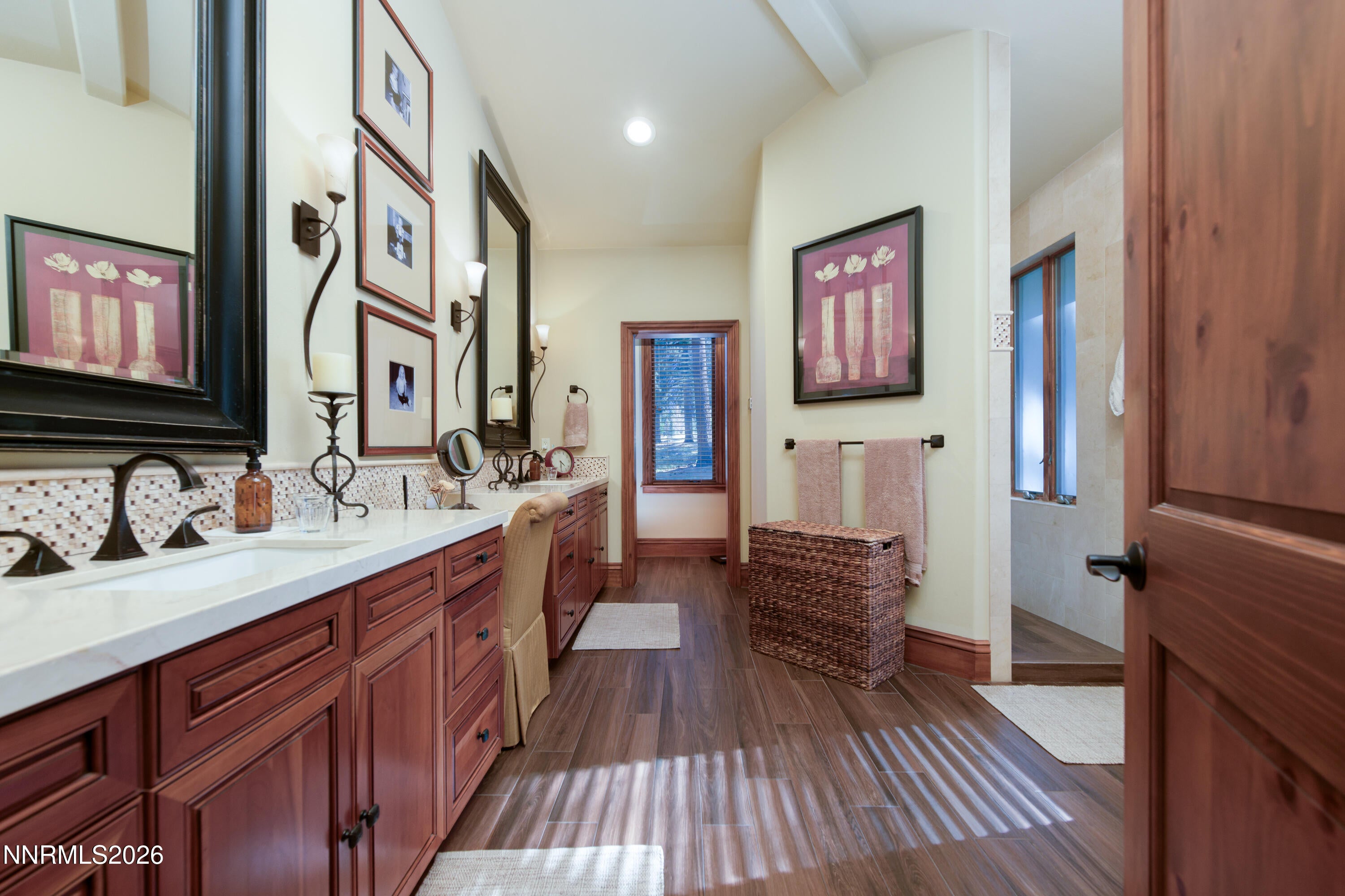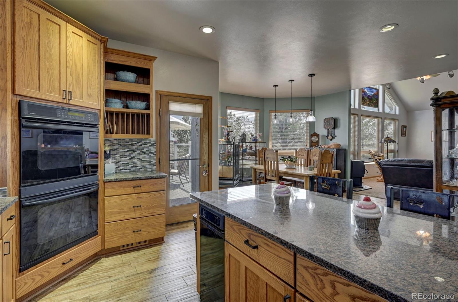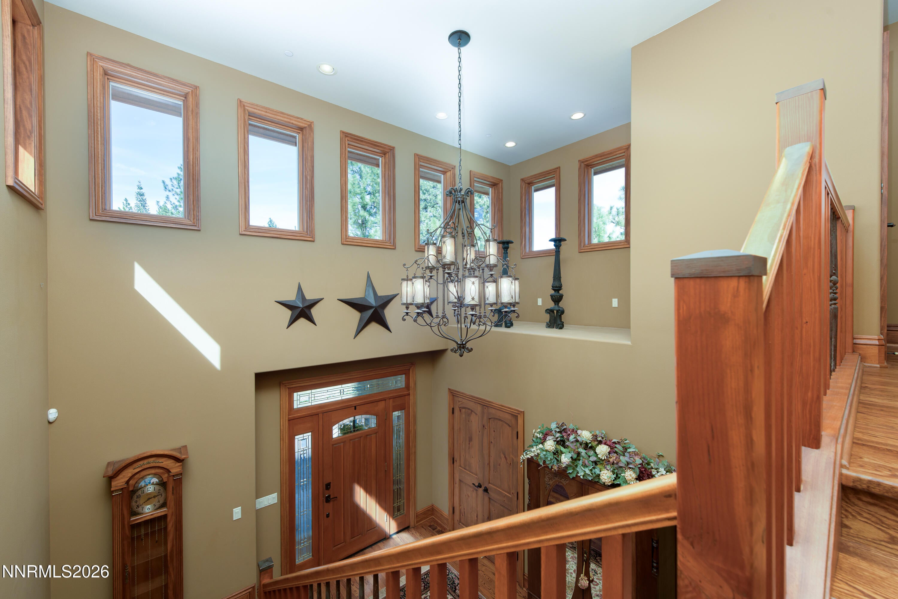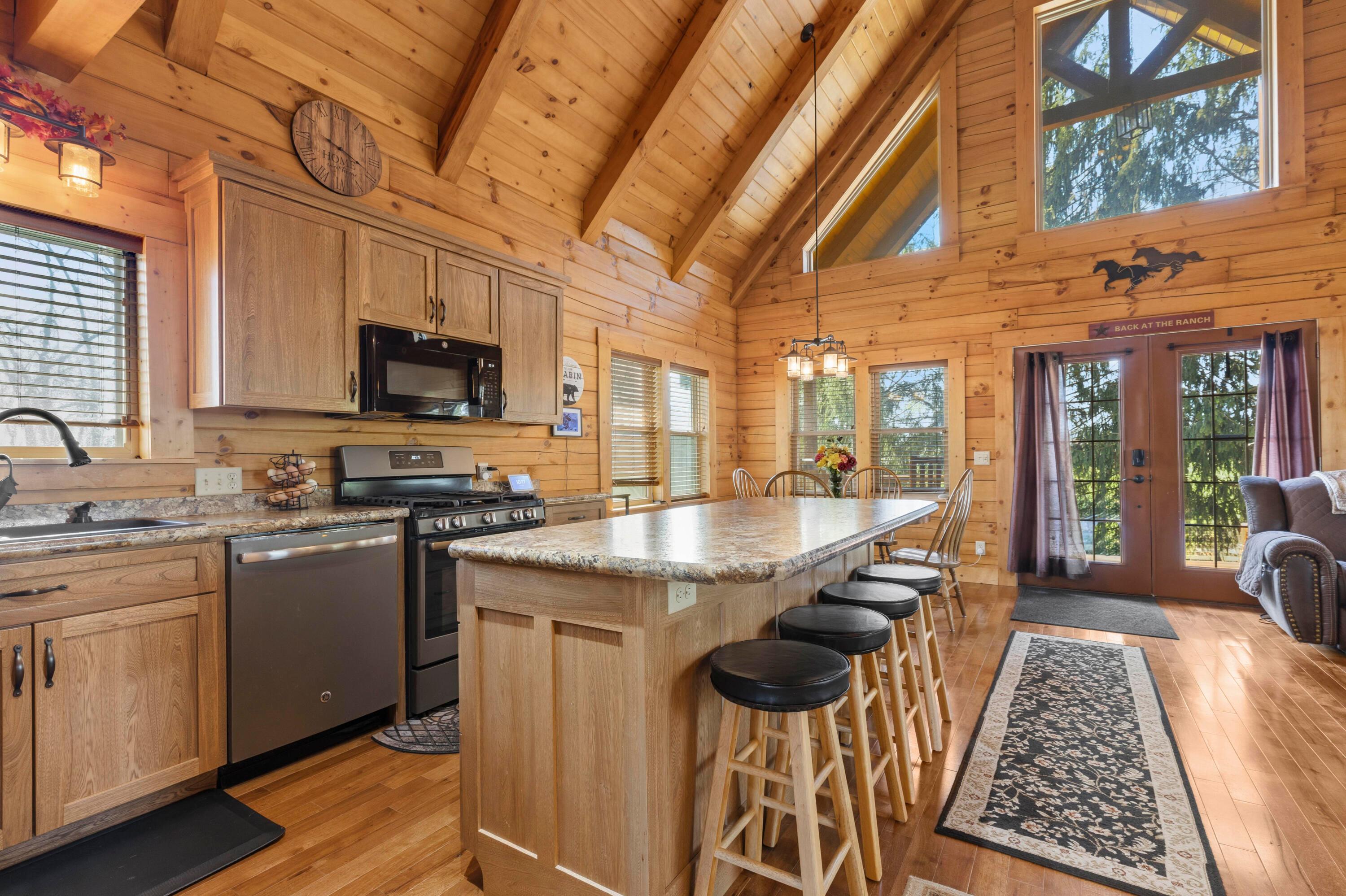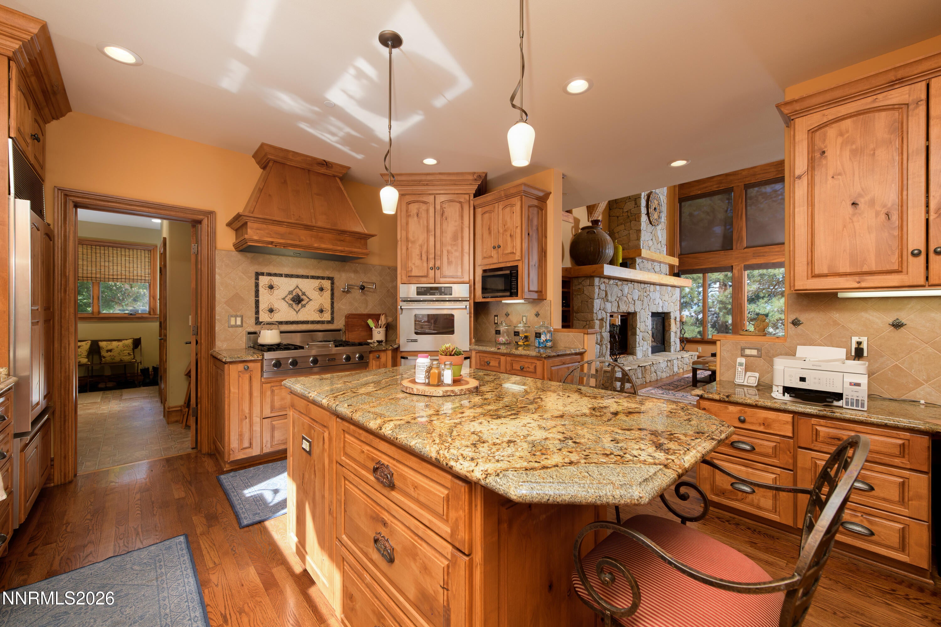 Custom designed and carefully crafted home located in the heart of highly sought after Jobs Peak Ranch! Offered for the first time with all the living areas, office, guest bedroom and primary suite on the ground floor with 2 guest suites upstairs with elevator. Knotty Alder kitchen cabinetry with slab granite counter tops and stainless steel appliances.