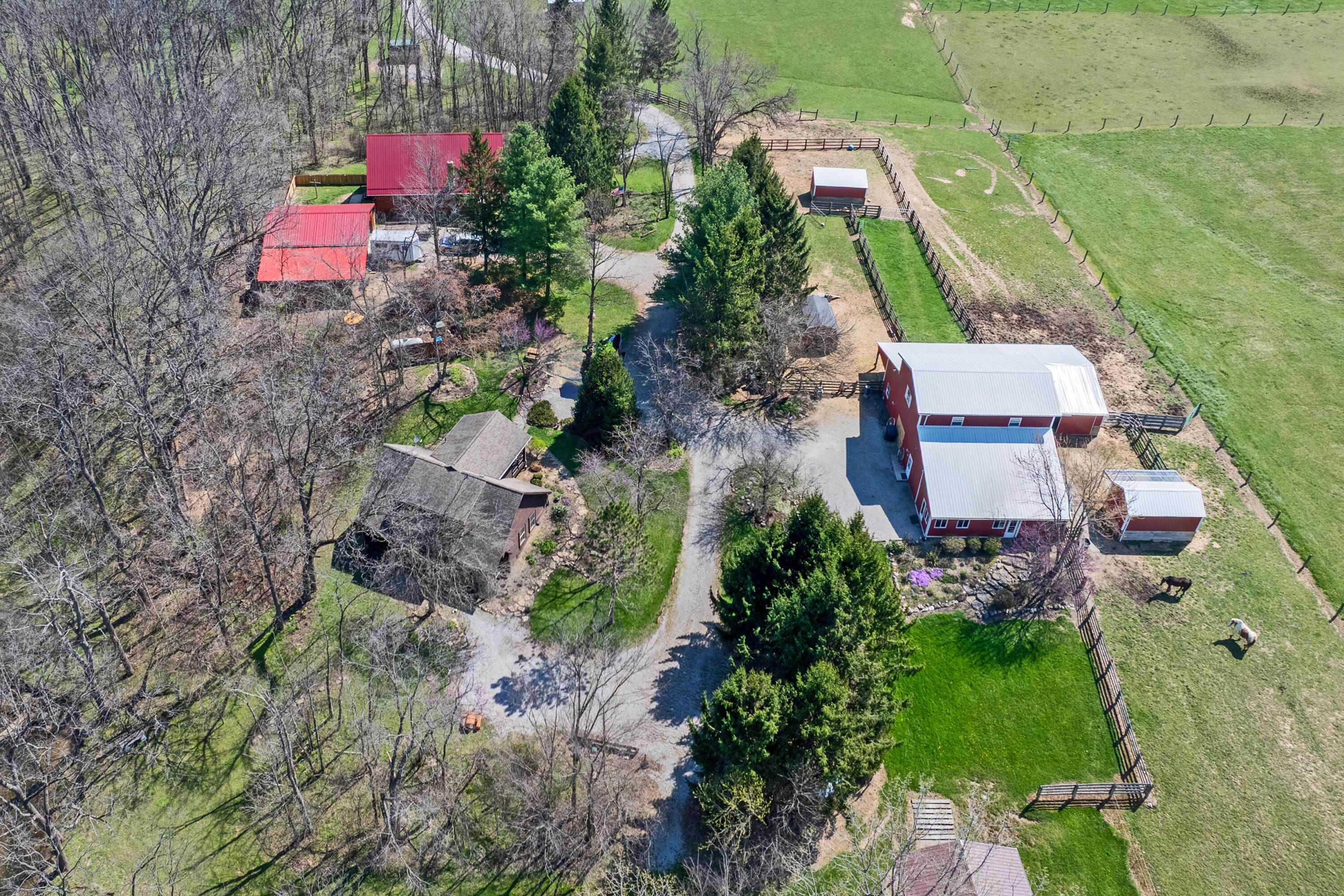 THE HEARTLAND COUNTRY RESORT & ANIMAL SANCTUARY IS NOW FOR SALE! A TRULY RARE OPPORTUNITY OFFERING ENDLESS POSSIBILITIES. CREATE A MULTI-GENERATIONAL OR FRIENDS/FAMILY COMPOUND, CONTINUE OPERATING AS A THRIVING HOSPITALITY BUSINESS, OR ENJOY AS A PRIVATE ESTATE, FARM, OR AIRBNB DESTINATION. NESTLED ON APPROXIMATELY 10 SCENIC, WOODED, AND GENTLY ROLLING ACRES, THE PROPERTY FEATURES MULTIPLE OUTBUILDINGS, A 3 STALL BARN, TWO FENCED PASTURES, A POND WITH BEACH AND GAZEBO, PAVILION, AND SEVERAL DISTINCT LIVING SPACES, ALL DESIGNED FOR RELAXATION, RECREATION, AND INCOME POTENTIAL. CURRENTLY OPERATING AS AN ESTABLISHED BUSINESS GENERATING APPROXIMATELY 6,400/MONTH FROM FOUR RENTAL UNITS, THIS PROPERTY OFFERS OVER 5,400 SF ACROSS FIVE RESIDENCES. THE HARMONY, SERENITY, AND TRANQUILITY SUITES (TRI-PLEX) FEATURE KITCHENS OR KITCHENETTES, VAULTED GREAT ROOMS, JETTED TUBS, AND INVITING FRONT PORCHES. THE LODGE ACCOMMODATES UP TO 12 GUESTS WITH A MASSIVE GREAT ROOM, FULL KITCHEN, LOFT, AND 3-SEASON ROOM. THE CHARMING MAIN LOG HOME INCLUDES 1-2 BEDROOMS, 1.5 BATHS, AN EXPANSIVE GREAT ROOM, AND A FULL BASEMENT. COMBINE AN EQUESTRIAN ESTATE WITH A PROVEN INCOME-PRODUCING RETREAT OR TAILOR THE PROPERTY TO FIT YOUR VISION...THE POTENTIAL IS TRULY LIMITLESS, ALL JUST MINUTES FROM I-71.