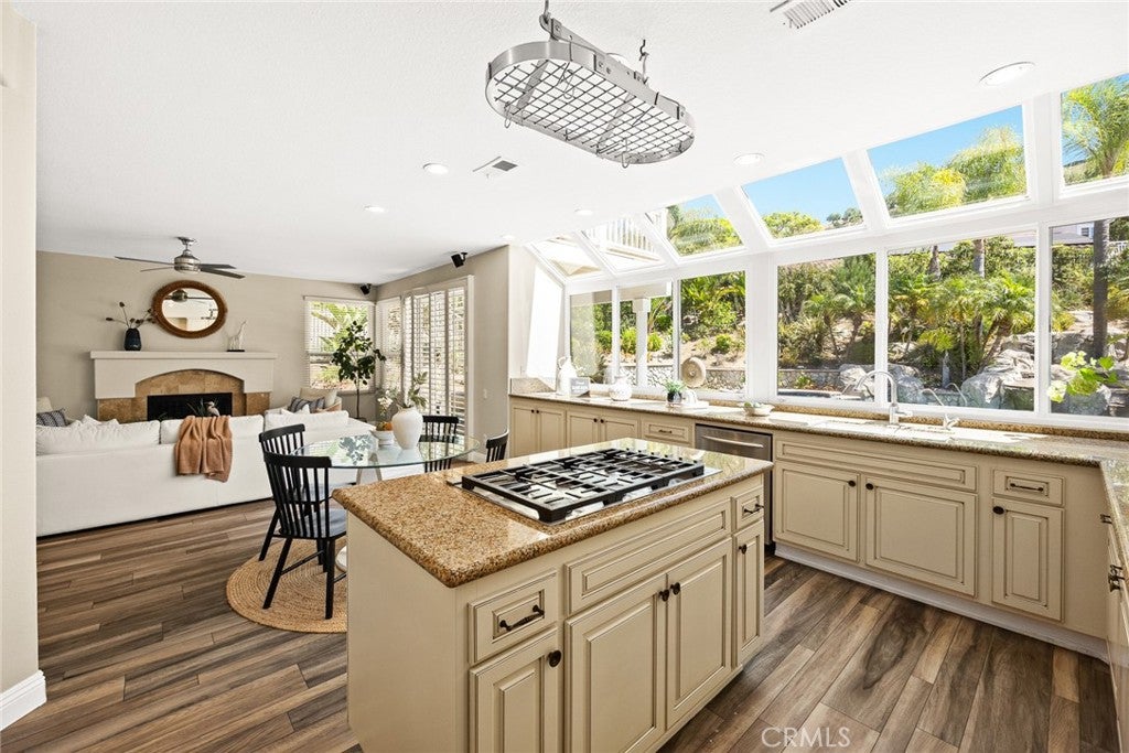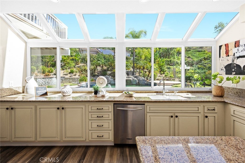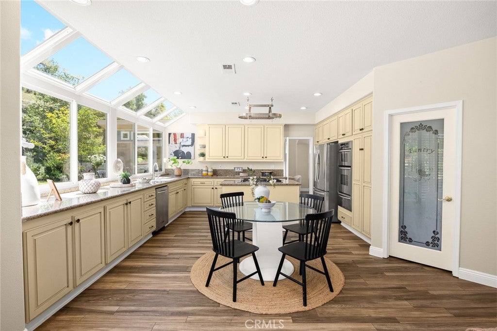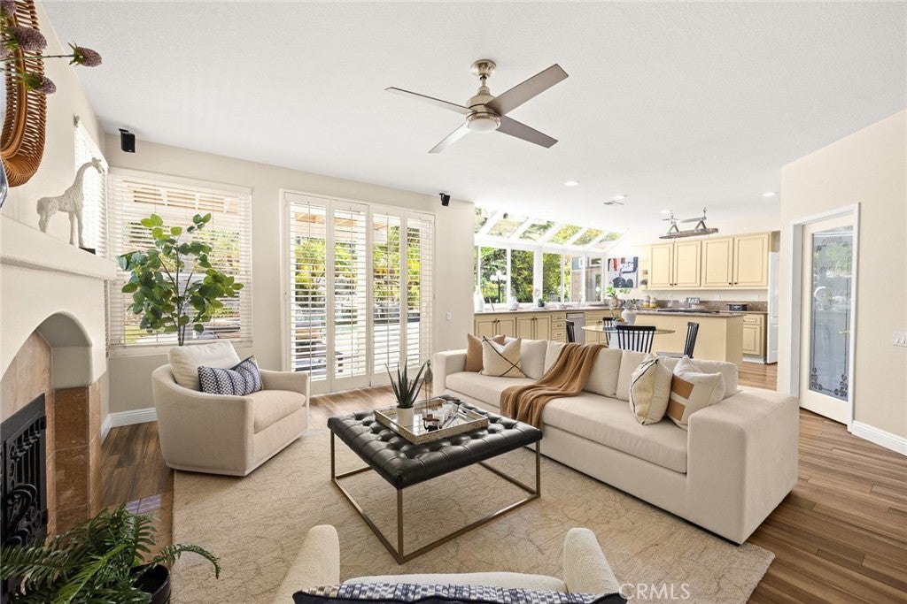 Nestled on one of Yorba Lindas most picturesque streets, this stunning 5-bedroom, 3.5-bath pool and spa residence offers the perfect blend of elegance, comfort, and resort-style living. From its exceptional curb appeal to the breathtaking backyard, every detail is designed to impress.Step through custom iron and natural wood double doors into a dramatic cathedral-ceiling living room, where soaring ceilings, rich wood flooring, and stone accents create a grand first impression. The formal dining room flows seamlessly to the outdoors, capturing serene views of the lush landscaping and sparkling pool.The gourmet kitchen is both stylish and functional, featuring granite countertops, a large center island, walk-in pantry, and expansive windows that flood the space with natural light while framing tranquil views of cascading waterfalls. Open to the kitchen, the inviting family room offers a cozy gas fireplace, custom French doors, and direct access to the backyardperfect for effortless indoor-outdoor living.A highly desirable main-level ensuite bedroom, along with a guest powder room, provides ideal flexibility for guests or multi-generational living.Upstairs, the luxurious primary suite serves as a private retreat, complete with a balcony overlooking the resort-style backyard, a dual-sided fireplace shared with a sitting area, two walk-in closets, and a spa-inspired bath featuring a jetted tub, separate shower, and dual vanities. Additional bedrooms include two connected by a Jack-and-Jill bathroom, plus another bedroom and full bath.The backyard is a true showpiecea tropical oasis featuring a sparkling pool and spa, cascading waterfalls, fire features, and beautifully landscaped grounds with ambient lighting. Multiple French doors, sliders, and expansive windows throughout the home create a seamless connection between indoor and outdoor spaces, making it an entertainers dream.Additional highlights include double-pane windows and doors, solar panels, and a versatile he/she shed ideal for a studio, workspace, or hobbies.Located within the highly sought-after Yorba Linda High School boundary, this exceptional home truly offers the best of luxury living.Look no furtherthis is the home youve been waiting for.