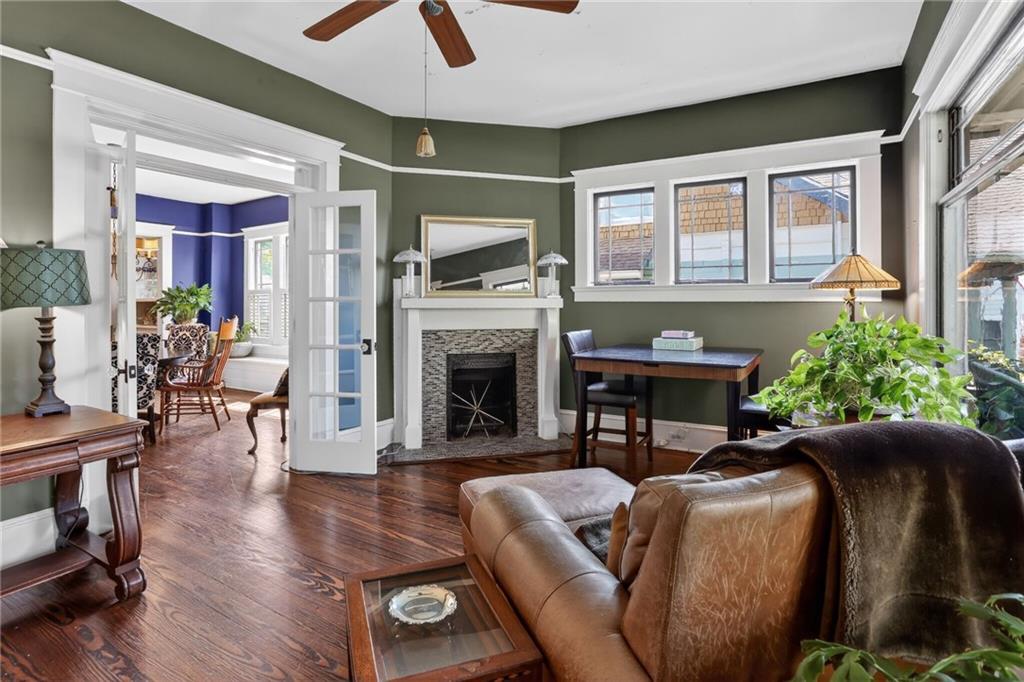 Welcome to a truly rare opportunity in the vibrant Oakhurst neighborhood of Decatur where timeless character meets modern flexibility. The standout feature of this unique property is the separate, income-producing cottage, currently tenant-occupied and generating 1,550/month. Fully renovated and individually metered for electric, and gas, this accessory dwelling offers a full kitchen, washer/dryer, living area, bedroom, and full bath with a private back deck. An ideal setup for investors or buyers seeking supplemental income, guest accommodations, or a private workspace. The main home, a classic 1915 bungalow in which the Seller is the 3rd owner, is rich with vintage charm and authentic details that are increasingly hard to find. Inside, youll discover 4 bedrooms, 3 full baths, and 5 fireplaces three decorative and two wood-burning along with beautifully preserved mantels and updated tile surrounds. Elements such as real wood floors, plaster walls, and huge 5 x 4 front windows with original 1900s glass panes complete the charm. The covered and deep front porch sets the tone, offering the perfect place to relax and enjoy the neighborhood. A thoughtfully-designed upstairs addition completed in 2015 adds both space and versatility, featuring two bedrooms, an oversized, double-sink bathroom with marble countertop, an additional cozy sitting area ideal for a home office or reading nook, and a second laundry room. Adding to the homes charm, the staircase showcases reclaimed materialsincluding the railing, spindles, and newel postfrom an 1880s row house in Gettysburg, PA, giving this home a one-of-a-kind historical touch. Major systems have been well maintained, including a tankless water heater (2025) and HVAC (2019). The sellers completed a pre-listing inspection in March 2026, including sewer scope, radon, and mold testingall with excellent resultsproviding added confidence in the homes solid condition. Outside, an attached workshop/storage shed borders the private backyard patio and a detached carport provides two parking spaces pre-wired with two electric vehicle charging ports. An additional small shed in the back of the property provides extra storage for bikes or lawn equipment. And then theres the locationsimply unbeatable. Just blocks from Oakhurst Elementary, Beacon Hill Middle, and Decatur High, and a short stroll to MARTA and the shops, restaurants, and vibrant energy of Decatur Square. Also nearby is the PATH Foundation pedestrian and cycle route, providing easy access to surrounding neighborhoods. Whether youre enjoying a morning coffee on the porch, walking to dinner, or collecting rental income from the cottage, this property delivers a lifestyle thats as dynamic as it is charming.