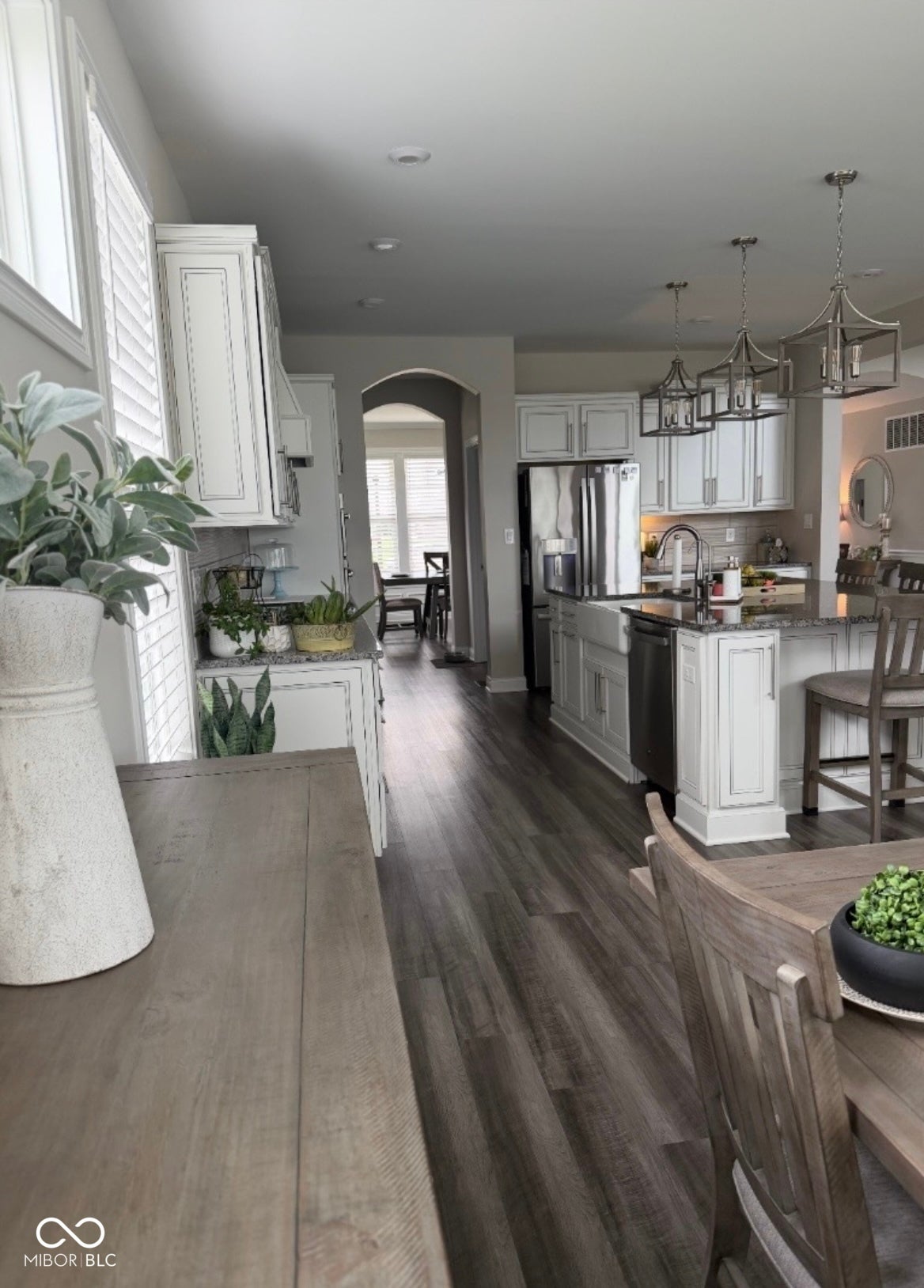 Amazing 4-bedroom 3 full bath, 1 half bath home located in Center Grove. This home has a beautiful kitchen, confection oven, microwave, granite counter tops, huge island, coffee bar, pantry. Great room has cathedral ceilings and cozy fireplace. Master bedroom suite has double closets, oversized shower tub, and a bidet toilet. All flooring on main floor is laminated hardwood.
