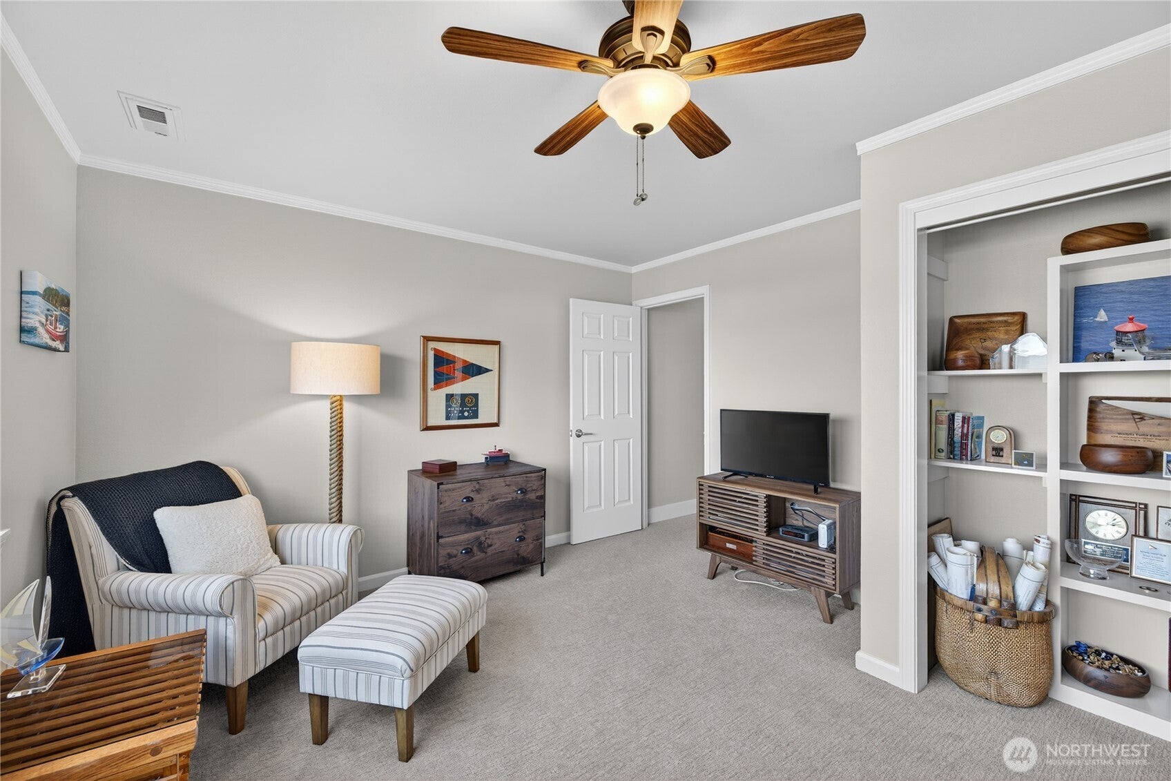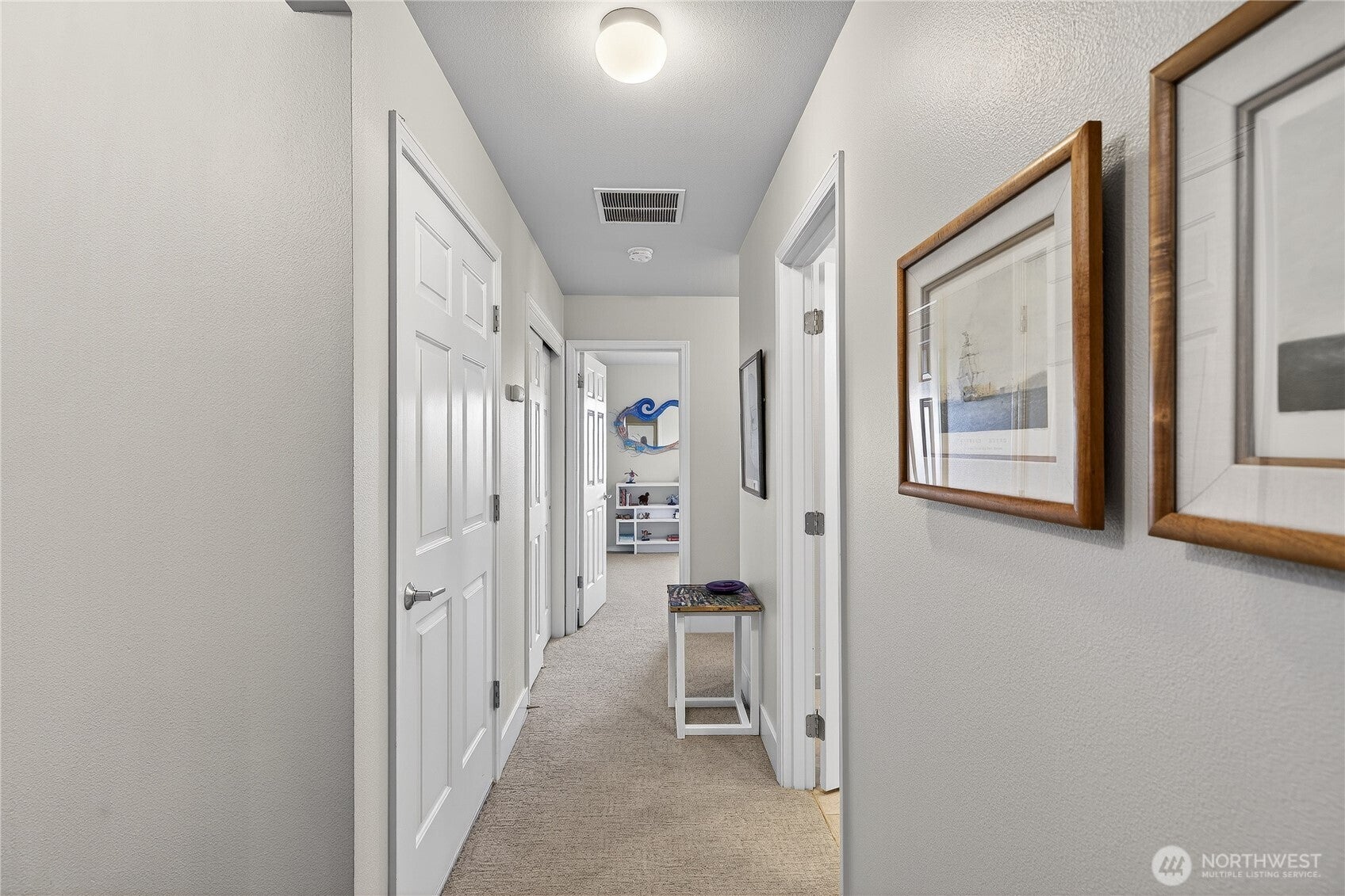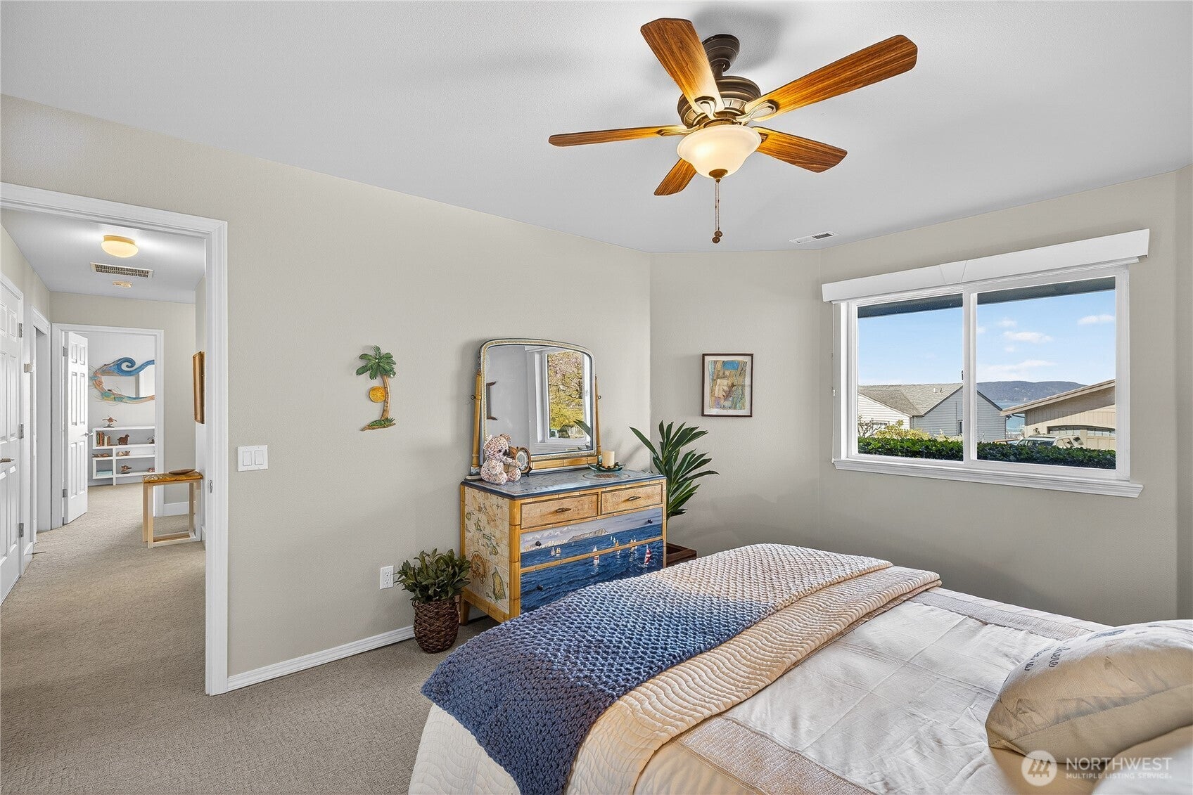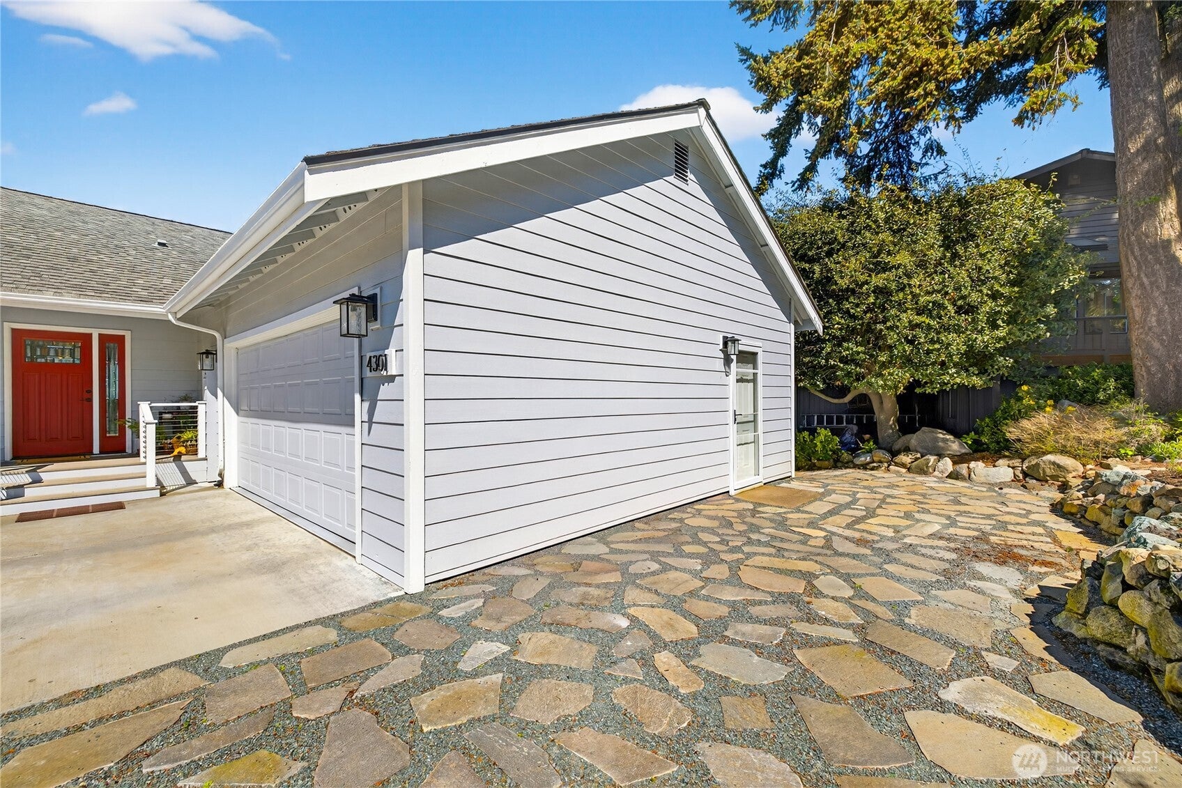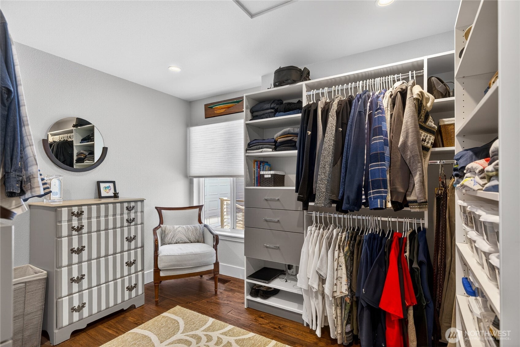 Perched on a beautifully landscaped corner lot, this light-filled home captures sweeping water, island, and mountain views that define the Pacific Northwest lifestyle. Step inside to an inviting open-concept layout where rich hardwood floors, vaulted ceilings, and a stunning stone fireplace create a warm, elevated living space designed for both everyday comfort and effortless entertaining. The chef-inspired kitchen features expansive granite countertops, crisp white cabinetry, stainless steel appliances, and a generous island that flows seamlessly into the dining and living areas. Large windows frame breathtaking views, bringing natural beauty indoors. Unwind in the spa-like primary suite with a luxurious walk-in tile shower and serene soaking tub, thoughtfully designed for relaxation. Outdoor living shines with an expansive view deckperfect for morning coffee or sunset gatheringsoverlooking the water and surrounding neighborhood. The meticulously maintained grounds offer striking curb appeal with curated landscaping, stone pathways, and vibrant plantings. A spacious garage and additional parking provide flexibility, while nearby community amenities, including sports courts, enhance an active lifestyle. This is more than a homeits a front-row seat to the lifestyle youve been waiting for.