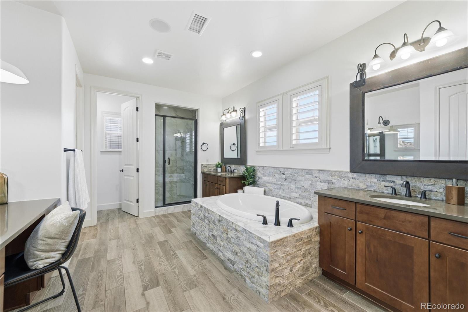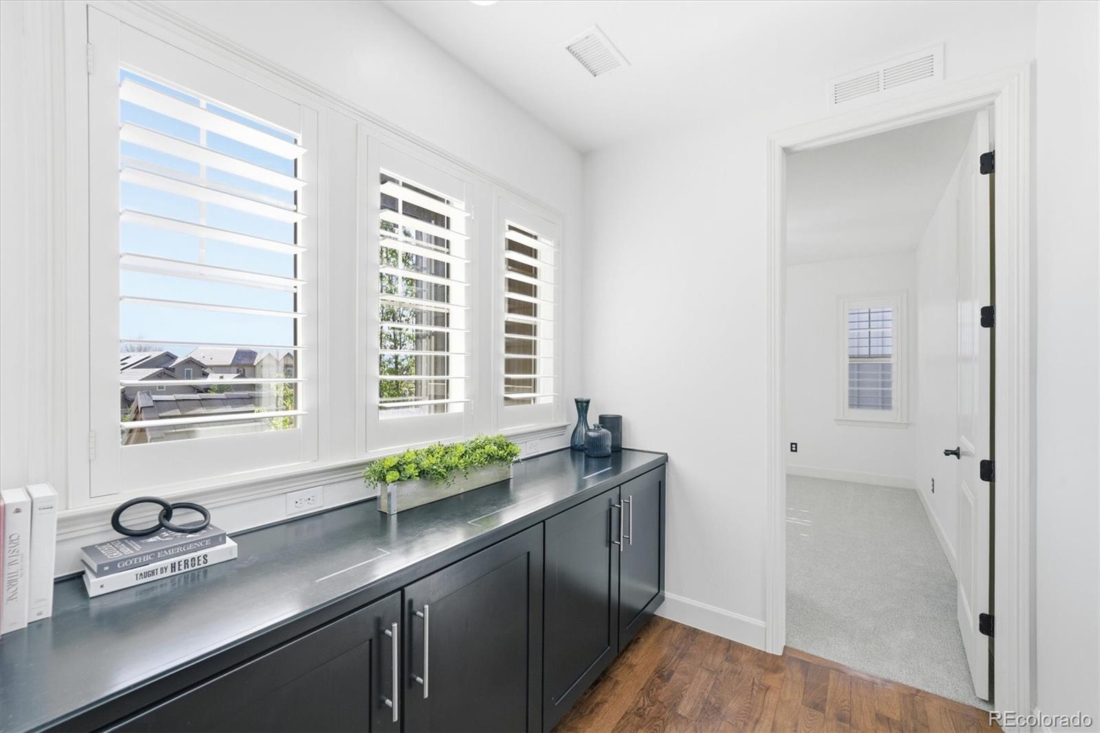 Luxury meets lifestyle in this thoughtfully designed Shea home located in gated BackCountry. Warm hardwood floors, new carpet and fresh paint throughout as well as plantation shutters, & custom accent details, create an inviting atmosphere from the moment you enter. The main level is ideal for everyday living & entertaining, featuring a private study with French doors & brick accents. At the heart of the home, the gourmet kitchen impresses with an oversized quartz island with plenty of seating, new backsplash, stainless steel appliances including double oven & gas cooktop & extensive cabinetry with custom pull-outs. The kitchen flows effortlessly into the dining area & great room, where a striking stone fireplace anchors the space & expansive sliding doors open to a covered patio perfect for entertaining year-round. Upstairs, the primary suite offers a true retreat with a spa-inspired 5pc bath featuring dual vanities, soaking tub, walk-in shower, & two walk-in closets. Two secondary bedrooms share a well-appointed Jack-&-Jill bath with dual sinks, while a 4th bedroom enjoys a private ensuite. A versatile loft provides flexible space for media, or relaxation, complemented by additional hallway storage. The backyard is designed for both entertaining & everyday enjoyment, featuring a covered patio, built-in outdoor kitchen, stone fire feature, additional gas line & expansive lawnperfect for gatherings, outdoor games, or quiet evenings under the stars. Located on a cul-de-sac & walking distance to Solstice Park; residents of BackCountry enjoy unparalleled amenities including the Sundial House with private resort-style pool, fitness center, Pikes Pub, Discovery Center with coffee shop, miles of scenic trails, parks, & an outdoor amphitheater - not to mention tons of organized activities. Additionally enjoy access to all 4 rec centers & amenities that Highlands Ranch has to offer. Welcome Home!