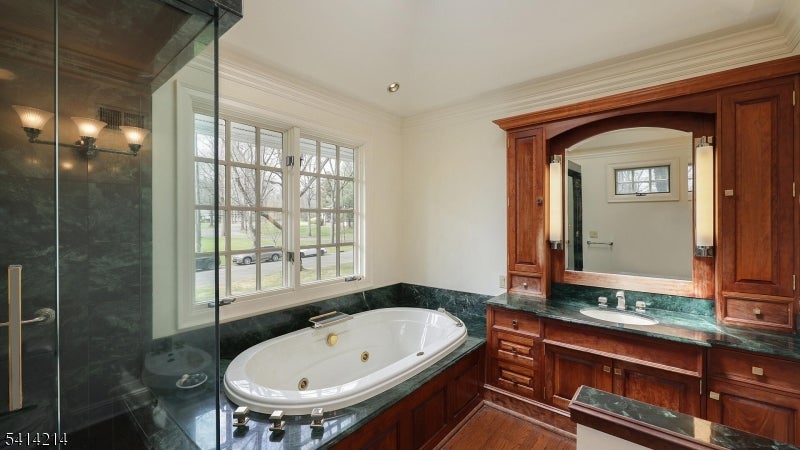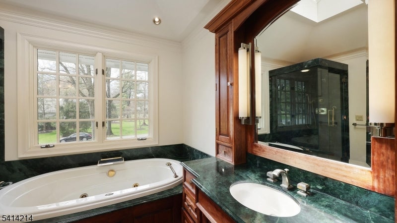 Welcome to 11 Fenimore Drive Scotch Plains, a beautifully maintained home set on a spacious, park-like property offering privacy, charm, & timeless appeal. This inviting residence blends classic curb appeal with thoughtful modern updates, creating a warm & functional space suited for todays lifestyle. Inside, a bright, open layout is designed for everyday living & seamless entertaining. The updated kitchen serves as the heart of the home, featuring custom inset cabinetry, soapstone countertops, Wolf/Sub-Zero appliances, & a large center island ideal for casual dining, meal prep, or gathering with guests. Sun-filled living areas create an airy, welcoming atmosphere throughout, highlighted by a great room w/ tray ceilings & skylights & the family room has a wood burning fireplace. Upstairs, generously sized bedrooms provide comfort, flexibility, & ample storage. The primary suite boasts tray ceilings, a walk-in closet & a luxurious marble bathroom. A finished basement adds valuable additional living space, ideal for a home office or recreation room. Additional features include hardwood floors, detailed millwork & a whole-home generator. The premium hardwood deck overlooks the expansive yard with mature landscaping. The circular driveway has illuminated pillars. Within the coveted McGinn Elementary Blue Ribbon school district, this home is perfectly positioned near NYC transit, parks, shopping and dining - providing a lifestyle of comfort & elegance in a premier location.