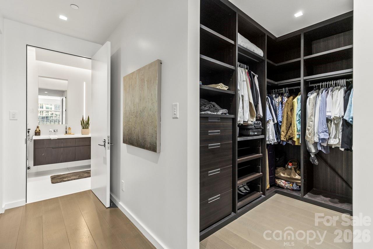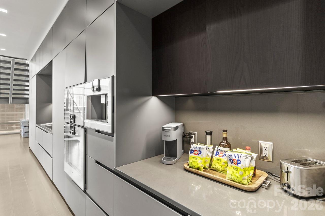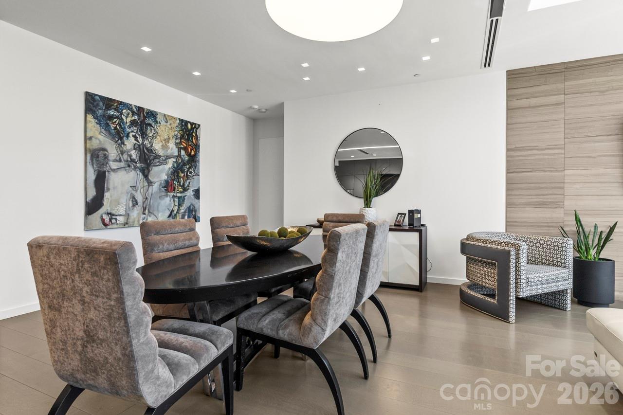 Welcome to an extraordinary Penthouse residence in The Ratcliffe, one of Uptown Charlottes most distinguished addresses. This two-level, loft-style home is a masterclass in refined urban living, where every surface, view, and architectural element contributes to a narrative of elegance, sophistication, and character.From the moment you enter, youll appreciate the seamless flow of the open-concept main level. Floor-to-ceiling glass walls bathe the living, dining, and kitchen spaces in natural light, framing stunning South Tryon and skyline views. A dramatic floating glass-and-metal staircase becomes a sculptural centerpiece.The chefs kitchen is a masterpiececustom-designed by Poliform, Italys premier luxury cabinetry brandfeaturing sleek, handle-free surfaces, integrated appliances, a built-in coffee station, and minimalist finishes that define modern elegance. Culinary enthusiasts will appreciate the Gaggenau appliance suite, celebrated for its precision engineering and sleek aesthetic, seamlessly integrated into Poliform custom cabinetry. Rich stone surfaces set against crisp lines and muted tones. Upstairs, the private quarters unfold with equal luxury and flexibility. A refined kitchenette or bar area supports the vision of a second living suite, guest retreat, or intimate lounge. This level flows seamlessly to a spectacular rooftop terrace, one of the homes most captivating features. With multiple seating areas, space for grilling, and panoramic city views, this expansive outdoor haven offers an unmatched backdrop for morning coffee, sunset cocktails, or evening gatherings under the city lights. Its the perfect blend of privacy and vibrancy, high above the heart of Uptown.The primary suite is its own sanctuary: a spa-like bath with dual-sink floating vanity, freestanding soaking tub, frameless glass shower, and precise architectural lighting. A custom walk-in wardrobe of dark wood cabinetry offers an abundance of tailored storage.Built with intention, this home is punctuated by premium finisheswide-plank wood floors and concealed accent lighting; and discreet climate and sound-zoning systems ensuring comfort at every level. Every finish was selected to support a feeling of quiet luxury, balance, and visual calm. Crestron smart-home integrationoften regarded as the Rolls-Royce of home automationmanages audio, video, and lighting systems for an elevated living experience. Yet this home is also steeped in Charlotte lore. The Ratcliffe condominium tower was sensitively built around the restored Ratcliffe Florist Shop, originally constructed in 1929 in Mediterranean Revival style and designed by local luminary architect William H. Peeps. The neon Ratcliffes Flowers sign remains an iconic piece of Uptown visual history.Residents here enjoy direct access to the Overstreet Mall connecting retail, services, and links to major office towers without stepping foot outside on inclement days. The Ratcliffe also fronts The Green, an interactive pocket park with sculptural elements, water features, quiet garden paths, and vibrant public activation, creating a rare balance of urban energy and tranquil respite.Project for Public SpacesFrom this vantage point, you are within walking distance to the Bechtler Museum of Modern Art, the Knight Theater, BB&T Ballpark, fine dining, cultural venues, and the pulse of Charlottes financial district.If youre seeking a home that is as functional as it is beautifula space with strong architectural presence, refined materials, and unique historical soulthis penthouse at The Ratcliffe delivers in every category.