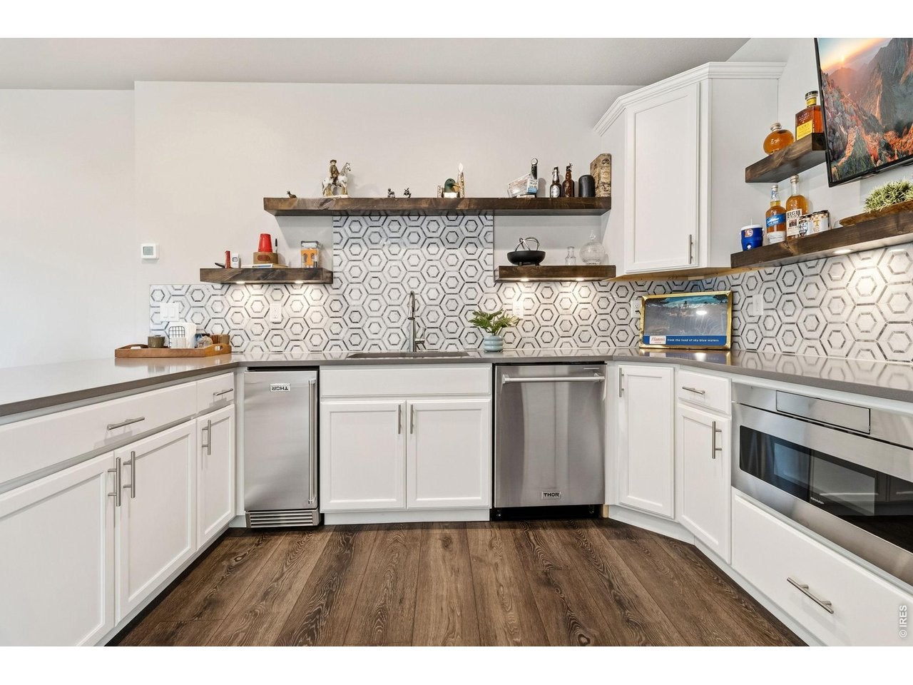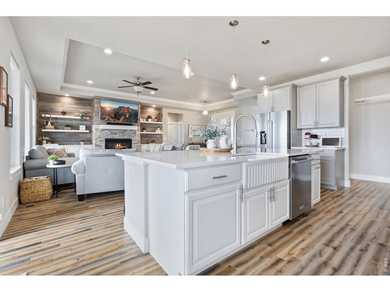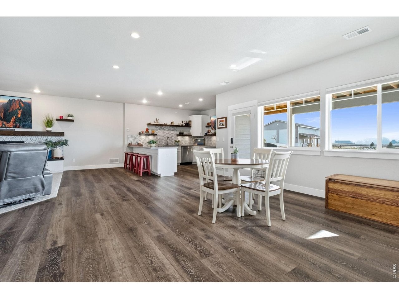 Welcome to your dream Colorado acreage retreat-where space, style, and versatility come together on 1.25 beautifully landscaped acres in Severance. This thoughtfully designed ranch-style home with a walkout basement offers 5 bedrooms and 4 bathrooms, perfectly suited for multigenerational living, entertaining, or simply spreading out in comfort. The open-concept main level showcases quartz countertops, soft-close cabinetry, built-in shelving, and designer finishes, all complemented by a seamless flow ideal for everyday living and hosting. The fully finished walkout basement creates the ultimate gathering space-featuring a stylish kitchenette and bar with a modern sports lounge vibe, perfect for game days, movie nights, or extended stays. A versatile flex space offers endless possibilities for a home gym, playroom, or potential 6th bedroom. Enjoy Colorados outdoor lifestyle year-round from the covered back deck, overlooking farmland and a custom gas fire pit-perfect for relaxing evenings under the stars. The property is fully landscaped and designed for privacy and usability, offering the space buyers crave. Car enthusiasts, hobbyists, or business owners will love the impressive 1,500 sq ft insulated and heated shop, complete with epoxy floors, beetle kill wood finishes, hot and cold water, daylight drain, surround sound wiring, and a covered lean-to, plus ample space for indoor RV and boat parking, making it easy to store all your toys on-site-a rare and highly desirable feature. Additional highlights include dual-zone HVAC, whole-house humidifier, two gas fireplaces, built-in storage, 50-amp, 220 Volt electric in both the garage and shop, and unfinished storage space. Located in the highly sought-after Eaton School District, this home combines access to top-rated schools with the peace of acreage living-offering luxury finishes, functional space, and exceptional indoor-outdoor living.