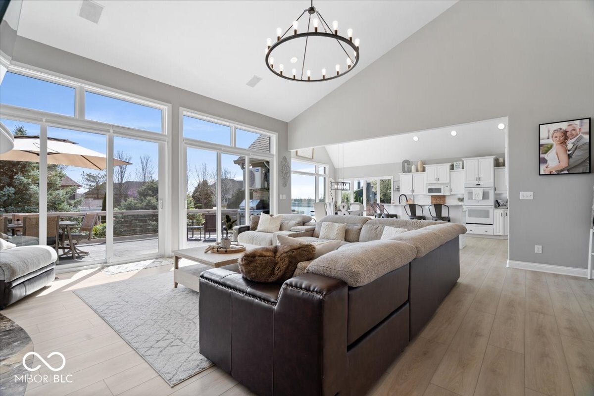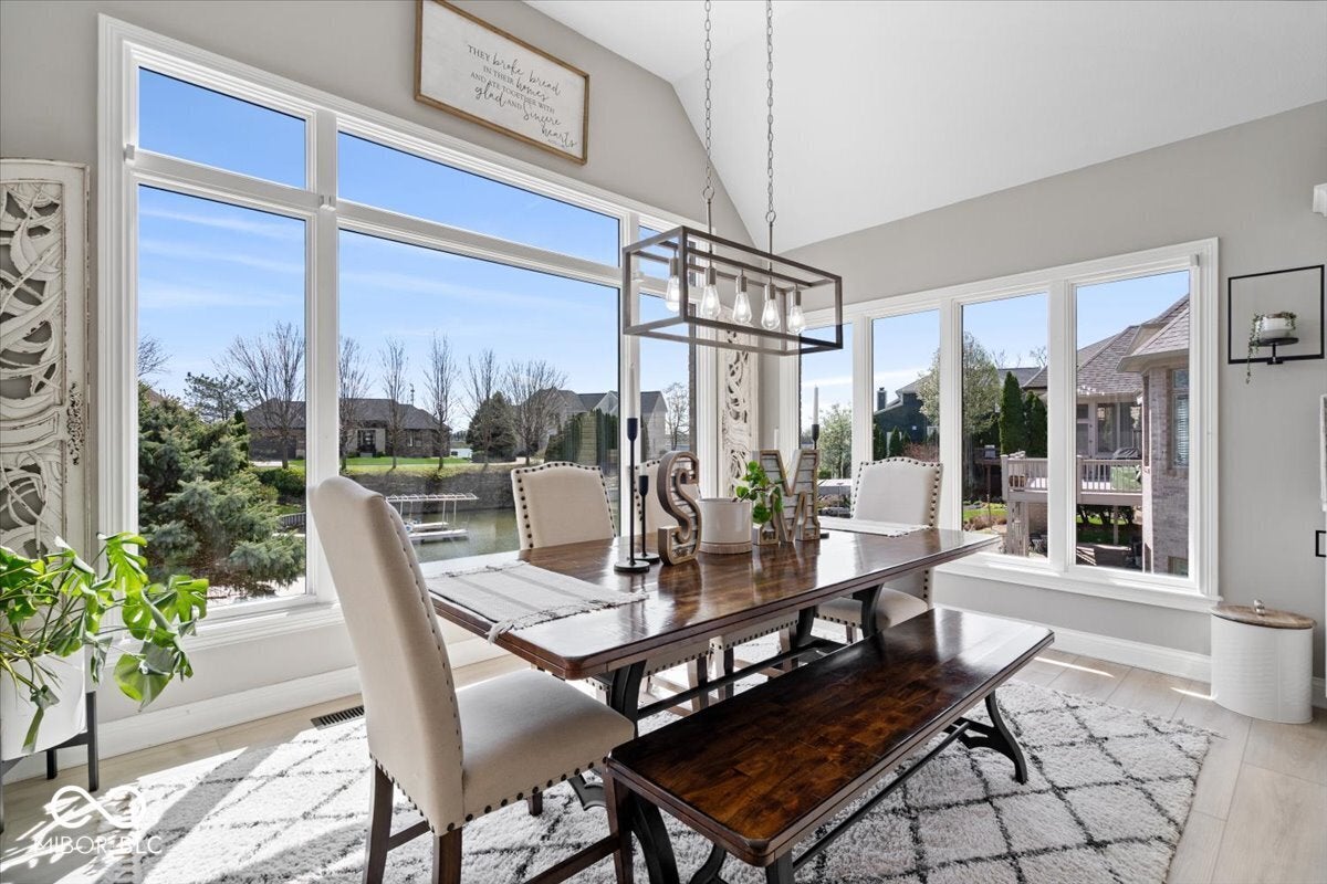 Welcome to this beautiful brick ranch home nestled along the serene shores of Geist Reservoir, offering luxury lakefront living at its finest. This 4-bedroom, 4.5-bathroom masterpiece features a walkout basement and breathtaking water views from nearly every room.