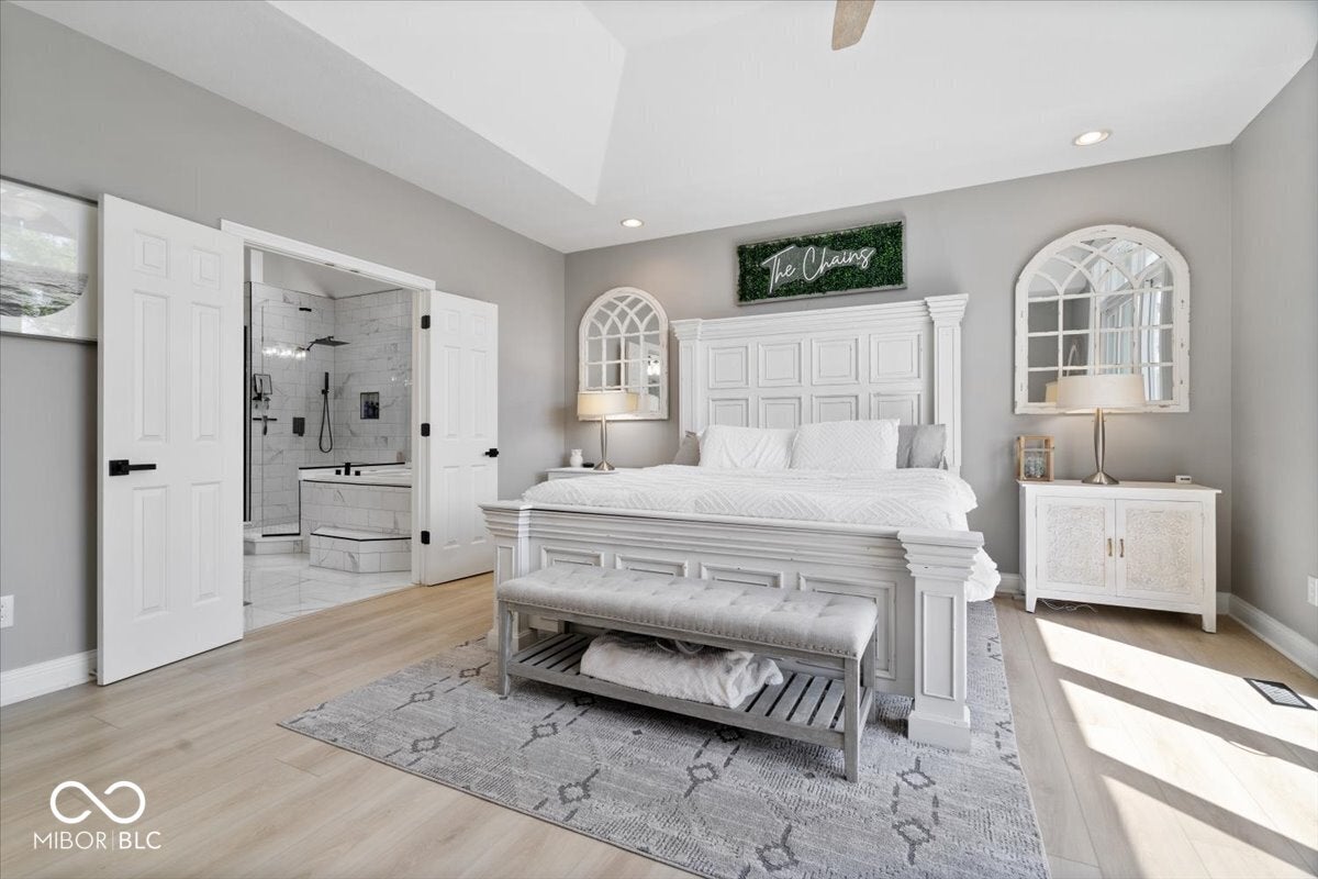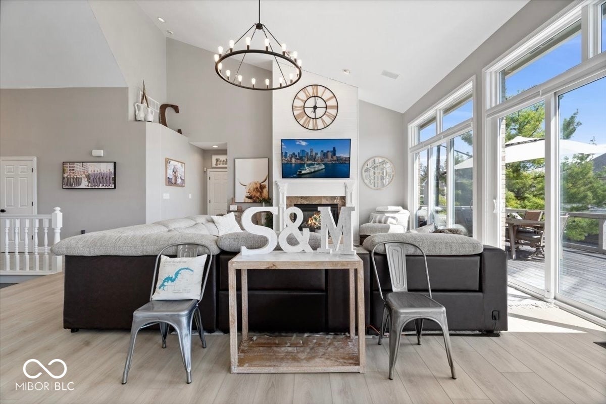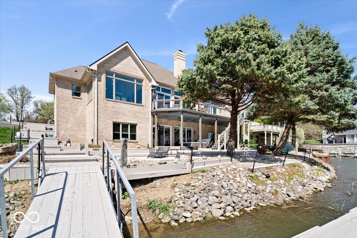 Welcome to this beautiful brick ranch home nestled along the serene shores of Geist Reservoir, offering luxury lakefront living at its finest. This 4-bedroom, 4.5-bathroom masterpiece features a walkout basement and breathtaking water views from nearly every room. The main level boasts a spacious master suite complete with elegant tray ceilings, a spa-like bathroom with a walk-in shower, soaking tub, dual vanities, and a generous walk-in closet. A large private office and a grand vaulted-ceiling entryway lead into the open-concept living room, kitchen, and dining area-perfect for entertaining while enjoying picturesque lake views. Upstairs, youll find a versatile loft with a full bath, serving as the 4th bedroom or a cozy guest retreat. The walkout basement is an entertainers dream, featuring two additional bedrooms each with private baths and walk-in closets, a large living area, a second full kitchen, a second laundry unit, and a bonus room currently set up as a home theater. Step outside to enjoy the peaceful water views from either the upper or lower deck-complete with a relaxing hot tub and outdoor tv. The private boat dock and expansive lakeside deck make this home perfect for both quiet evenings and lively gatherings. This is more than just a home-its a lifestyle. Come experience lake living on Geist!