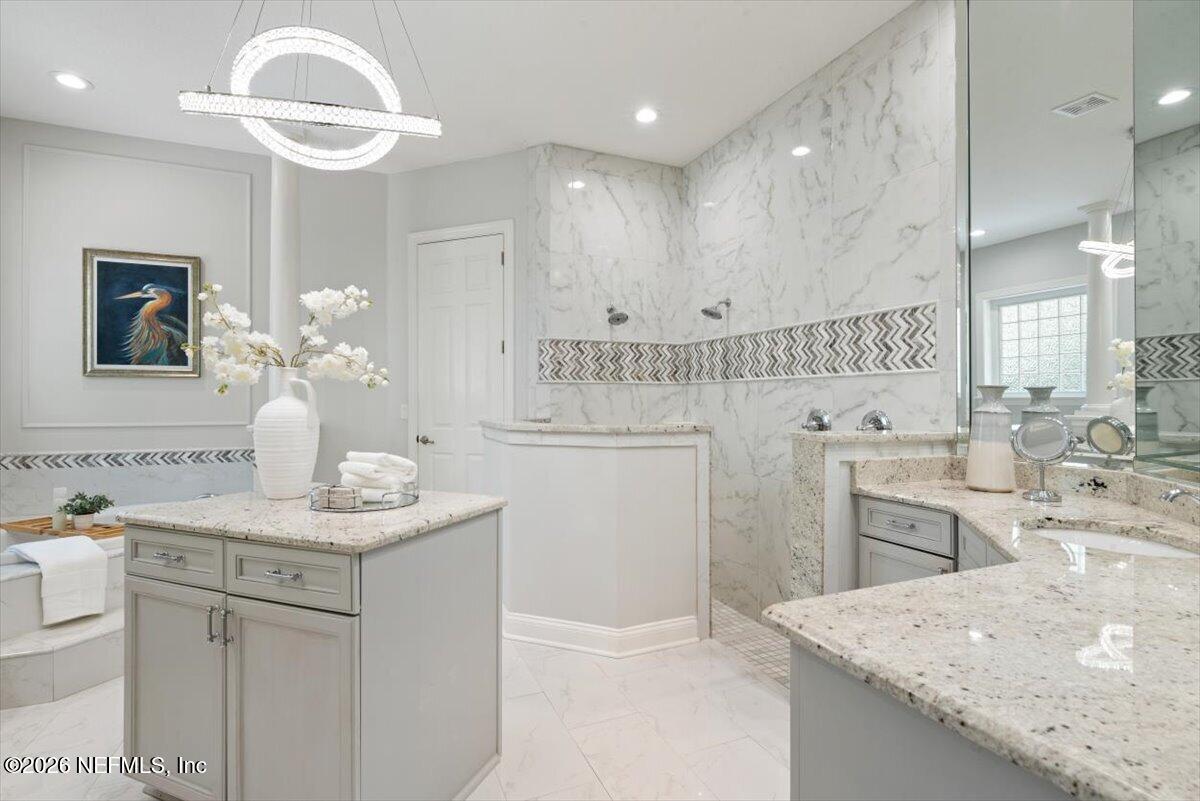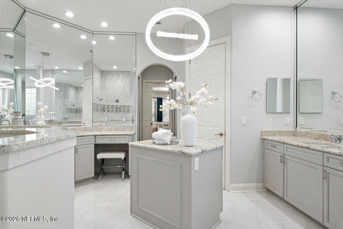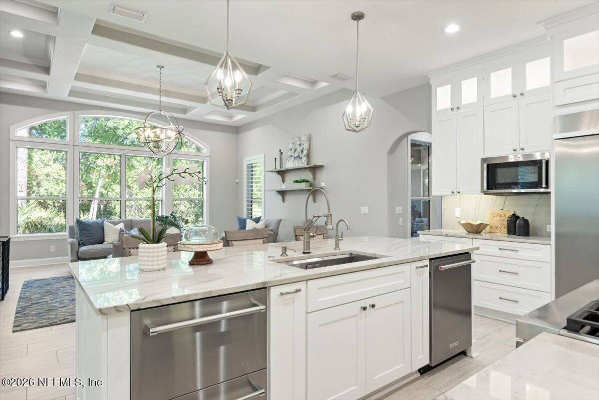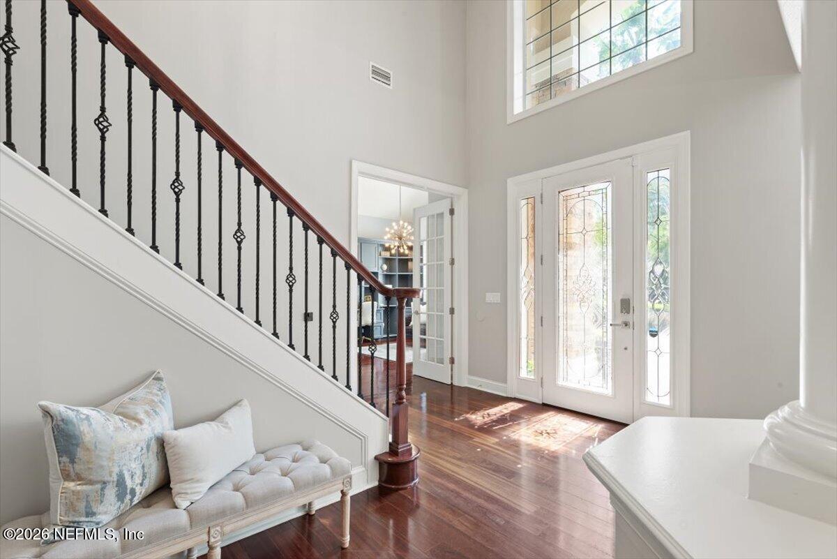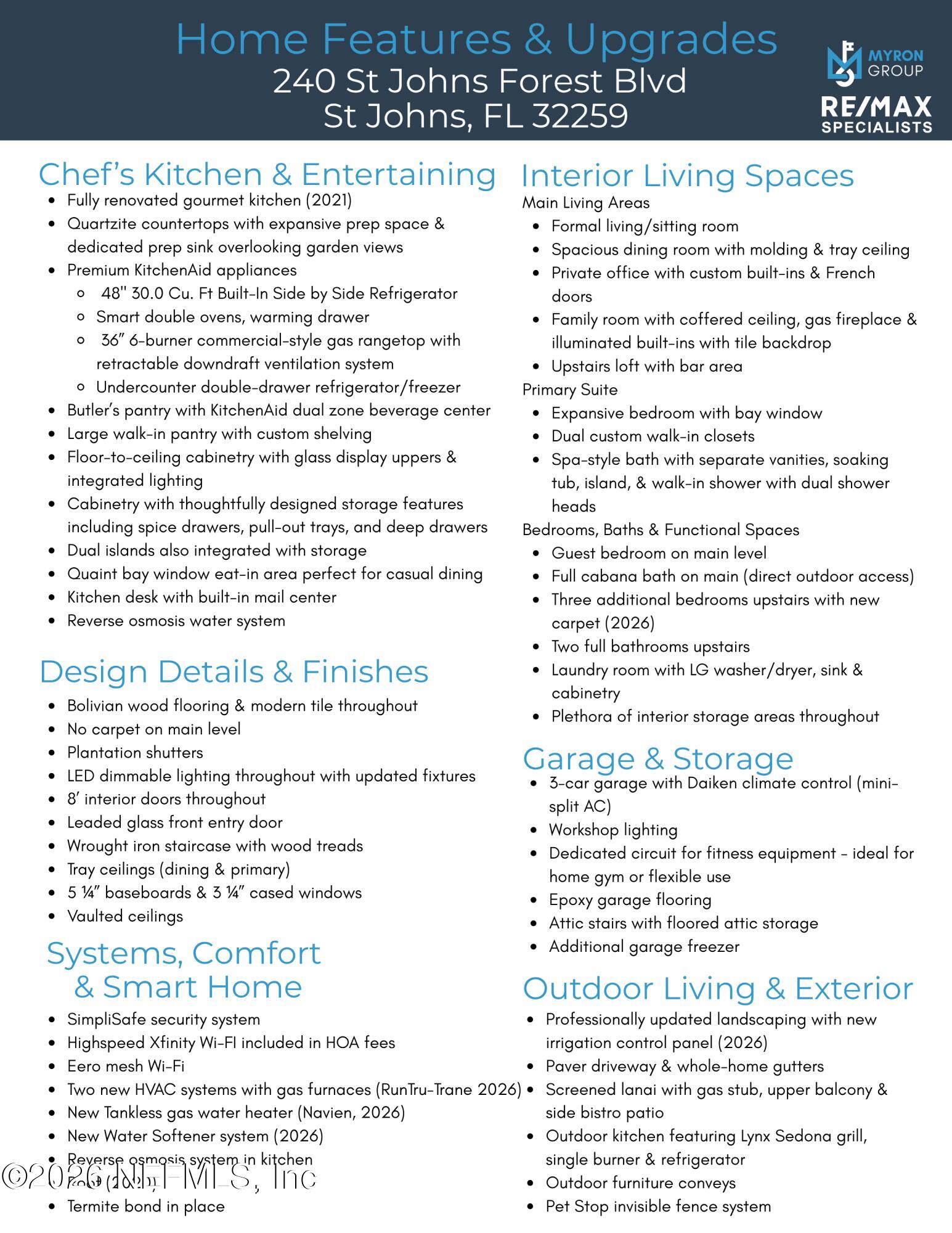 Where luxury, privacy and everyday living come together in the home youve been dreaming of! Tucked inside the prestigious 24-hour guard-gated community of St. Johns Forest, this beautifully updated 5 Bedroom, 4 Bathroom residence sits on a premium preserve lot offering rare, tranquil views both behind and alongside the home. Step inside to a thoughtfully designed floorplan that blends elegance with comfort. At its center, a large fully renovated gourmet kitchen flows into the spacious family room with expansive windows, drawing your eye to the private serene wooded backdrop. Perfectly designed for both everyday living and entertaining, enjoy formal living and dining spaces that set the stage for everything from holiday gatherings to intimate evenings. A private office with custom built-ins provide both sophistication and versatility for todays work-from-home lifestyle. The main level is as functional as it is beautiful, featuring a luxurious owners suite with tranquil preserve views, oversized custom closets with built-ins, and a spa-inspired bath that meets all your needs. An additional bedroom and full bath on the first floor offer ideal flexibility for guests or multi-generational living. Upstairs three generously sized bedrooms with walk-in closets, two full baths, and a large loft create the perfect second living area for family life and flexible living. The oversized, climate controlled 3 Car Garage is perfect for car enthusiasts, home gym, workshop, or additional storage for your lifestyle. Where this home truly comes to life is outdoors. Multiple living spaces invite you to enjoy Florida living year-round with a main lanai with outdoor kitchen perfect for entertaining and weekend gatherings, a private bistro patio just off the kitchen ideal for morning coffee, and an upper balcony retreat where evenings are best spent unwinding as the preserve gently sways around you. Add a pool or enjoy the resort-style community amenities just moments away. St. Johns Forest offers a lifestyle thats hard to match; a luxurious clubhouse, resort-style pool with one of the areas tallest waterslides (with lifeguards on duty), fully equipped fitness center, tennis courts, basketball courts, soccer fields, playground, and even a rare community roller hockey rink. A dedicated amenity director and active social calendar ensure theres always something to look forward to. HOA fees include high-speed internet for added convenience. Located in the heart of highly sought-after St. Johns County and zoned for A-rated schools (Liberty Pines Academy and Beachside High School), this home also offers exceptional connectivity with immediate access to I-95 and 9B, positioning you approximately 20 minutes closer to Jacksonville International Airport than many competing communities. Best of all, enjoy year-round Florida sunshine in a thriving, tax-friendly state where beaches, boating, and entertainment are always within reach. Ideally located just minutes from the charm of St. Augustine, this home also offers easy access to Walt Disney World and the world-class attractions of Orlando, making magical getaways feel effortlessly within reach. This is more than the move-in-ready home youve been dreaming of, its where your happily ever after begins.