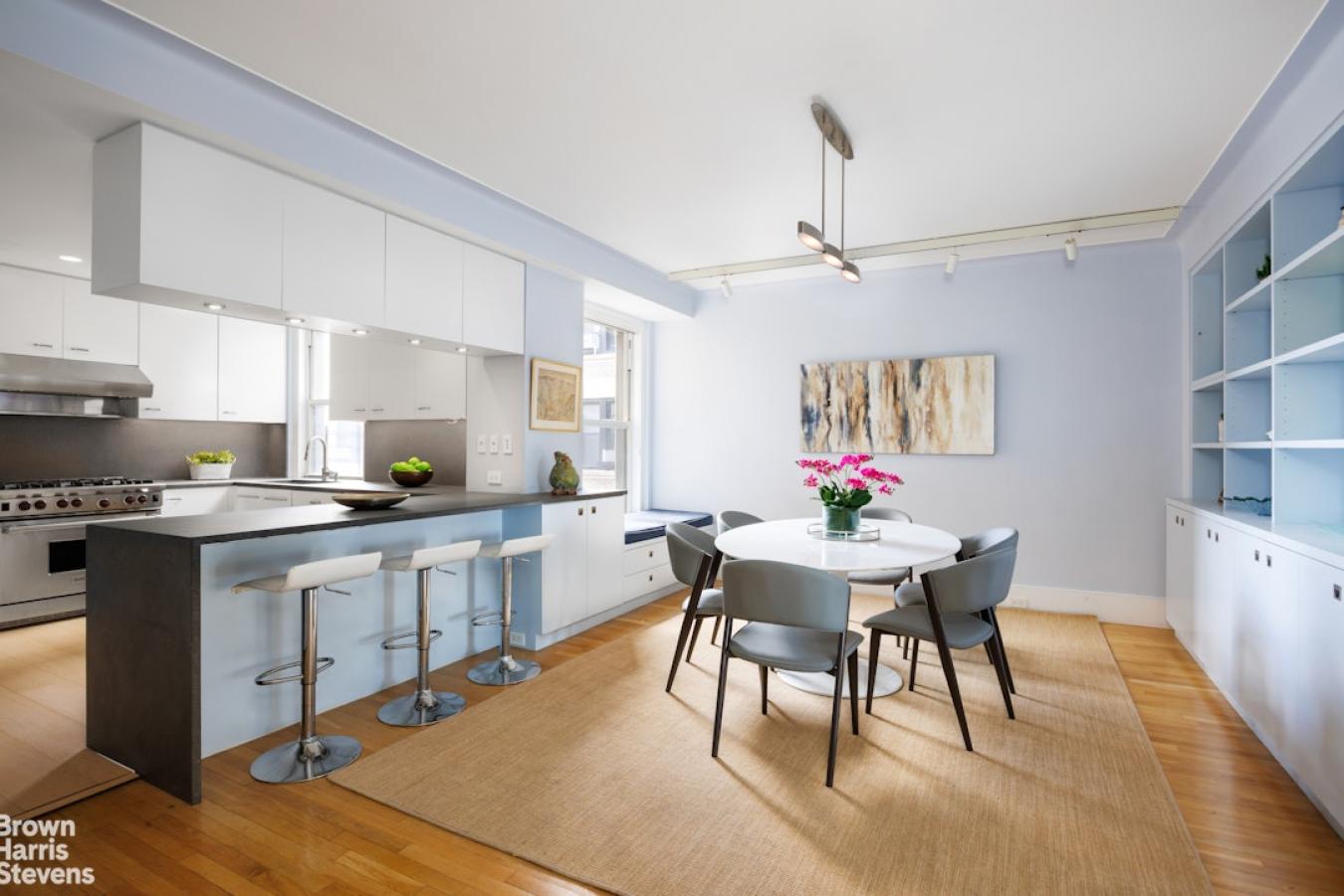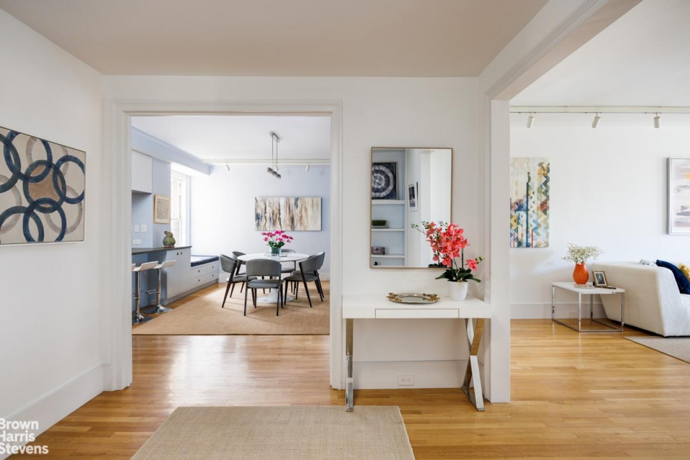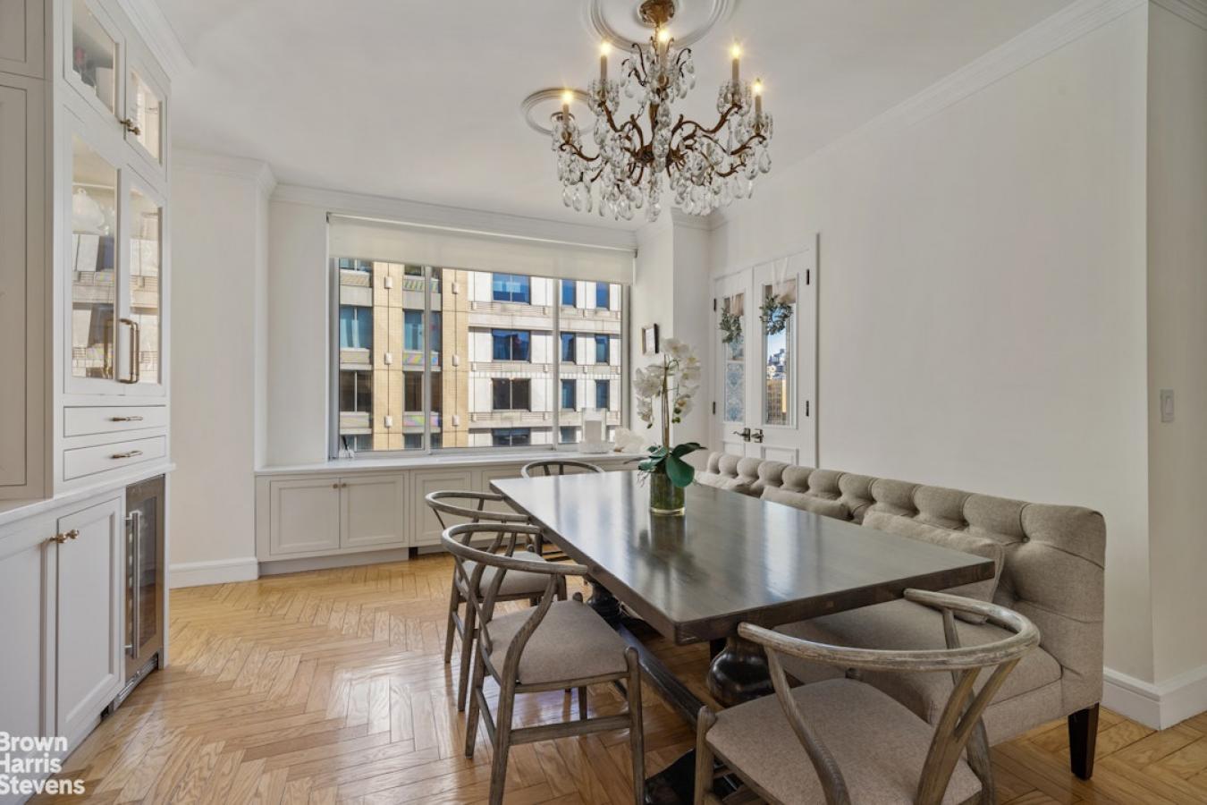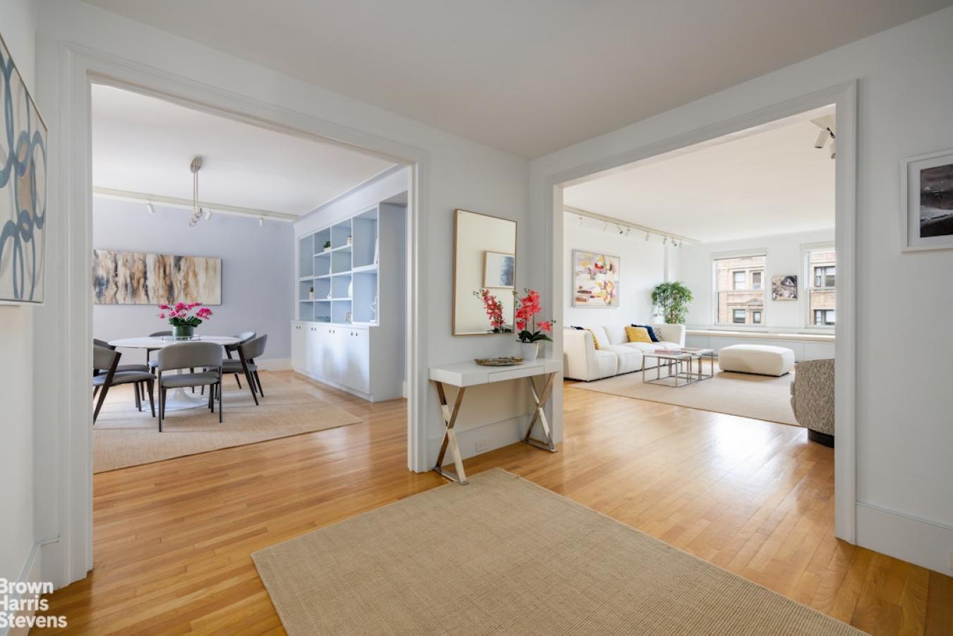 Beautifully renovated and sun-flooded, this super high-floor, corner 7-room residence has 4 exposures and windows on all sides, with even some river views! Apartment 14A is a timeless and elegant 3-4 bedroom home with 3 full bathrooms, located at 800 West End Avenue, a pre-war cooperative designed by renowned architect Rosario Candela. This exceptional residence seamlessly blends classic architectural details with modern upgrades. Enter via a semi-private landing into a gracious foyer, leading into a central gallery. Natural light streams through the open exposures. The grand, over 25-foot living room features oversized west-facing windows and a charming built-in window seat-perfect for enjoying serene Upper West Side views. The gracious living room flows into the east-facing dining room, which has open views and is enhanced by custom bookshelves and an additional window seat. The renovated windowed chefs kitchen is also open to the dining room and is beautifully appointed with top-of-the-line appliances. Highlights include a 6-burner Wolf range stove, stone countertops, abundant cabinetry, a large pantry, and a full-size washer and dryer. The generous counter island connects to the dining area, perfect for everyday living and entertaining. Completing this wing of the home is a fourth bedroom or office with a built-in desk and a full, windowed bathroom. Privately situated on the northern side of the home is the bedroom wing. The tranquil primary suite is positioned on the northwest corner, offering a charming view of the Hudson River, 2 closets, one of which is a walk-in, and a beautifully upgraded, windowed en suite bathroom. There are two additional well-proportioned bedrooms, each with ample closet space, including a walk-in, that share a thoughtfully designed bathroom with a tub. Additional features of this exceptional home include beautiful hardwood floors, central air conditioning in the main living areas, and custom built-ins throughout. 800 West End Avenue is a full-service building beautifully located on the Upper West Side near fabulous Riverside Park and all the splendor the neighborhood has to offer. The building features a 24-hour door attendant with elevator access control, a live-in superintendent, a playroom, private storage, a laundry room, and is pet-friendly. The maximum financing percentage is 75%.