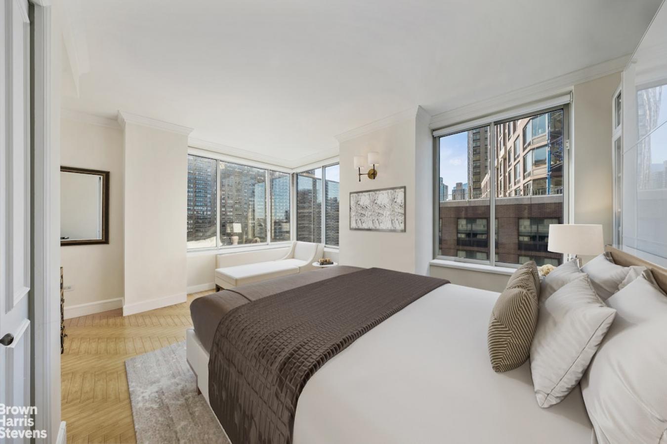 Residence 15I at 200 Riverside Boulevard is a rare and refined corner home that seamlessly blends thoughtful design with modern functionality. This expansive two-bedroom, two-bathroom residence with a dedicated home office (or third bedroom) offers a sophisticated layout ideal for both everyday living and effortless entertaining. Bathed in natural light from every exposure, the home feels airy and serene-an intentional sanctuary from the digital world. The heart of the residence is its bespoke kitchen, meticulously crafted with American-made Great Northern hardwood cabinetry and complemented by elegant Everleigh Cambria stone countertops. A striking Italian handmade sapphire art glass and Calacatta backsplash adds a layer of artistry and distinction. The kitchen is fully equipped with premium appliances, including a Viking stove, XO vent, Liebherr refrigerator, and an under-counter XO wine cooler, all enhanced by Brizo and Kohler fixtures. Classic paneling throughout the living spaces lends a sense of architectural permanence and understated sophistication. The separate office/study is a standout feature, designed as a "modern vintage" retreat with curated green floral wallpaper, offering both inspiration and privacy for work or reflection. Every detail of this home has been carefully considered to balance high functionality with warmth and familiarity. In an era defined by constant connectivity, Residence 15I offers a timeless environment grounded in comfort, craftsmanship, and quiet luxury-truly a home designed for 2026 and beyond. Located within 200 Riverside Boulevard-the original luxury condominium along Riverside Boulevard-residents enjoy the highest level of white-glove service in a full-service, pet-friendly building. Built in 1998 and rising 48 stories with 376 residences, the building offers a 24-hour doorman, concierge, and resident manager. Amenities include a state-of-the-art health club with a swimming pool, steam room, and sauna; a childrens playroom; bike room; private storage; on-site dry cleaning; and a parking garage. The conference center and childrens playroom are under renovation and will debut later this year. Perfectly positioned on the Upper West Side, at the crossroads of West 70th Street and Riverside Blvd, 200 Riverside Boulevard offers convenient access to public transportation and is moments from some of the neighborhoods best dining, shopping, entertainment, and outdoor recreation, including Riverside Park just outside your door. Please note the monthly unabated taxes are 1,831, but if a primary resident applies for the STAR abatement, they would decrease to 1,511. Please speak to your attorney and CPA if you qualify.