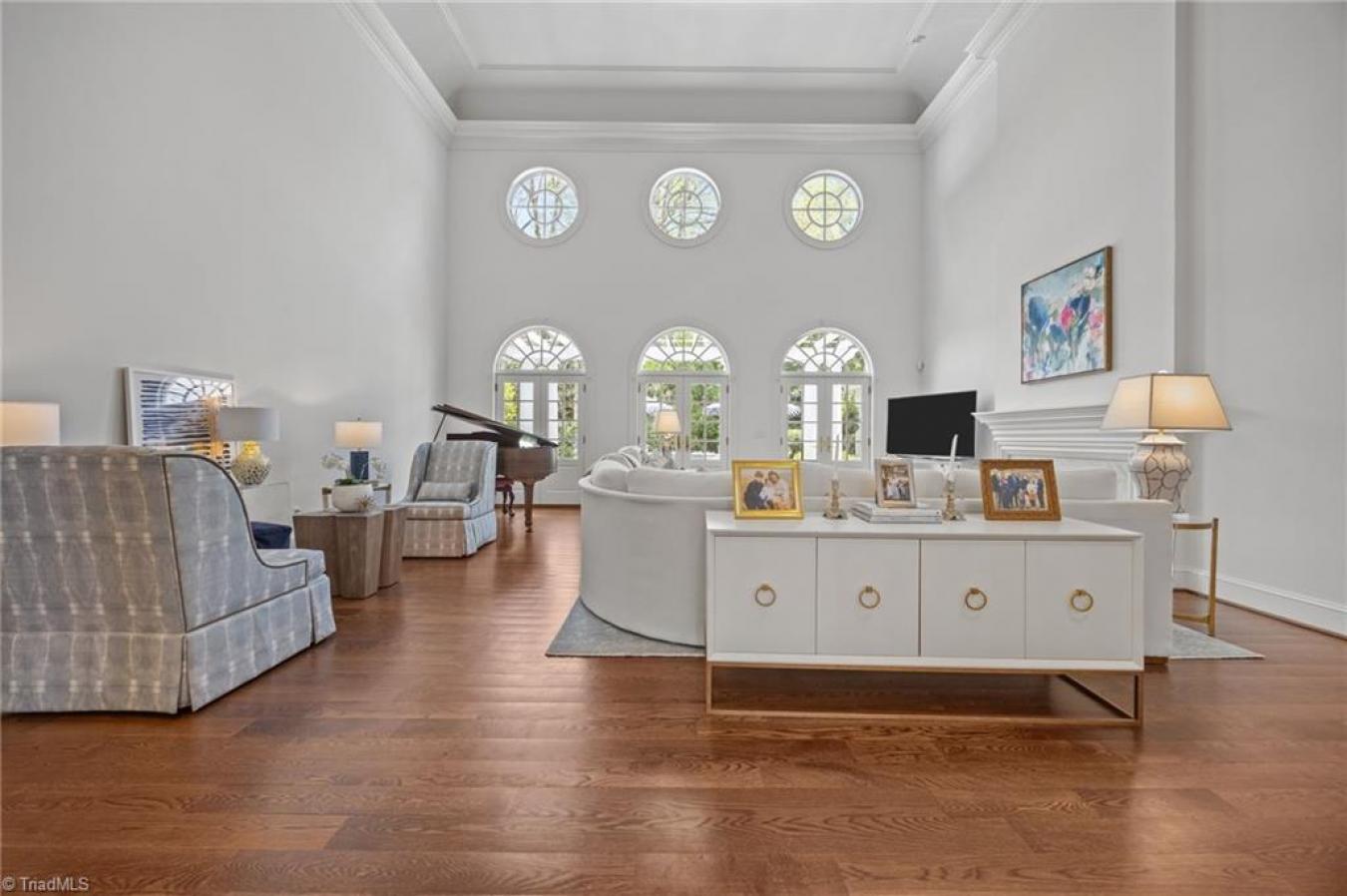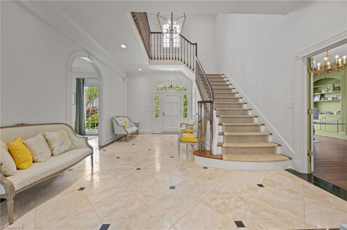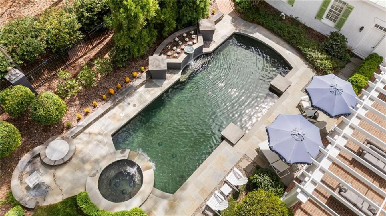 Experience the sophistication of this showcase home located in the highly sought-after Northern Shores of Lake Jeanette. A William Poole-designed Georgian Revival redefines elegance. Step outdoors to a professionally curated oasis-a saltwater pool, spa, tranquil water features, fire pit & trellis-covered patio. Inside, an elegant 2-story foyer & living room await, while natural light fills every wall. The chefs kitchen features custom cabinetry, marble countertops, high-end appliances, double dishwashers, and ovens. The main-level primary suite offers private pool access, while the spa-like bath provides a steam shower, jetted tub, bidet & dual primary closets. A grand study awaits w/ built-ins, gas logs & a fridge. Media and hearth rooms offer additional gathering spaces. Hardwood floors, crown moldings & an elegant entry staircase add an abundance of luxury. 2 laundry rooms, a 2nd staircase, and en-suites in each bedroom. The third floor boasts a sauna, fridge, gym flooring & plush carpet-very versatile!