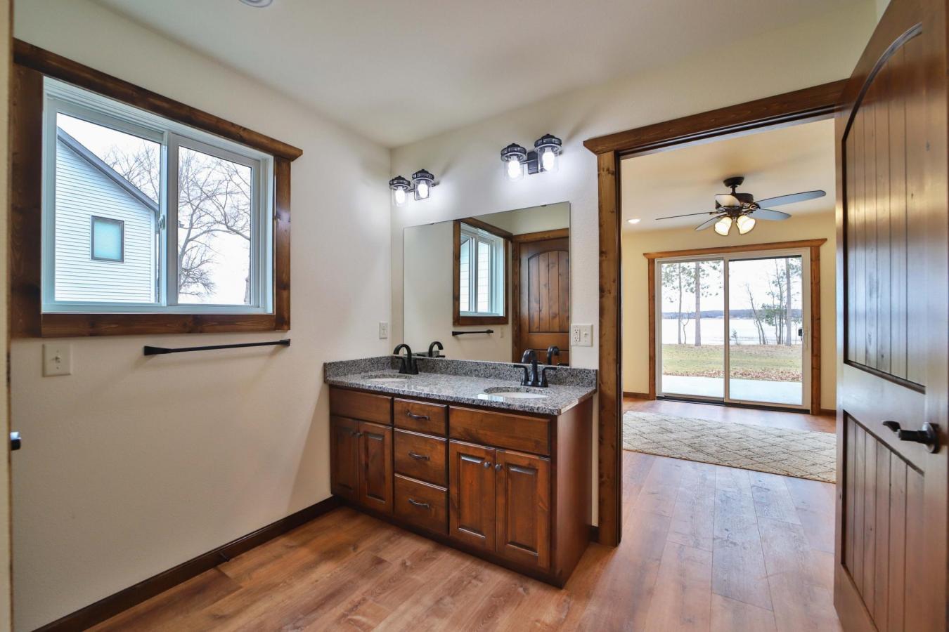 Experience effortless lakeside living with this newly built, one-level home on White Sand Lake, ideally located near all the conveniences, dining, and medical facilities of the Brainerd Lakes Area. Inside, experience an inviting open-concept layout highlighted by vaulted ceilings, a gas fireplace, and abundant natural light from the lake-facing windows. The home offers three bedrooms and three bathrooms. The primary suite features a beautifully finished, accessible en-suite bathroom with a tiled shower, a spacious walk-in closet, and a sliding door that opens directly to the lakeside patio, which was poured with footings, allowing you to build a screened porch right on the slab! The chefs kitchen features stainless steel appliances, a center island, and a spacious walk-in pantry. Outside, the property boasts both level elevation to the lake and over 100 feet of pristine, sugar-sand shoreline, with 220-amp and 110-amp service already at the lake, a hard-to-find combination. The large yard is the perfect space for games, activities, and relaxation. Enjoy in-floor heating in the home and garage. The oversized, heated, and insulated three-stall garage is perfect for vehicles, storage, and a comfortable place for your hobbies. A perfect blend of modern convenience and lakeside elegance that you will not want to miss.