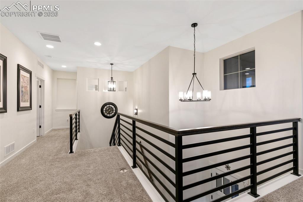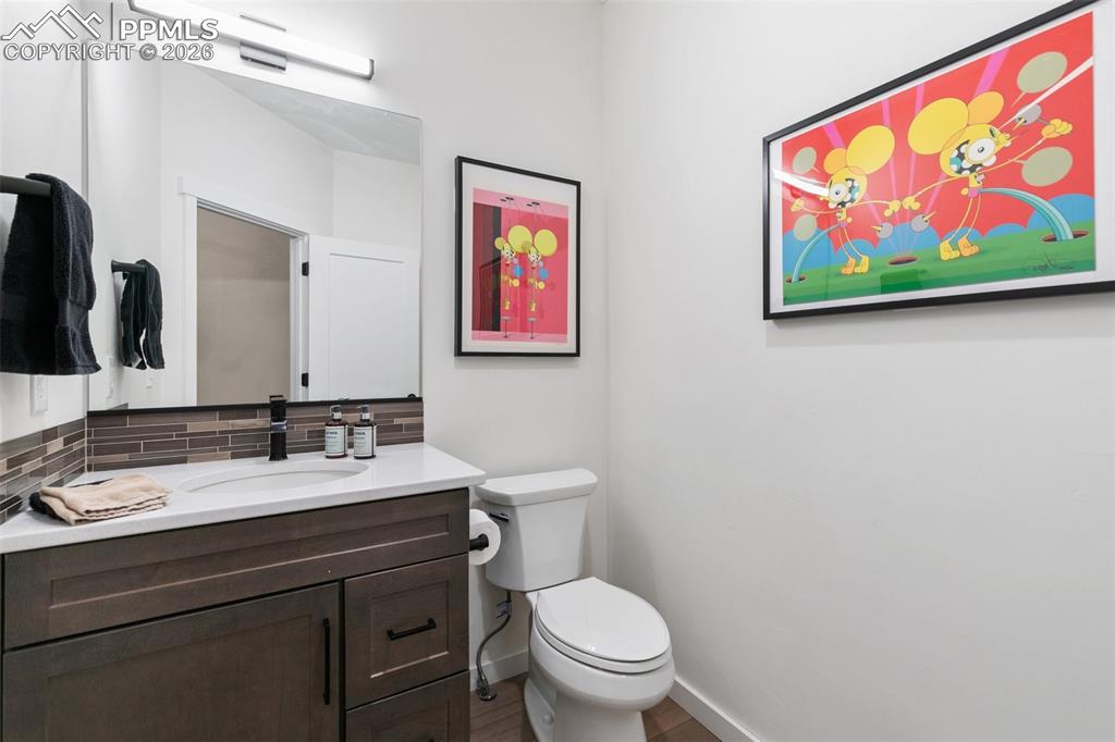 Experience elevated Colorado living in this stunning, fully upgraded 5-bedroom, 4-bathroom 3-car garage home on almost a 1/3rd of an acre lot, located in the highly sought-after Sanctuary Pointe community. Showcasing Front Range mountain views and exceptional attention to detail throughout, this home perfectly blends luxury and comfort. Step inside where the main level features a private office with elegant French doors and a sophisticated living room anchored by a dramatic floor-to-ceiling tiled fireplaceperfect for cozy Colorado evenings. The gourmet kitchen is a chefs dream with sleek and timeless finishes complete with double ovens, a gas cooktop, quartz countertops and an expansive island. Outside find your own private retreat, where multiple outdoor living spacesincluding a covered patioinvite you to relax while enjoying tranquil water features and sweeping mountain views. The main level also offers a dining area, walk-in pantry, powder room, and a functional mudroom with direct access to the garage. Upstairs, youll find a versatile loft with walkout access to a view deck, two secondary bedrooms, and a laundry room w/ built-in cabinetry, and a utility sink. The luxurious primary suite is a true sanctuary, boasting a private deck, a large walk-in closet, and a spa-inspired 5-piece bath with a freestanding soaking tub, dual vanities, tiled shower with penny tile accents, as well as a linen closet. The finished basement offers 9-foot ceilings, built-in speakers, a striking stone fireplace, a full wet bar and two additional bedrooms. Additional upgrades include dual A/C units, dual furnaces, a radon mitigation system, hand troweled texture walls, whole-house ventilation and drip irrigation. Ideally situated with easy access to I-25, this home offers a convenient commute to both Denver and Colorado Springs, within minutes from scenic trails, hiking, dining, shopping, and the Air Force Academy. This is Colorado living at its finestschedule your showing today.