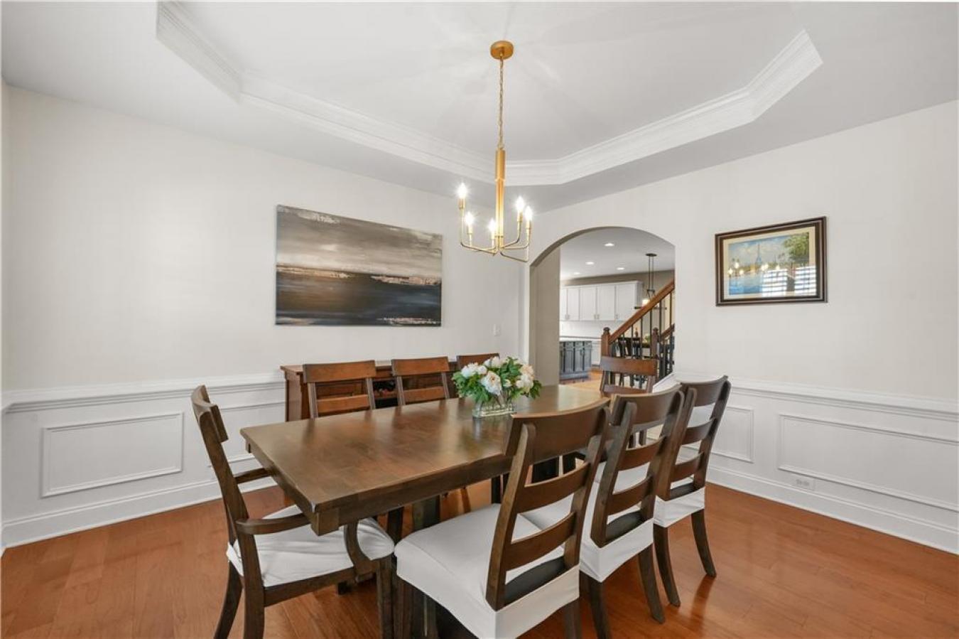 A beautifully appointed four-bedroom, two-and-a-half-bath home designed with both comfort and thoughtful detail in mind. From the moment you enter, custom moldings carry throughout the home, adding a sense of continuity and understated elegance.At the center of the home is a striking great room with 15-foot ceilings, creating an open and airy feel.