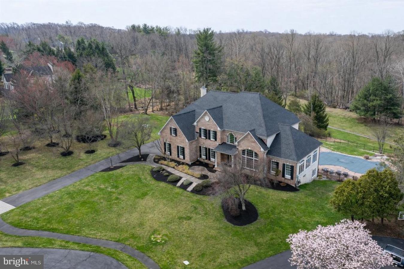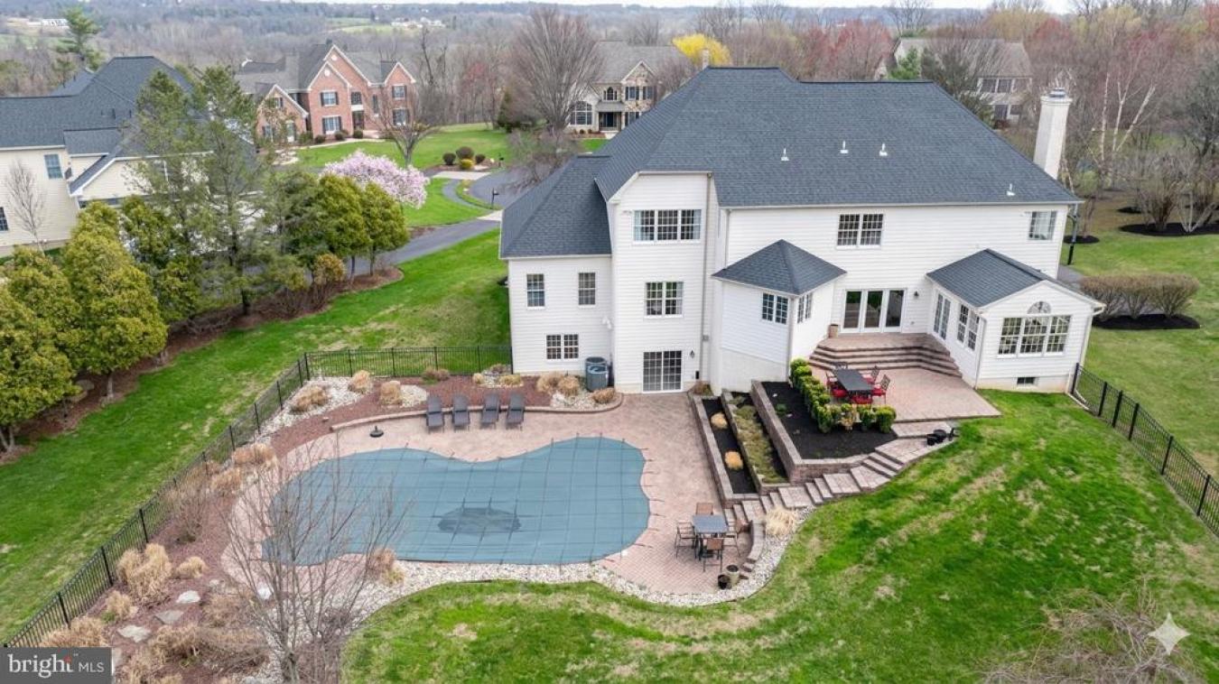 Welcome to this spacious brick Colonial located in the highly desirable Cedar Brook Farm neighborhood. Situated on 1.2 acres, this 4-bedroom, 4-full-bath home offers generous living spaces and exceptional indoor and outdoor areas perfect for entertaining. A welcoming two-story foyer opens to a bright living room on the right and a private office on the left. The living room features floor-to-ceiling built-in shelving and abundant natural light. Just beyond the living room is a stunning conservatory surrounded by windows and custom shelving-an ideal space for a grand piano, home office, or additional lounge area. The living room flows seamlessly into the formal dining room, which comfortably accommodates a large dining table for gatherings. The kitchen offers 42" cabinetry, ample counter space, and a center island with bar-height seating for casual meals. A secondary staircase nearby provides convenient access to the second floor. The adjoining breakfast area opens to the family room, where coffered ceilings and a wood-burning fireplace create a warm and inviting atmosphere. A wall of new Anderson doors leads to the outdoor patio, filling the space with natural light. Just off the family room is a charming sunroom perfect for relaxing or reading with direct access to the patio. Completing the first floor is a newly renovated full bathroom with a walk-in shower and a laundry room that leads to the three-car garage. Upstairs, the home continues to impress with spacious, light-filled bedrooms. The primary suite features a sitting room that can serve as a workout space, nursery, or home office, along with a large walk-in closet offering ample storage. The primary bathroom has been updated with new countertops and a refreshed shower. On the opposite side of the second floor is a large bedroom with a built-in window seat, shelving, two generous closets, and a private en suite bath with a tub and shower. Two additional well-sized bedrooms and a hall bath complete the upper level. The full unfinished basement offers 9-foot ceilings and walk-out doors leading directly to the pool area, providing endless possibilities for future finishing. Outdoors, the property is designed for relaxation and entertaining with a fenced backyard, an in-ground pool, and a beautiful two-tier patio that backs to 25 acres of preserved land. Located in the award-winning Council Rock School District, this home is conveniently close to major highways, shopping, dining, hospitals, and parks. Additional highlights include a newly installed roof (March 2026), Anderson patio doors (2026), a built-in sprinkler system, surround sound throughout the house, and a two-zone HVAC system.