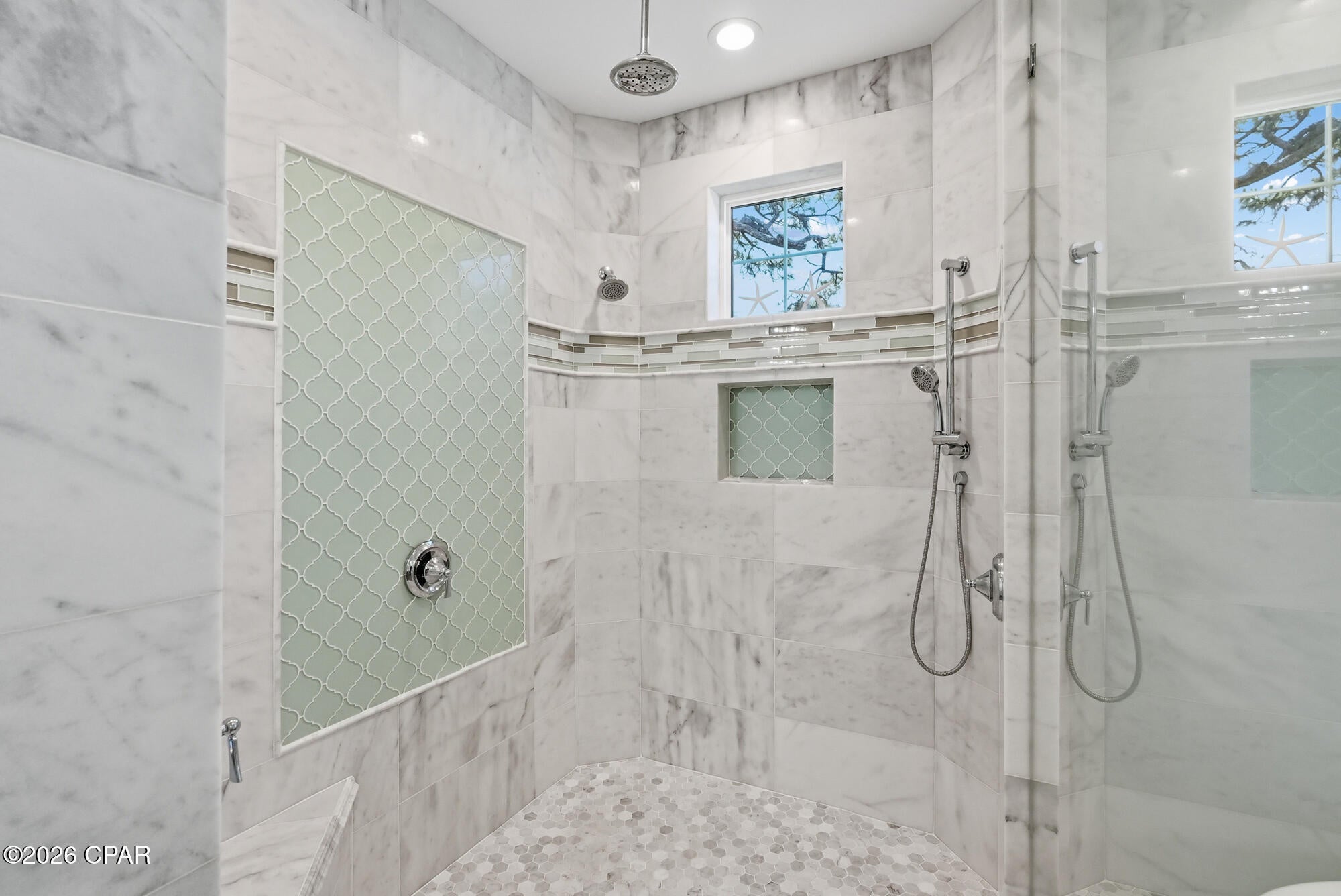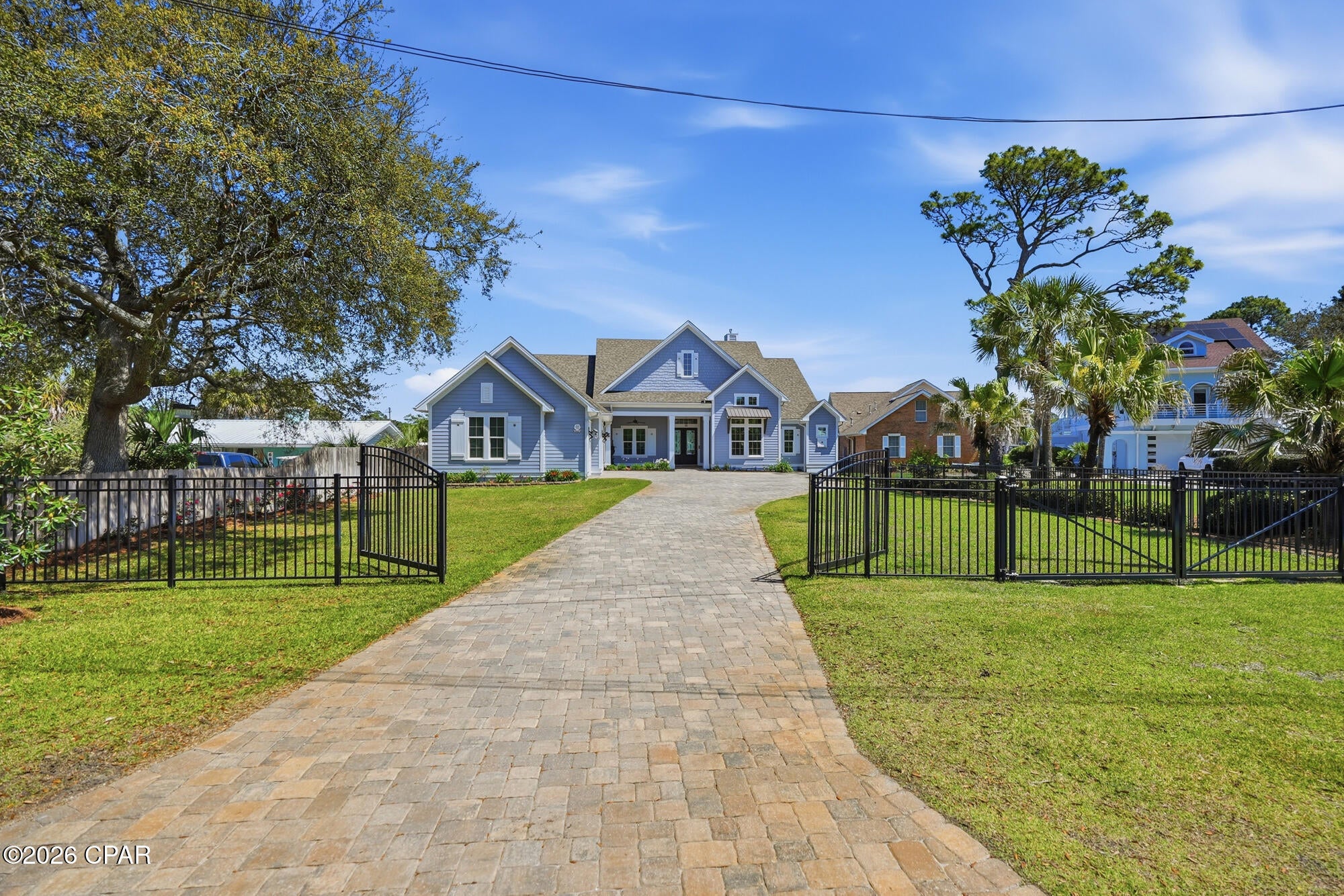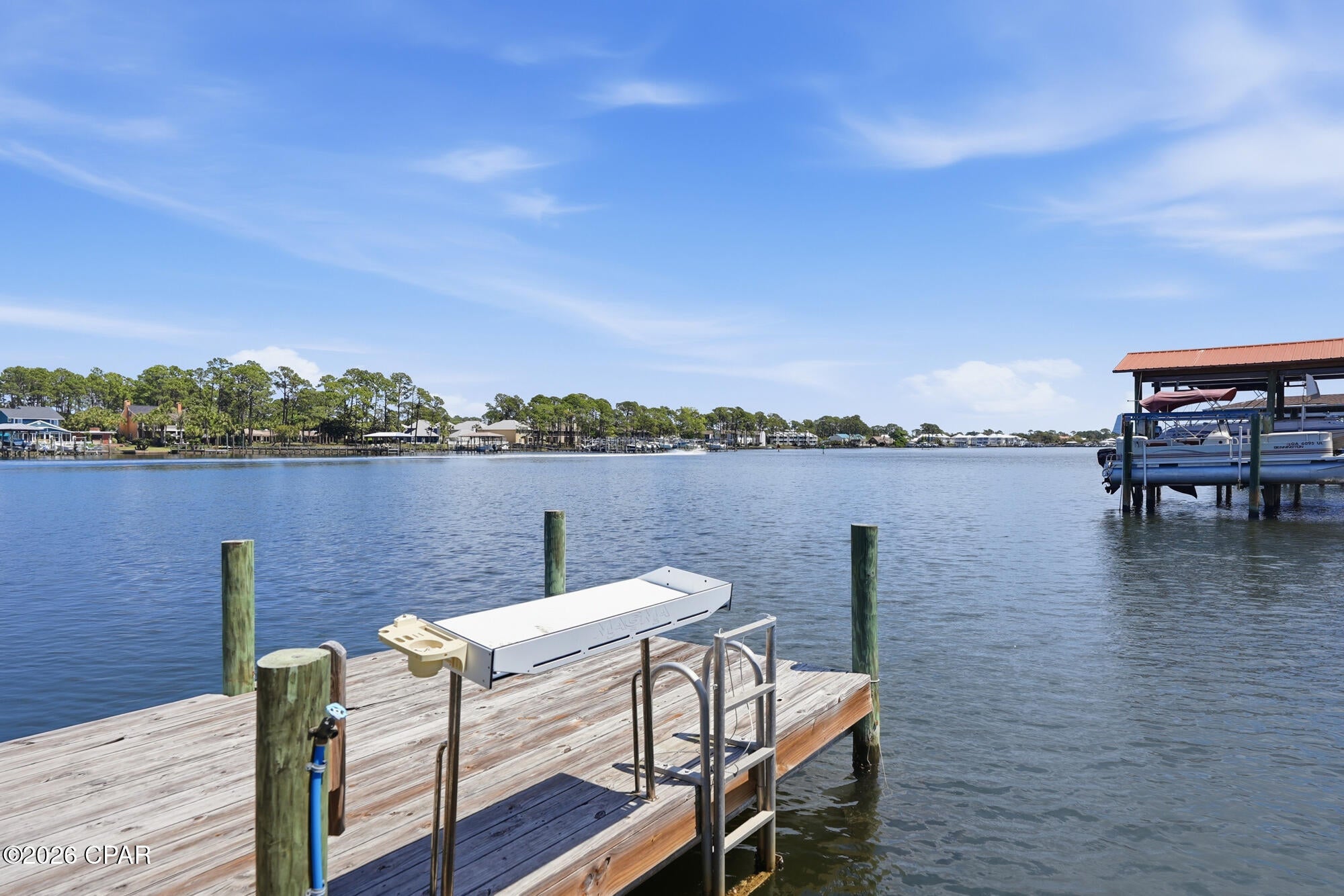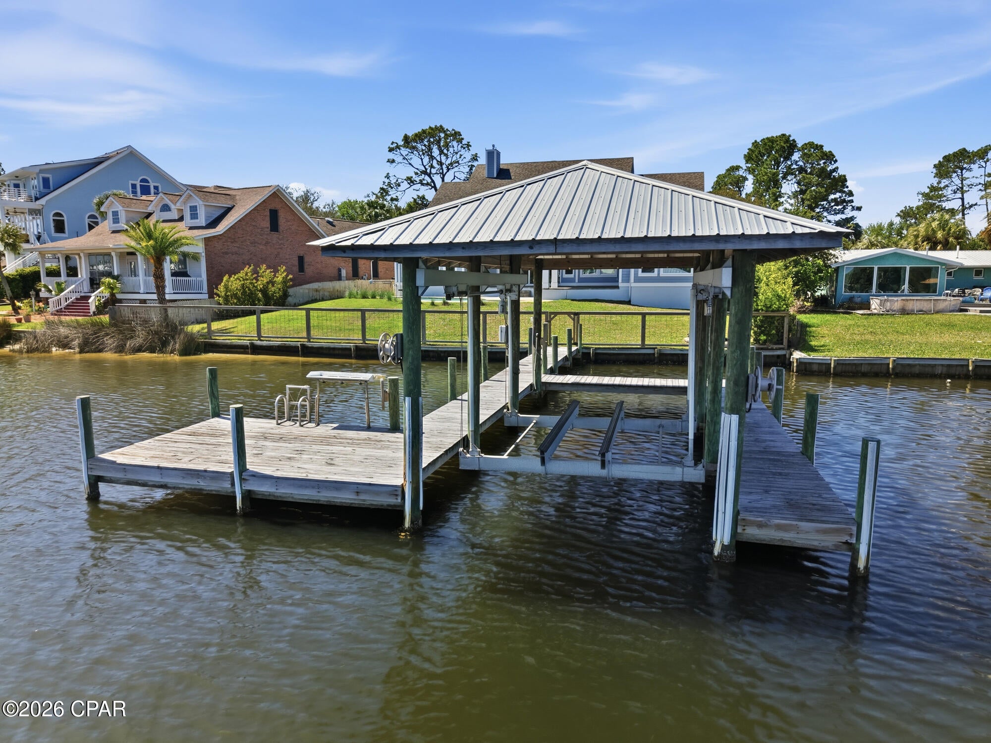 Welcome to 6728 South Lagoon Drive, a stunning waterfront retreat perfectly positioned on South Lagoon in Panama City Beach. Built in 2020 by Arthur Rutenberg, this exceptional one-story residence offers 3,404 square feet of heated and cooled living space and 4,938 square feet under roof including the outdoor living areas. An upgraded version of the sought-after May River floor plan, this home sits on a rare double lot and showcases quality craftsmanship, thoughtful design, and luxurious coastal living at its finest.This boaters paradise offers unobstructed water views and seamless indoor-outdoor living designed to capture the beauty of the lagoon. The spacious 4-bedroom, 3-bathroom home features an open-concept layout with breathtaking views from the kitchen, dining, and living areas. The expansive living room is highlighted by vaulted ceilings, a cozy gas fireplace, and floor-to-ceiling glass sliders that open completely to a covered outdoor living space--perfect for entertaining or relaxing while overlooking the water. The dining area is filled with natural light from elegant bay windows, and the kitchen is thoughtfully equipped with a gas stove, a double oven, two refrigerators, and a generous walk-in pantry. Beautiful hardwood floors run throughout the main living spaces, while quartz countertops are featured throughout the home, with granite in the laundry room for added durability.The primary suite is a true private retreat, featuring a split floor plan with double doors that allow you to close off the bedroom, closets, and bathroom from the rest of the home for maximum privacy. The suite also includes his and hers walk-in closets, offering ample storage and organization. The spa-like primary bathroom includes a standalone soaking tub, a marble, zero-threshold (curbless) oversized dual shower head shower, and a his-and-hers vanity--complete with a dedicated sit-down makeup area on the hers side for added luxury and convenience. The suite is also framed for a private exterior door, offering even more flexibility.A versatile multi-use office with beautiful beamed ceilings adds character and flexibility for work or additional living space.Step outside to your private oasis featuring a 6-foot inground saltwater pool complete with bubblers and a sun shelf. The fully fenced yard includes a sprinkler system powered by a separate well, a gated and paved driveway, and a 3-car garage with an elevated lift for easily accessible extra storage. The home is also equipped with gutters, spray foam insulation for energy efficiency, a tankless hot water heater, and a built-in monitored security system with hardwired outdoor cameras for added peace of mind. An in-wall pest control system further enhances convenience.For boating enthusiasts, this property truly stands out with a covered boat lift, deep water dock, and seawall--allowing you to take your boat out anytime of day regardless of the tides. Enjoy a quick 15-minute boat ride to the open Gulf or take a short 5-minute drive to the areas famous white sandy beaches. Pier Park is just 20 minutes away, offering shopping, dining, and entertainment. Located in a golf cart-friendly community, this home offers both convenience and a relaxed coastal lifestyle.With gas and electric already available for an outdoor kitchen, this home is ready to create the ultimate waterfront experience.Dont miss your chance to own this exceptional coastal property where luxury, comfort, and breathtaking views come together.