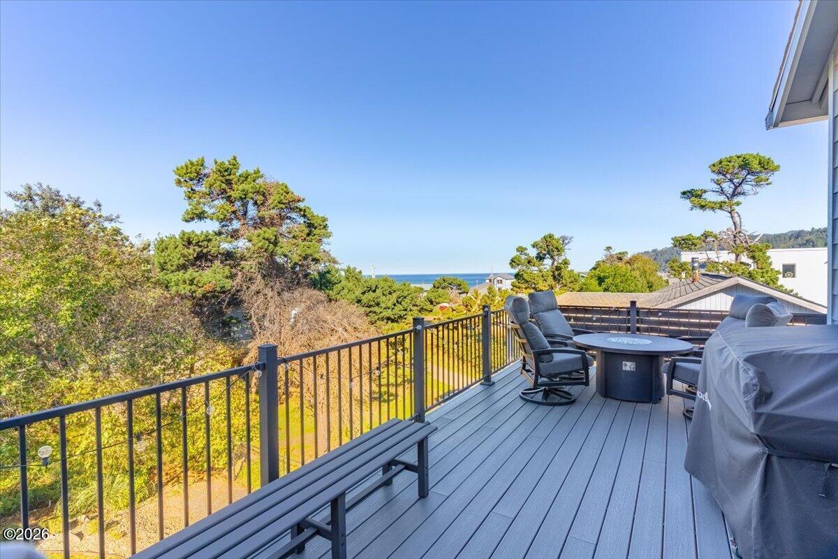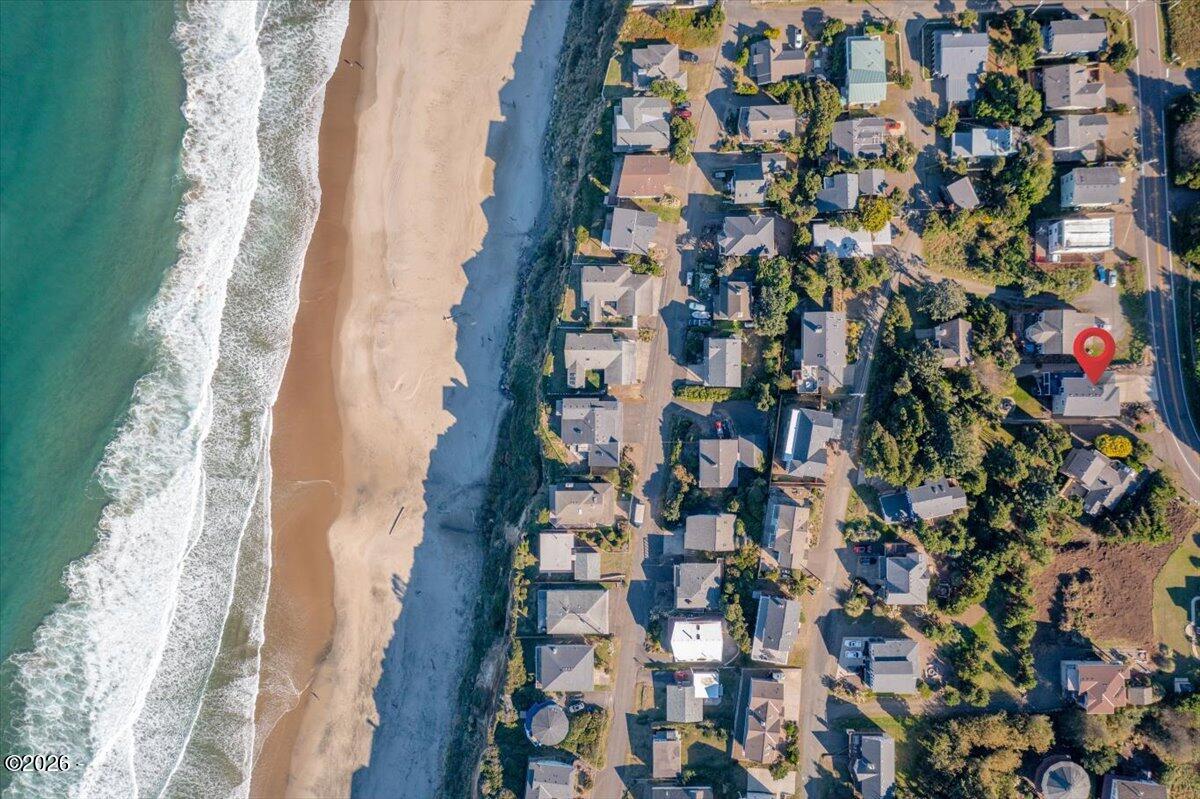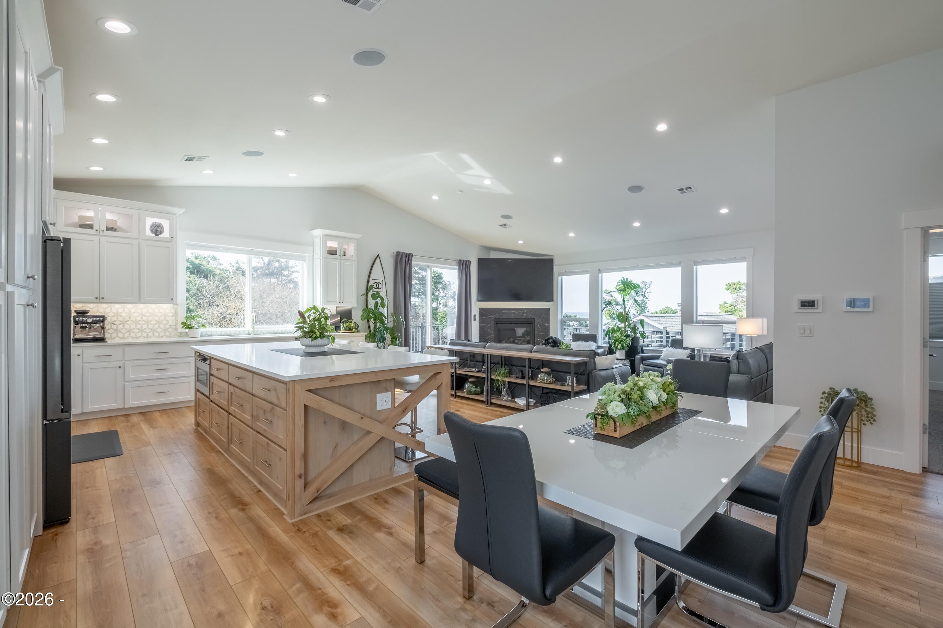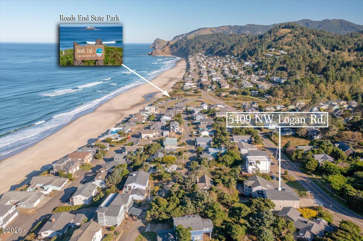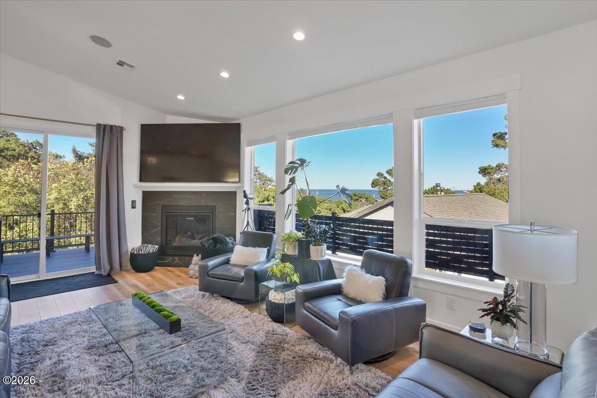 Luxury that inspires in the coveted Roads End neighborhood, where thoughtful design meets elevated coastal living. This stunning 2,636 sq ft modern home welcomes you with an open-concept main level crafted for both everyday comfort and refined entertaining. The chefs kitchen is a true centerpiece, featuring quartz countertops, a custom island, premium appliances, and a gas range, all seamlessly connected to a light-filled open living space with soaring ceilings, designer finishes, and a dramatic statement fireplace. The primary suite offers a private retreat, complete with a custom walk-in closet and a spa-inspired bath showcasing a steam shower. A second bedroom and spacious laundry room on the main level provide convenience and flexibility. Downstairs, the home continues to impress with a guest-ready en suite, kitchenette, and expansive flex space ideal for multi-generational living, extended stays, or entertaining. Even a doggie outlet space. Step outside to experience exceptional outdoor living with two oversized decks designed for gathering and relaxing, a fenced yard with a fire pit, and a lower covered patio for year-round enjoyment. Immerse yourself in the sights and sounds of the coastenjoy views of active ocean waves, breathe in the fresh salt air, and take in magnificent sunsets that paint the sky each evening, all complemented by the iconic silhouette of Gods Thumb. With beach access just steps away, this home captures the essence of coastal luxury living. Ideally located near renowned coastal restaurants, charming shabby chic boutiques, the Lincoln City Outlets, and Chinook Winds Casino offering not just gaming but a variety of entertainment this home blends luxury with the best of coastal lifestyle and convenience.