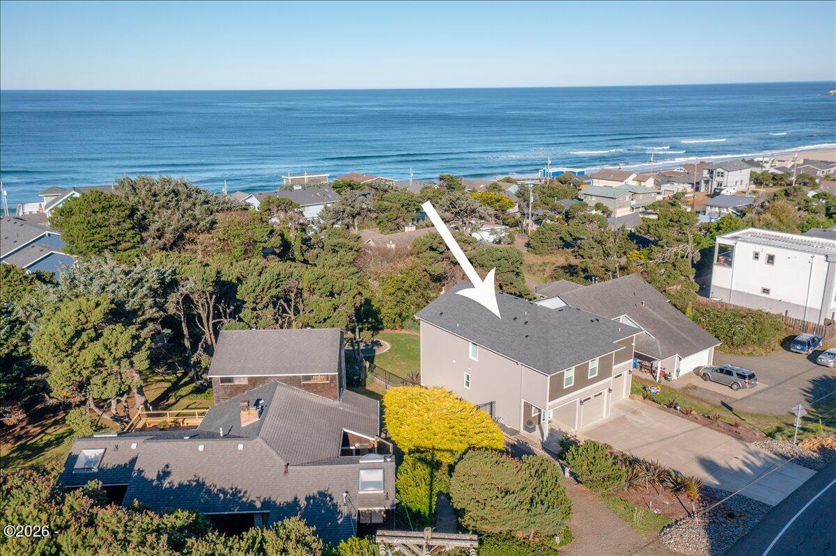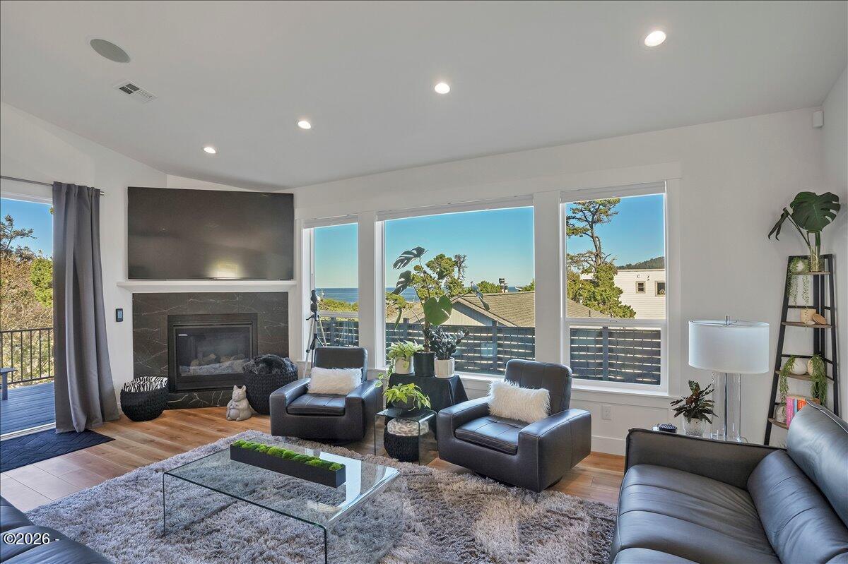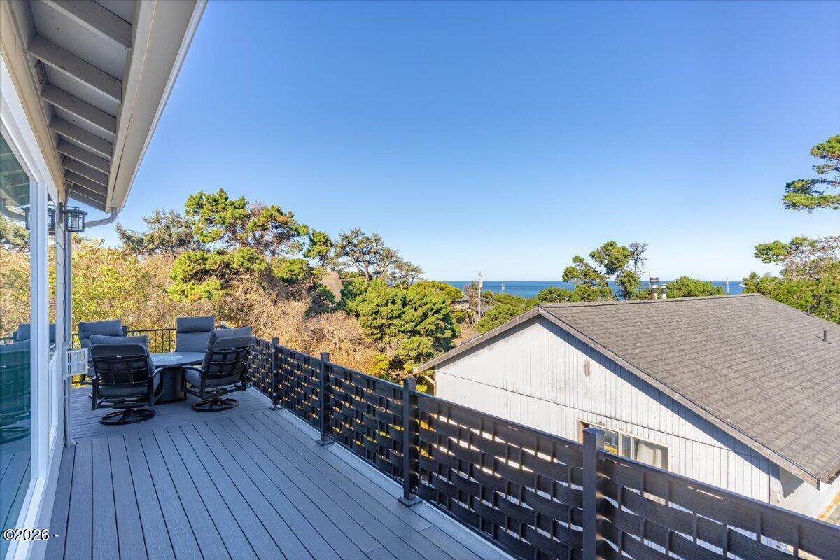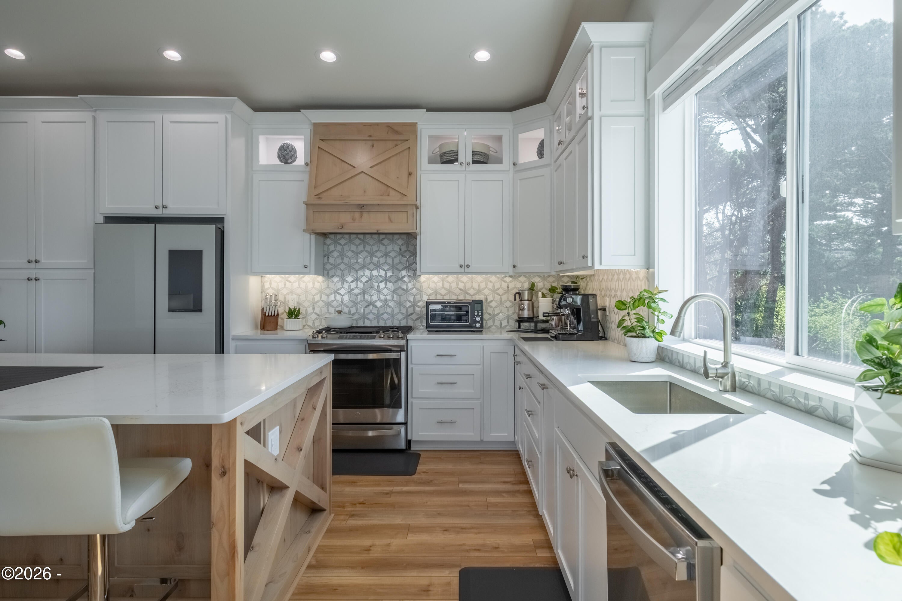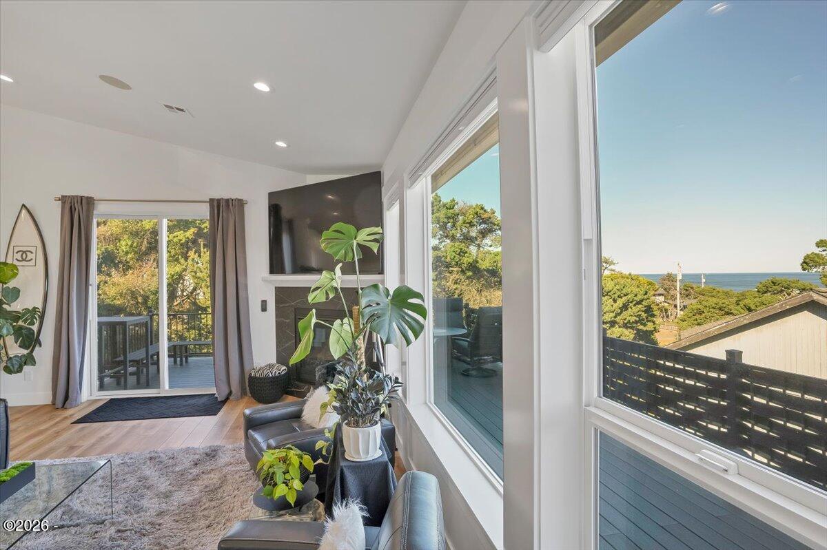 Luxury that inspires in the coveted Roads End neighborhood, where thoughtful design meets elevated coastal living. This stunning 2,636 sq ft modern home welcomes you with an open-concept main level crafted for both everyday comfort and refined entertaining. The chefs kitchen is a true centerpiece, featuring quartz countertops, a custom island, premium appliances, and a gas range, all seamlessly connected to a light-filled open living space with soaring ceilings, designer finishes, and a dramatic statement fireplace. The primary suite offers a private retreat, complete with a custom walk-in closet and a spa-inspired bath showcasing a steam shower. A second bedroom and spacious laundry room on the main level provide convenience and flexibility. Downstairs, the home continues to impress with a guest-ready en suite, kitchenette, and expansive flex space ideal for multi-generational living, extended stays, or entertaining. Even a doggie outlet space. Step outside to experience exceptional outdoor living with two oversized decks designed for gathering and relaxing, a fenced yard with a fire pit, and a lower covered patio for year-round enjoyment. Immerse yourself in the sights and sounds of the coastenjoy views of active ocean waves, breathe in the fresh salt air, and take in magnificent sunsets that paint the sky each evening, all complemented by the iconic silhouette of Gods Thumb. With beach access just steps away, this home captures the essence of coastal luxury living. Ideally located near renowned coastal restaurants, charming shabby chic boutiques, the Lincoln City Outlets, and Chinook Winds Casino offering not just gaming but a variety of entertainment this home blends luxury with the best of coastal lifestyle and convenience.