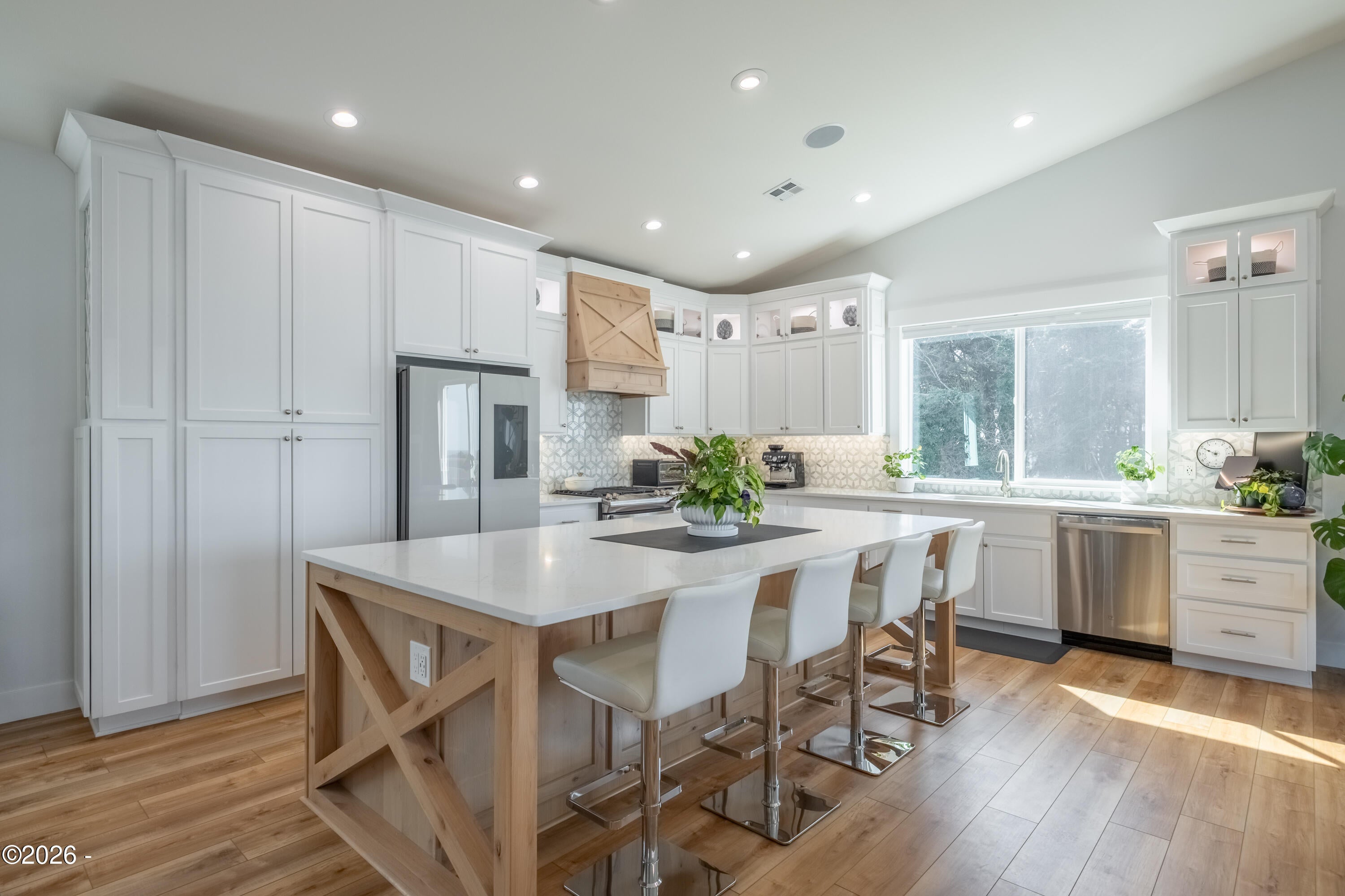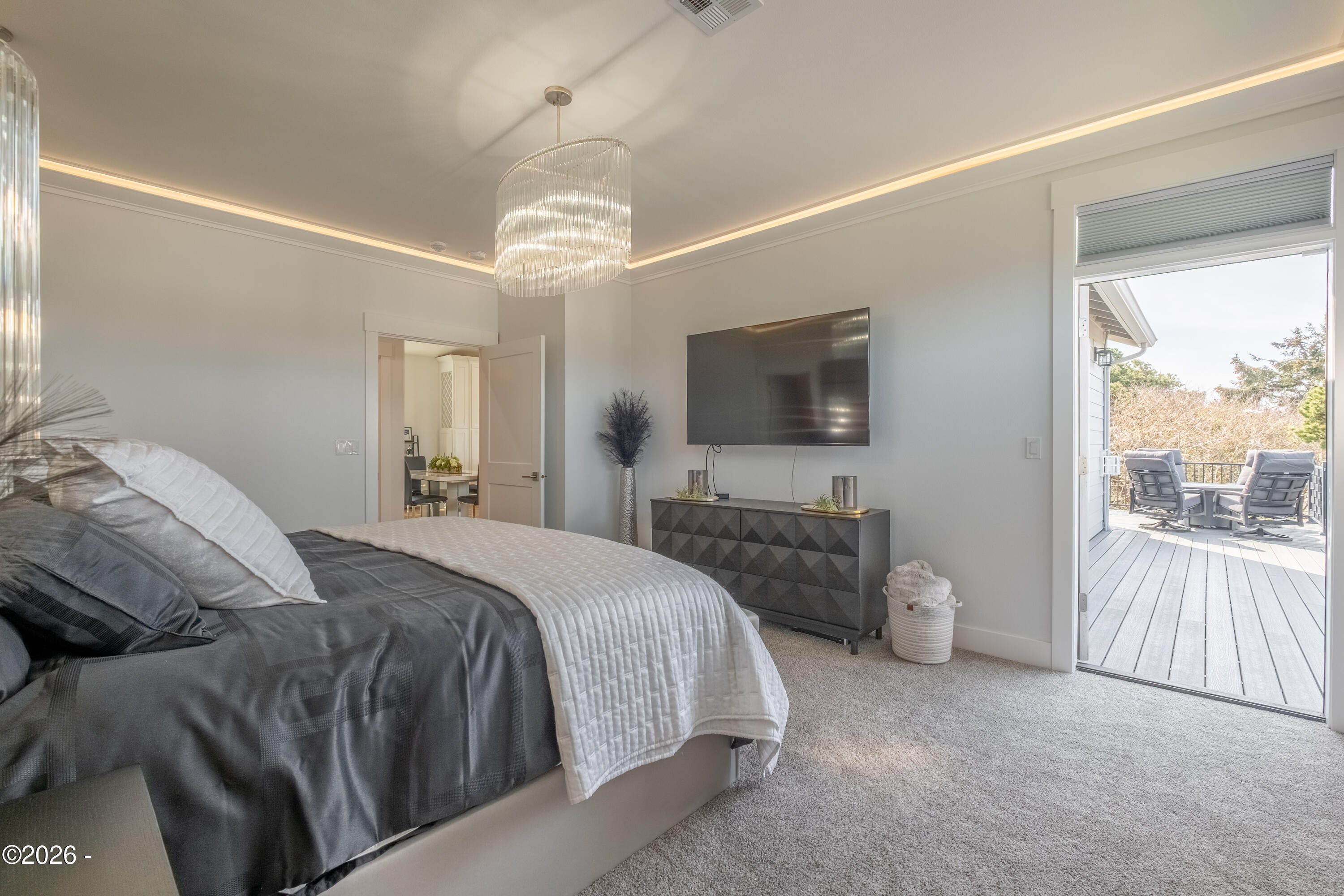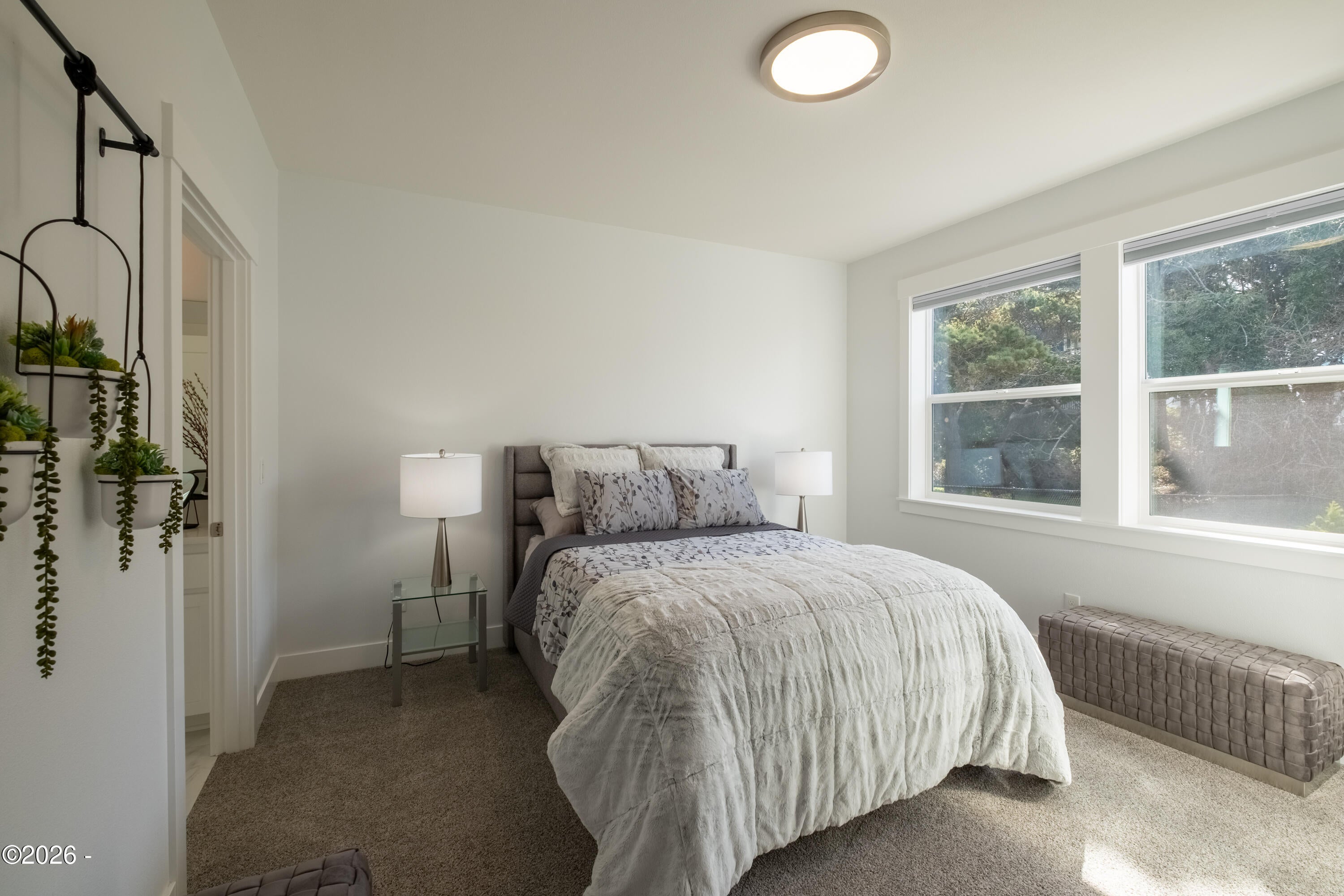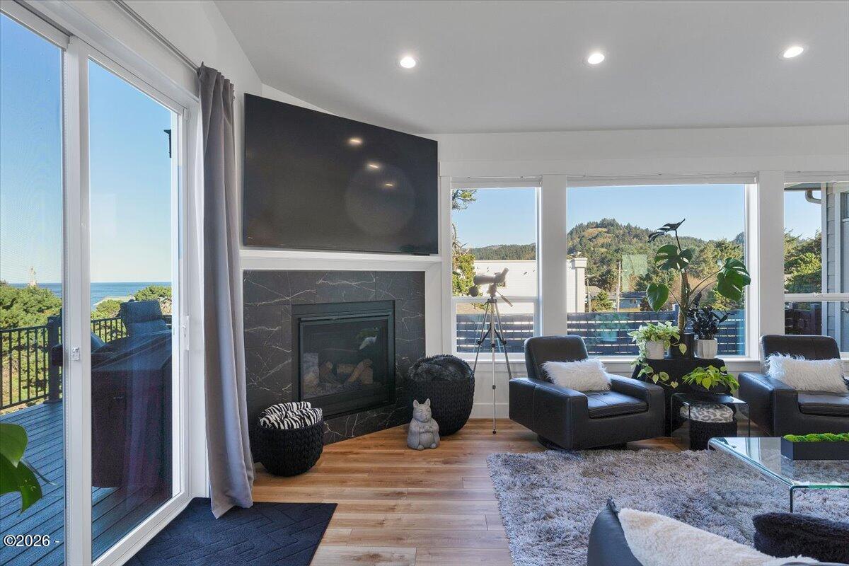 Luxury that inspires in the coveted Roads End neighborhood, where thoughtful design meets elevated coastal living. This stunning 2,636 sq ft modern home welcomes you with an open-concept main level crafted for both everyday comfort and refined entertaining. The chefs kitchen is a true centerpiece, featuring quartz countertops, a custom island, premium appliances, and a gas range, all seamlessly connected to a light-filled open living space with soaring ceilings, designer finishes, and a dramatic statement fireplace. The primary suite offers a private retreat, complete with a custom walk-in closet and a spa-inspired bath showcasing a steam shower. A second bedroom and spacious laundry room on the main level provide convenience and flexibility. Downstairs, the home continues to impress with a guest-ready en suite, kitchenette, and expansive flex space ideal for multi-generational living, extended stays, or entertaining. Even a doggie outlet space. Step outside to experience exceptional outdoor living with two oversized decks designed for gathering and relaxing, a fenced yard with a fire pit, and a lower covered patio for year-round enjoyment. Immerse yourself in the sights and sounds of the coastenjoy views of active ocean waves, breathe in the fresh salt air, and take in magnificent sunsets that paint the sky each evening, all complemented by the iconic silhouette of Gods Thumb. With beach access just steps away, this home captures the essence of coastal luxury living. Ideally located near renowned coastal restaurants, charming shabby chic boutiques, the Lincoln City Outlets, and Chinook Winds Casino offering not just gaming but a variety of entertainment this home blends luxury with the best of coastal lifestyle and convenience.