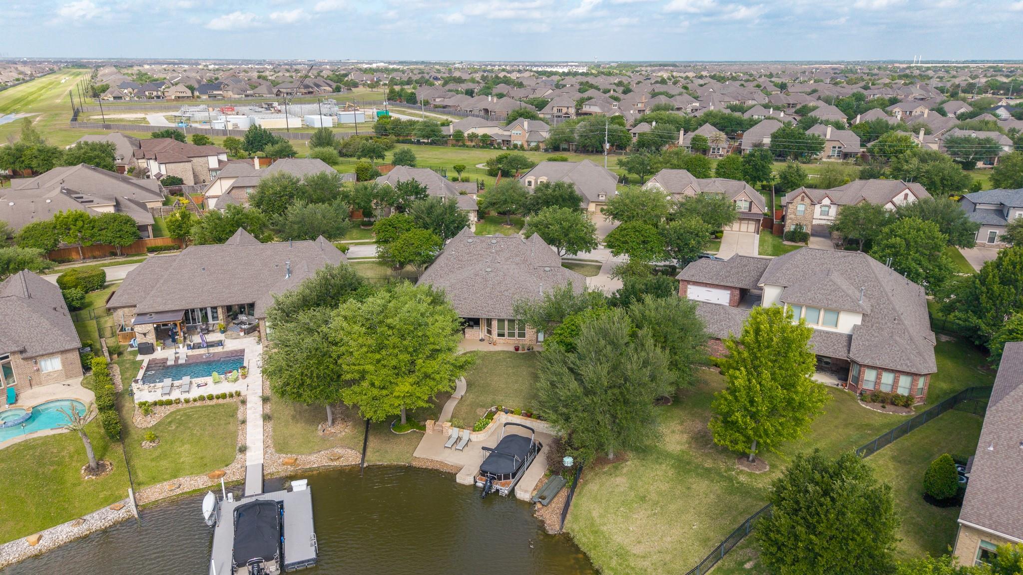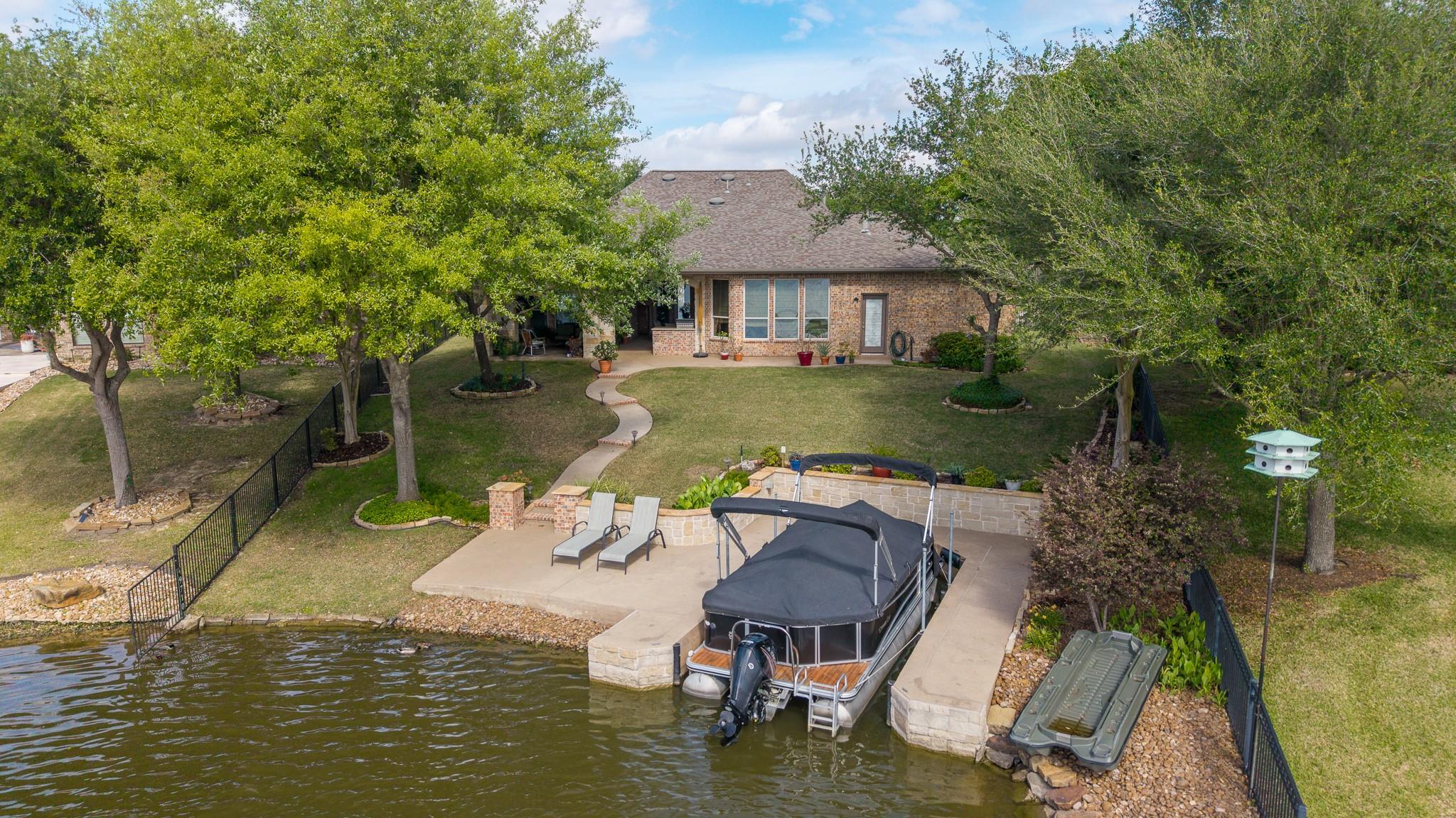 Rare one-story waterfront home in the highly sought-after master planned community of Towne Lake! This 4-bedroom, 3.5-bath home with a 3-car garage offers an incredible open-concept layout with a desirable split floor plan, providing both privacy & functionality. Features include a dedicated dining room & a private home office, perfect for todays lifestyle. Enjoy stunning lake views from the main living areas, with the home ideally positioned to capture afternoon and evening shade. The expansive covered backyard patio is an entertainers dream, complete with an outdoor kitchen & cozy fireplace. A private cut-in boat slip adds to the waterfront lifestyle where you can boat right out your backyard. Additional highlights include a recently replaced roof (2021), dishwasher (2025) & low tax rate. This is a rare opportunity to own a beautifully designed waterfront home in one of the areas premier communities!