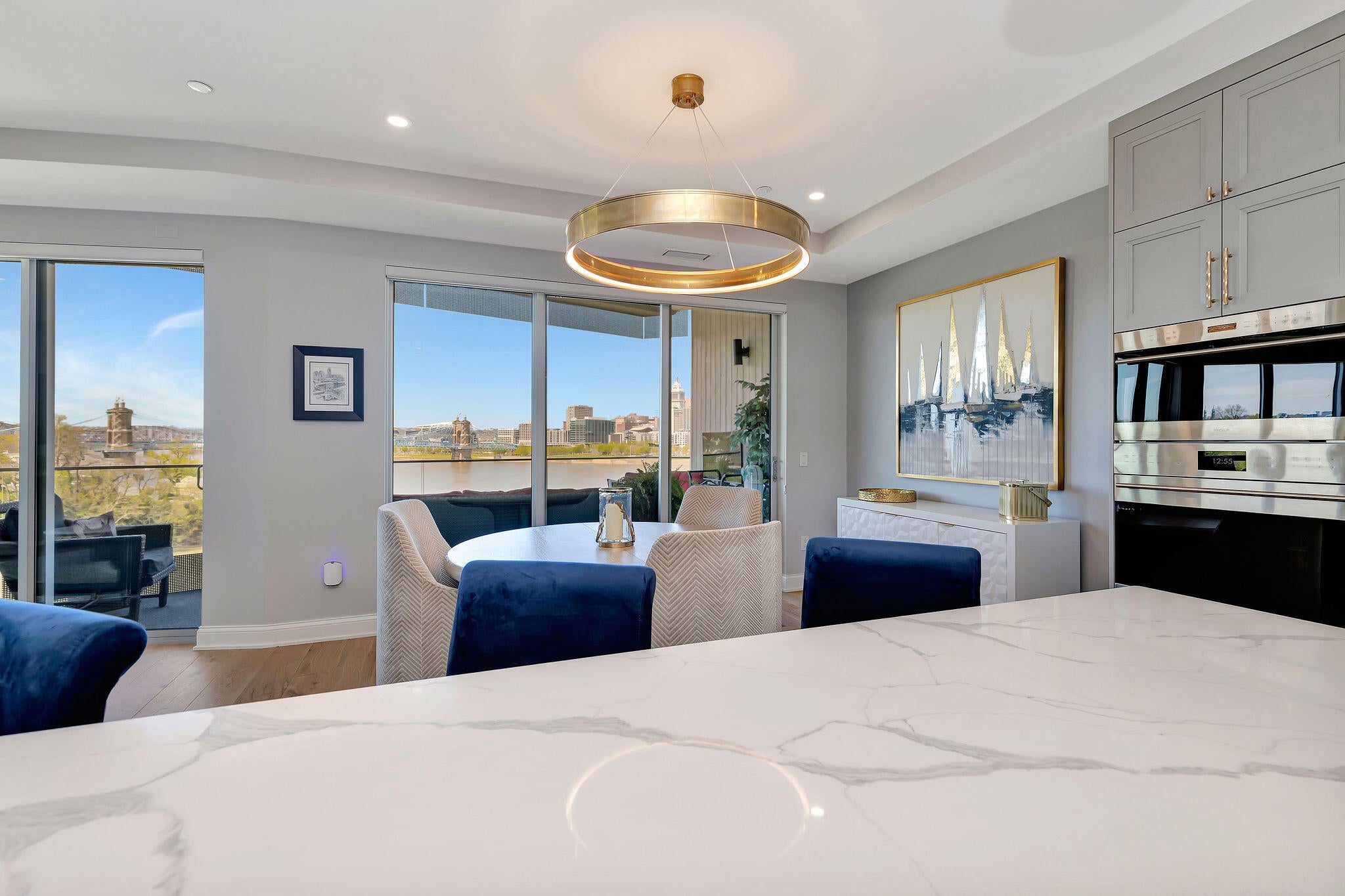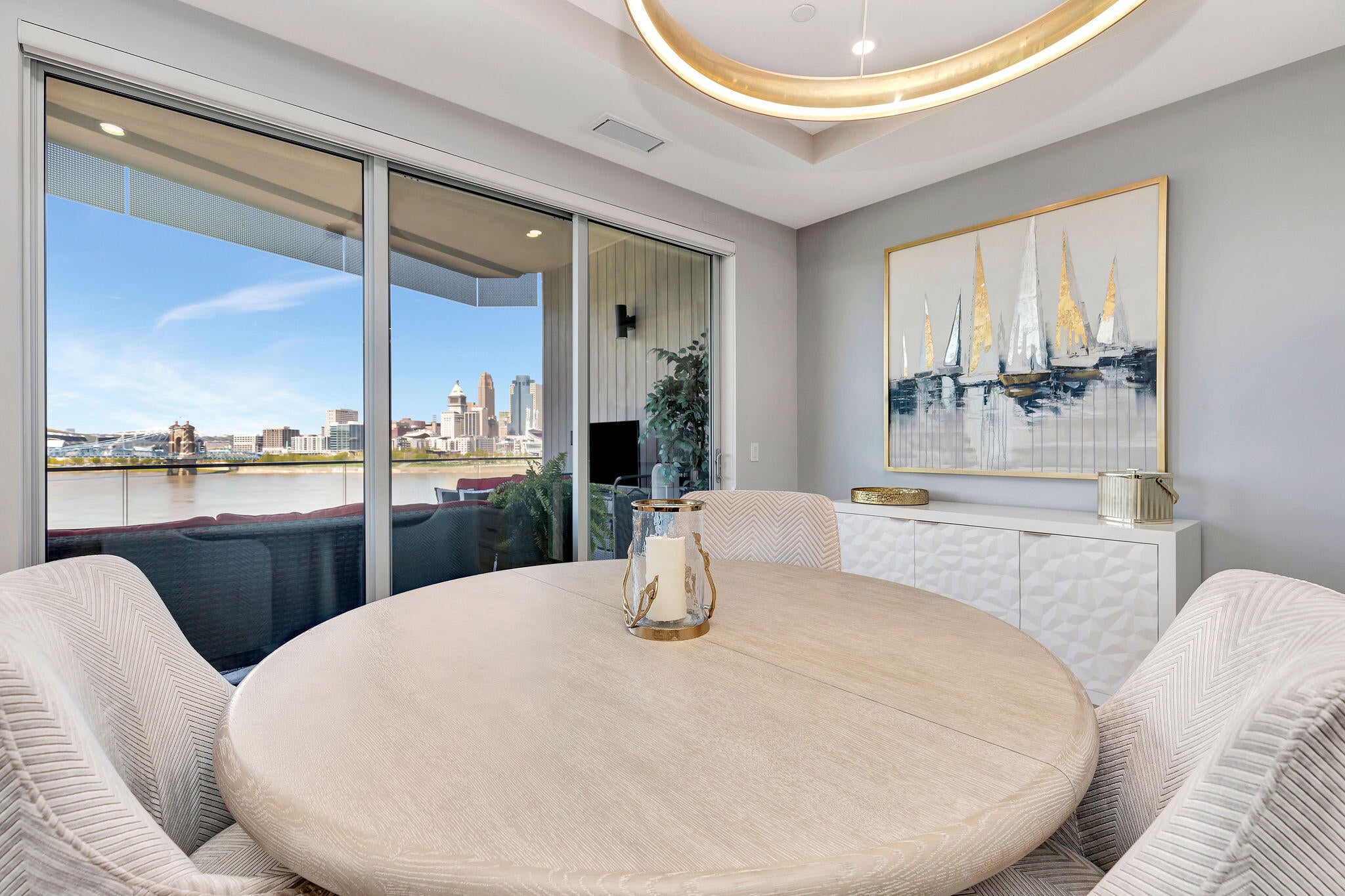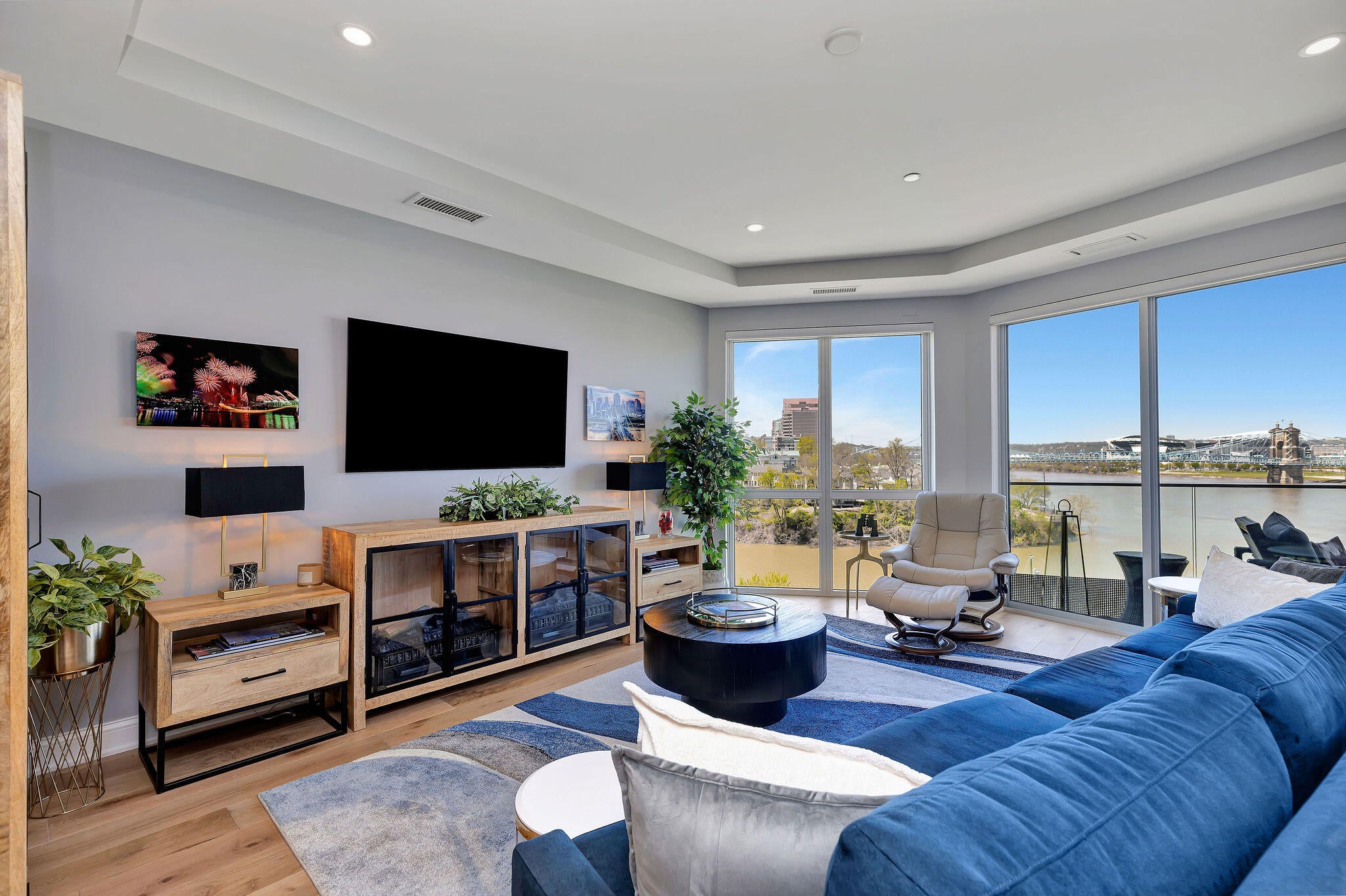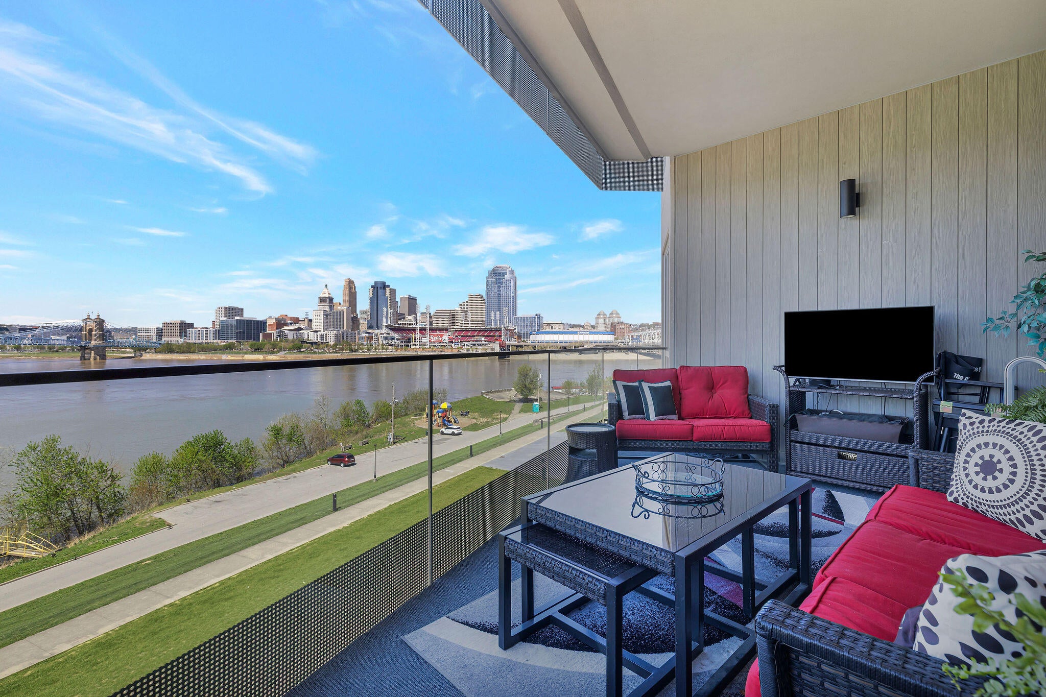 What does it feel like to live above it all, where the skyline, the river, and the energy of the city become part of your everyday backdrop? At 600 Ovation Way, the answer is immediate. From the moment you enter, your attention is drawn outward, walls of glass framing uninterrupted, panoramic views of the Cincinnati skyline, the Ohio River, the stadium lights & beyond. Its a perspective few ever experience, and one that never loses its impact. Entertaining here? Effortless. The open-concept design is both refined and inviting, anchored by a chef-caliber kitchen appointed with Wolf appliances and elevated finishes. Every space flows with intention, allowing the view to remain the focal point while still delivering warmth and livability. And then theres the balcony, your private extension of the living space. Elevated above the riverfront, it offers a vantage point that transforms both quiet evenings and lively gatherings into something unforgettable. Craving simplicity without sacrificing sophistication? This residence delivers true single-level living, with a generously scaled primary suite, spa-inspired bath, and a second bedroom that adapts seamlessly for guests or a polished home office. Every finish has been thoughtfully selected and elevated beyond standard selections - youll appreciate the numerous upgrades. The result: a home that feels curated, not replicated. Privacy and convenience are seamlessly integrated, with secure garage parking and private elevator access delivering you directly into your residence, no compromises, no interruptions. Set within the Boardwalk Residences at Ovation, one of the regions most exclusive waterfront addresses, you are steps from dining, entertainment, and the evolving riverfront scene, yet positioned in a way that feels distinctly elevated and private. This is more than a residence. Its a perspective. A level of living. A place where the view becomes part of who you are. Lets take a tour.