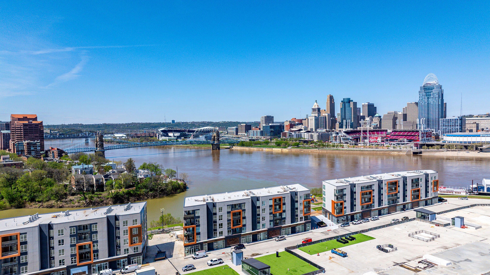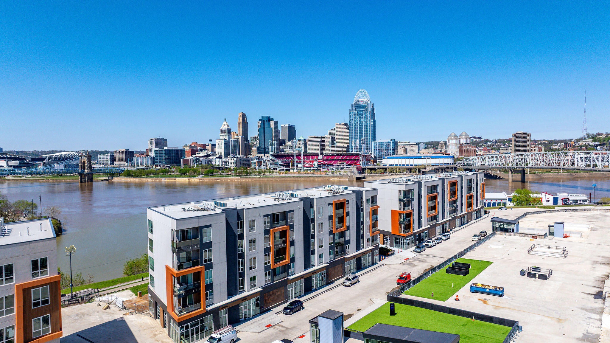 What does it feel like to live above it all, where the skyline, the river, and the energy of the city become part of your everyday backdrop? At 600 Ovation Way, the answer is immediate. From the moment you enter, your attention is drawn outward, walls of glass framing uninterrupted, panoramic views of the Cincinnati skyline, the Ohio River, the stadium lights & beyond.