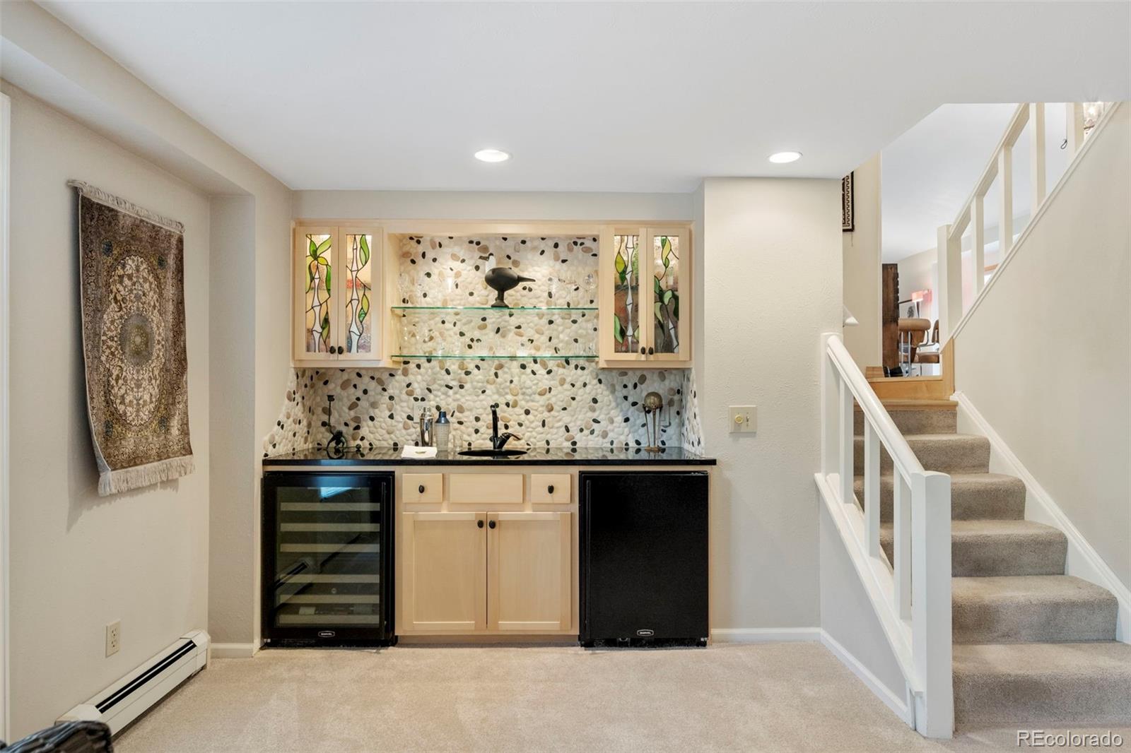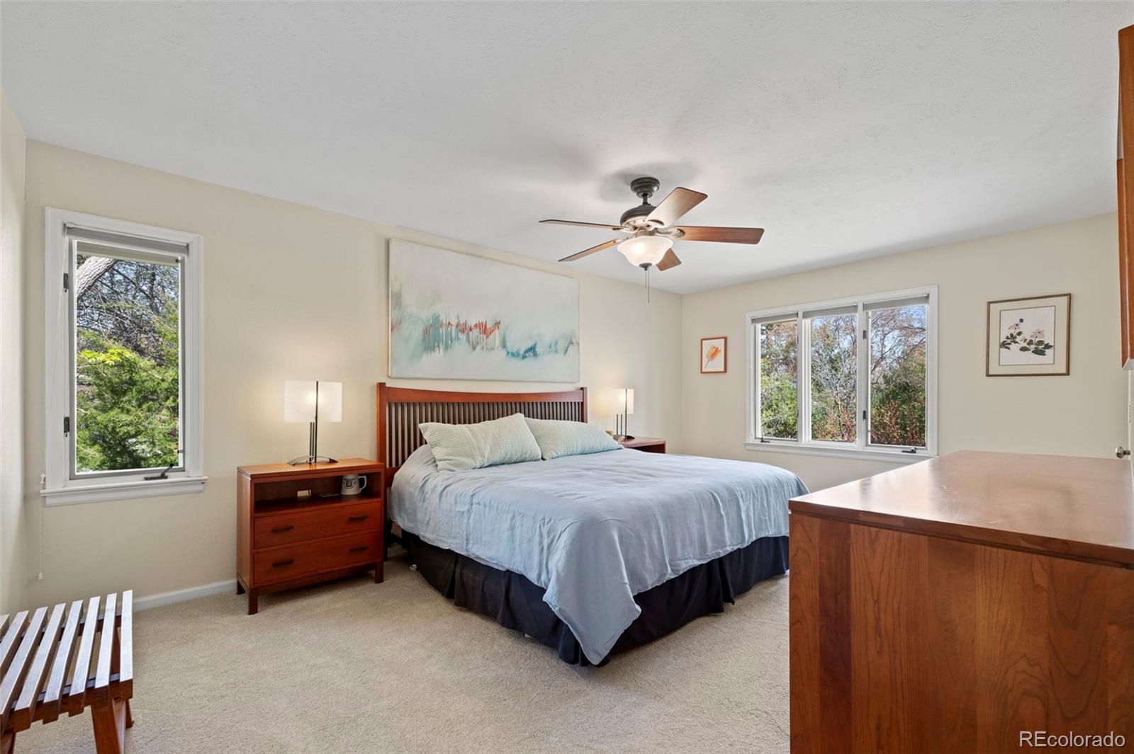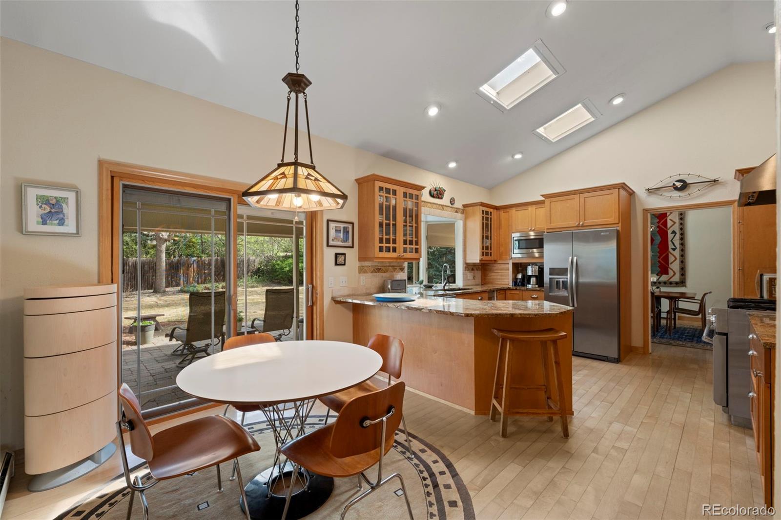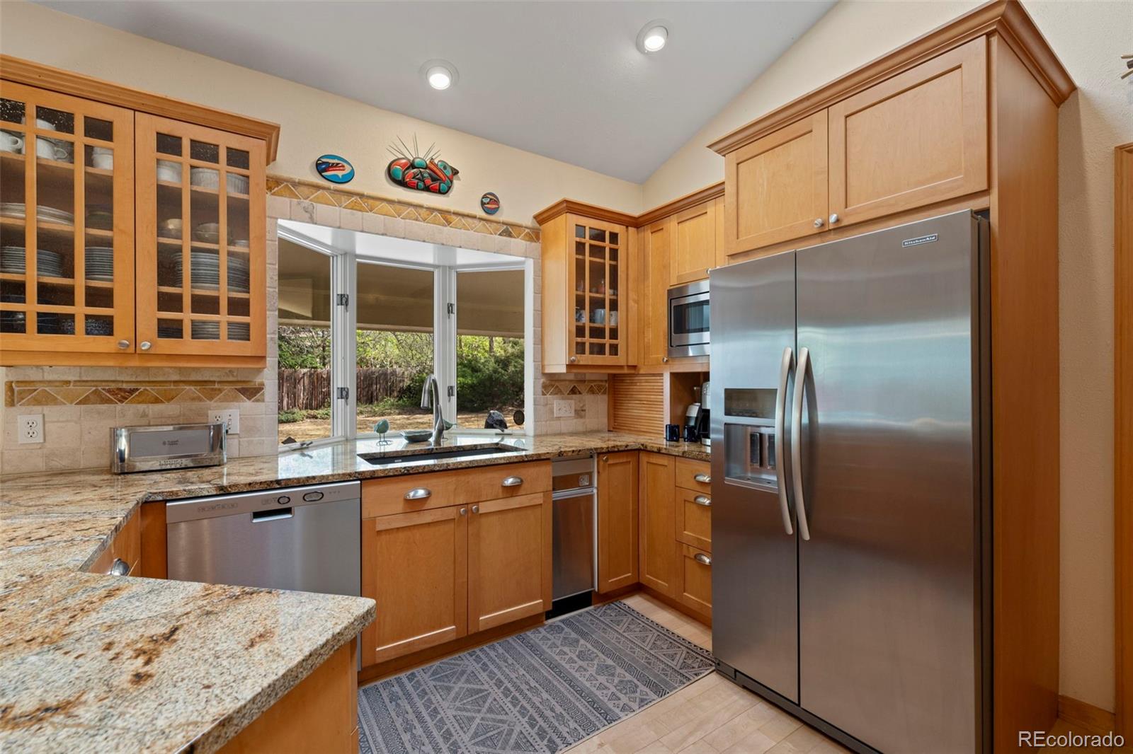 Set at the end of a secluded cul-de-sac on a beautifully landscaped .42 ACRE lot, this spacious split-level home offers privacy, mature trees, and a gorgeous backyard with a peaceful, park-like setting. Inside, a bright and welcoming living room with vaulted ceilings creates an airy first impression and flows seamlessly into the dining area-perfect for both everyday living and entertaining. The eat-in kitchen is thoughtfully appointed with maple cabinetry, slab granite countertops, and stainless appliances, including a 36 Thermador Pro gas range w/ griddle & warming trays. A cozy breakfast nook overlooks the backyard. The upper level features 3 generously sized bedrooms, including a comfortable primary suite with walk-in shower and dual vanity. Two additional bedrooms share a full bath. On the lower level, a warm and inviting family room features a brick fireplace and is complemented by a custom wet bar with stylish backsplash, and beverage & wine fridges-an ideal space for relaxing or hosting. This level also includes a 4th bedroom with an adjacent bath, perfect for guests or multi-generational living, as well as a private office or optional fifth bedroom. The finished basement expands the homes versatility, offering flexible space with built-in shelving for a media room, game room, home gym, or creative studio. Outdoors, enjoy a covered patio, a tranquil water feature, and an expansive backyard with plenty of room for recreation, pets, or quiet enjoyment. Conveniently located near Gunbarrels trails, dining, shopping, and breweries, and just minutes from Boulder Country Club, this home combines space, setting, and accessibility in one of Boulder Countys most established communities. Choose between Boulder and Fairview High School.