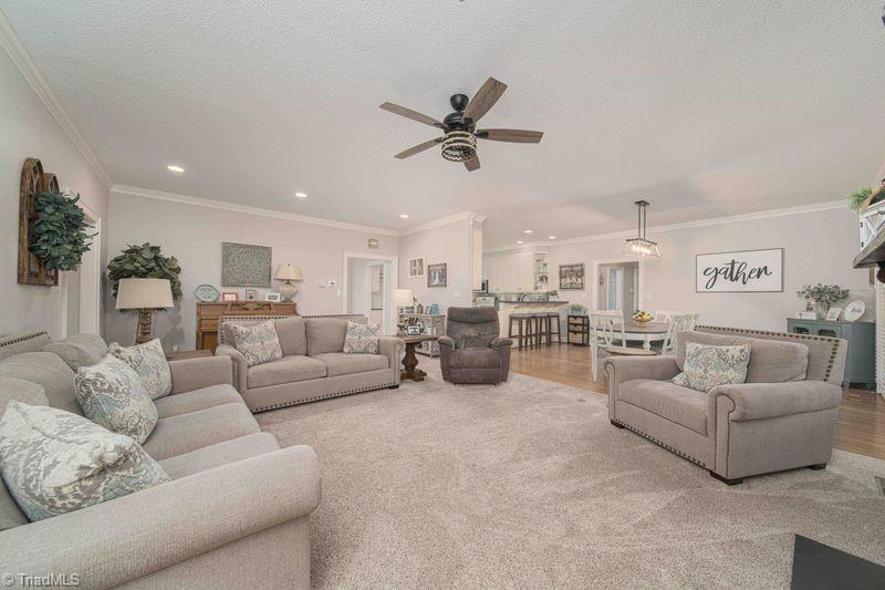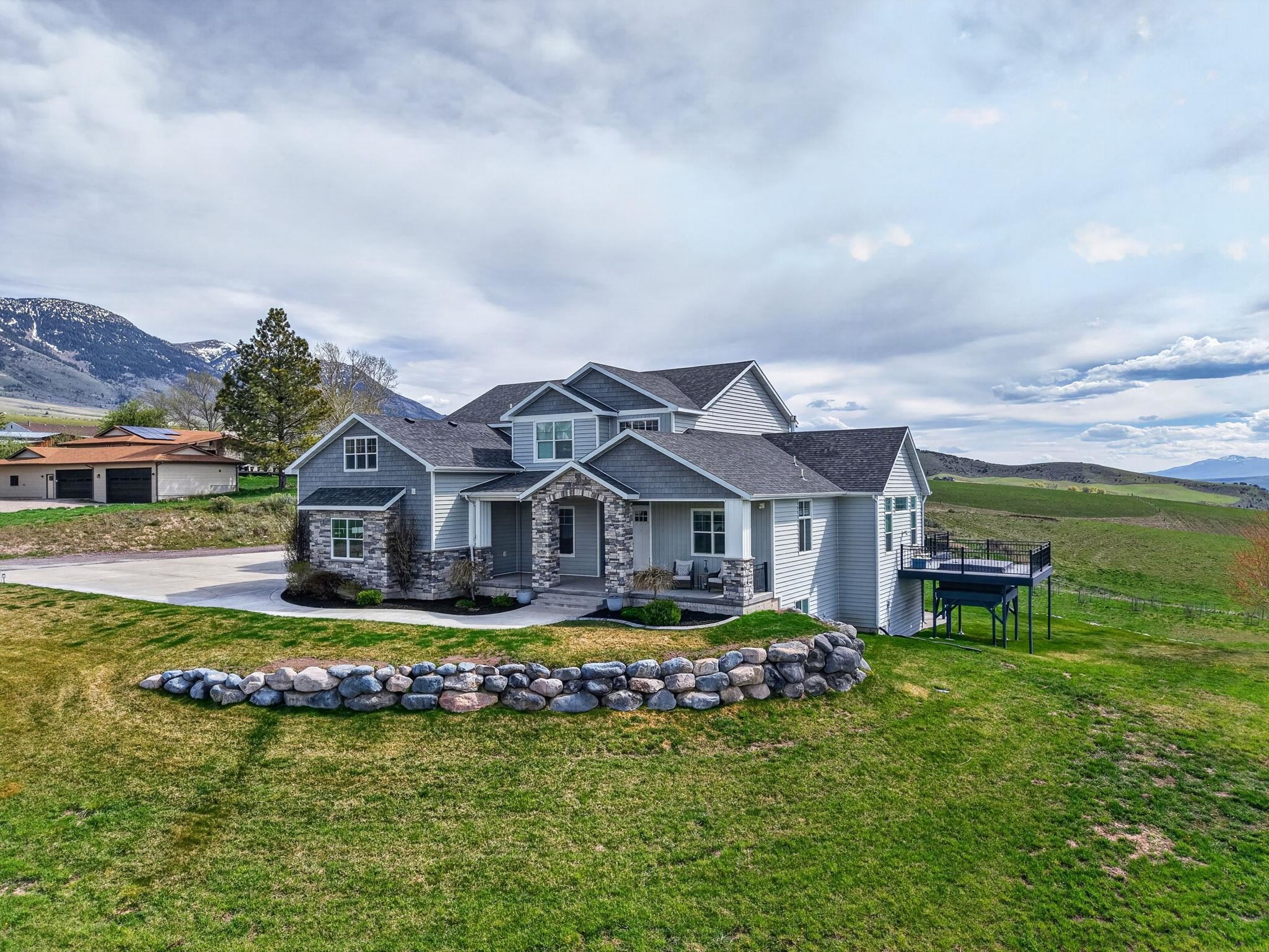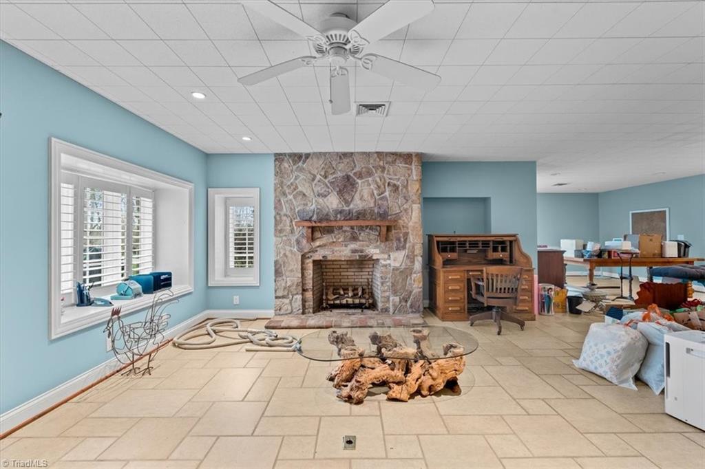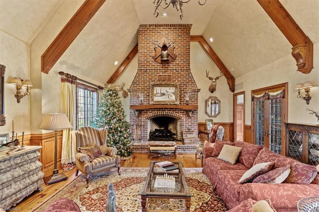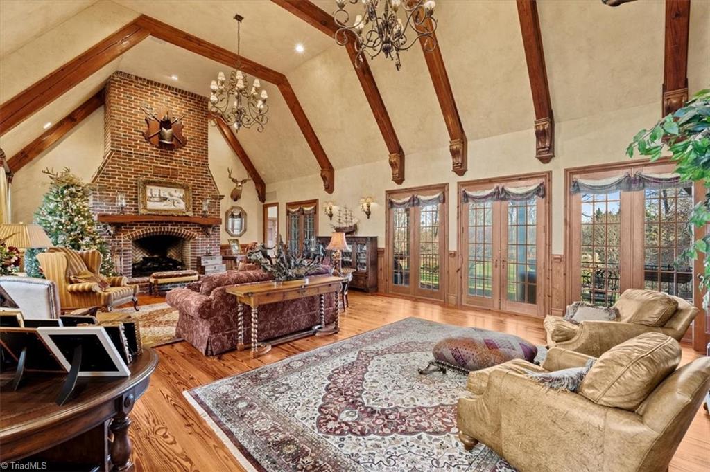FRENCH COUNTRY CUSTOM HOME.. 8,400 sq ft estate set on 24.26 acres offering space, privacy, and endless possibilities. This unique property features a massive 37x22 living room with fireplace plus a separate family room with its own fireplace, creating multiple inviting living areas.
