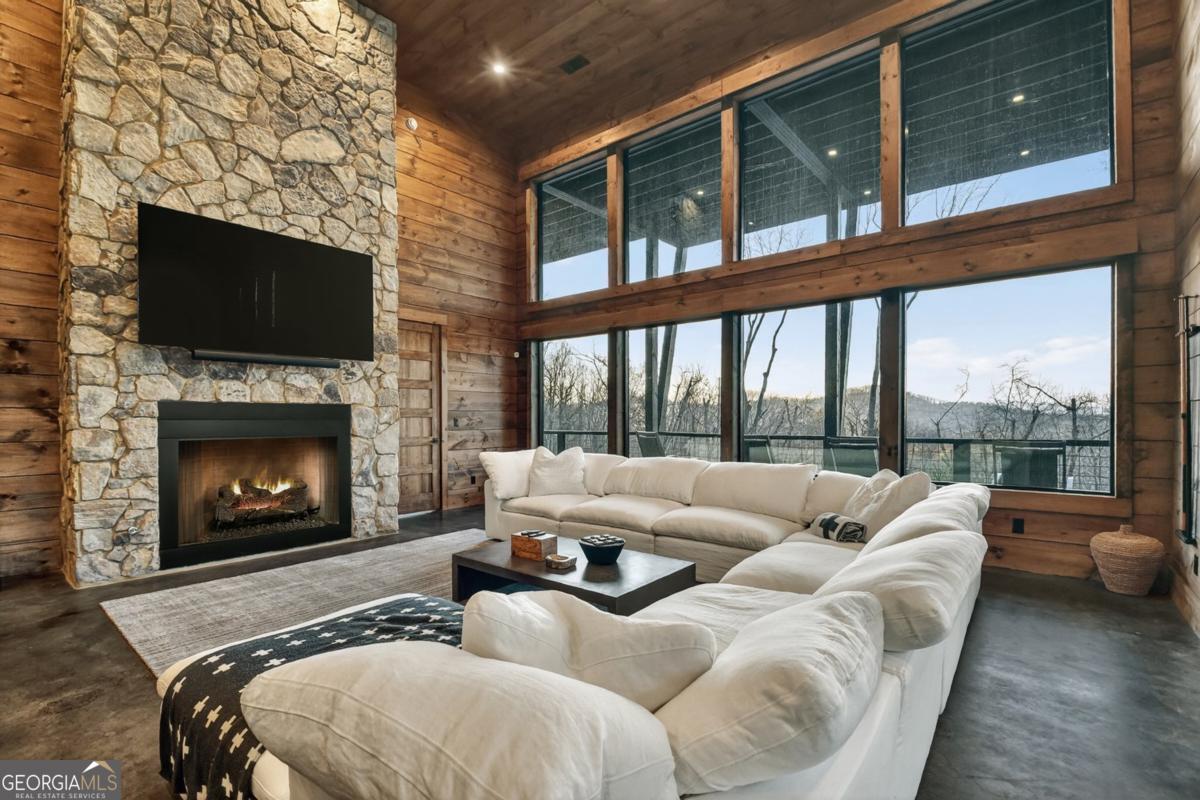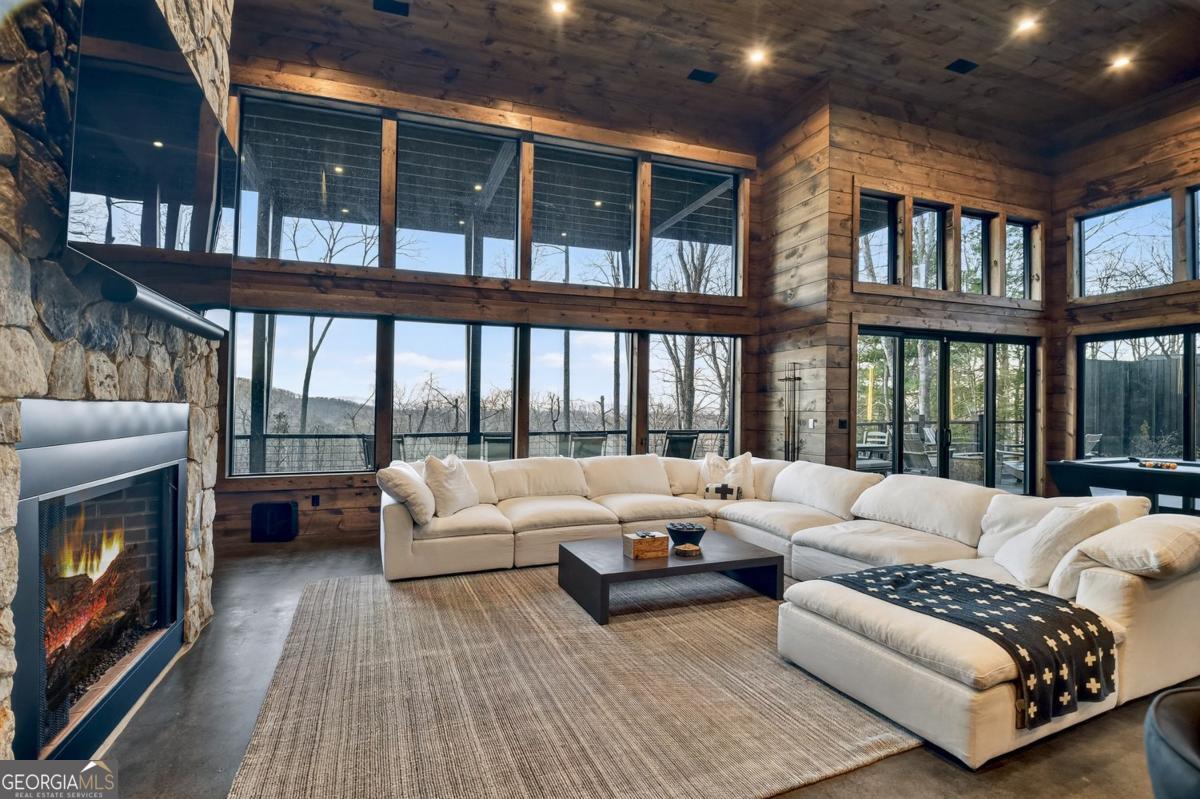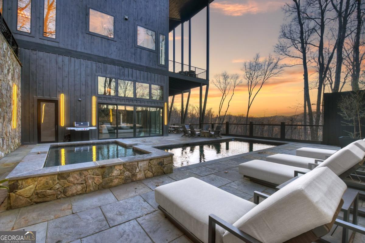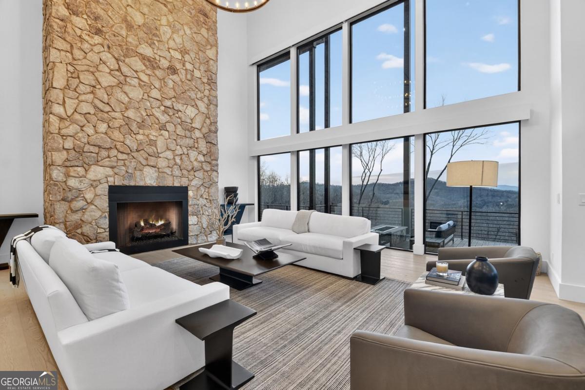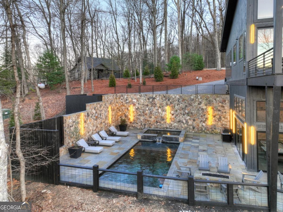 Lake View, Modern Marvel, Aska Adventure Area.. The definition of luxury mountain living. Framed by layered mountain and lake vistas, this extraordinary retreat pairs newly & professionally designed landscaping with resort-style amenities to create a true private sanctuary. Expansive walls of glass flood the home with natural light while showcasing the surrounding scenery. The thoughtfully designed open layout and soaring ceilings blend refined modern finishes with warm rustic character. Five private bedroom suites provide exceptional comfort for hosting large groups or enjoying everyday living with space for everyone. Perfectly positioned just minutes from Downtown Blue Ridge, Lake Blue Ridge, and the Toccoa River-and even closer to premier hiking and biking trails such as Flat Branch Loop-the location offers both convenience and adventure. Features include dramatic stone fireplaces, a chefs kitchen with oversized island and generous dining area, and a fully finished terrace-level lounge with bar and billiards space. Sliding glass doors lead to a slate patio complete with fire pit and the spa-like pool and hot tub overlooking the mountains. Offered turn key with tasteful furnishings & decor...and curated with meticulous attention to detail, this one-of-a-kind mountain lodge delivers an unmatched living experience in gated community. Comfortable full time living, much needed vacation getaway...or excellent short term rental potential...Schedule your private tour today and discover a new standard of mountain luxury.