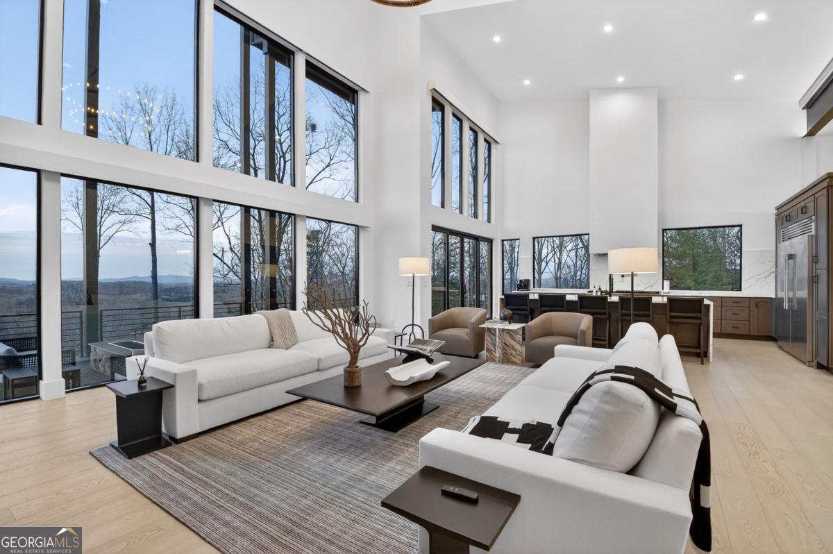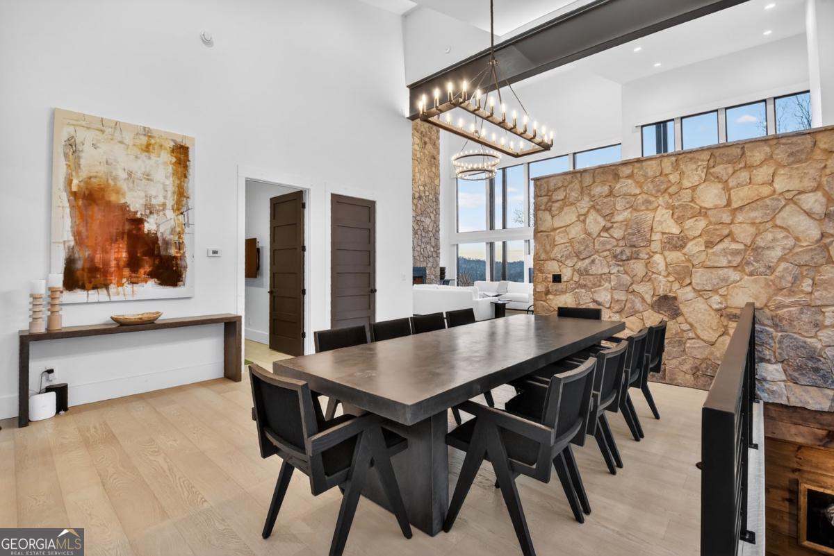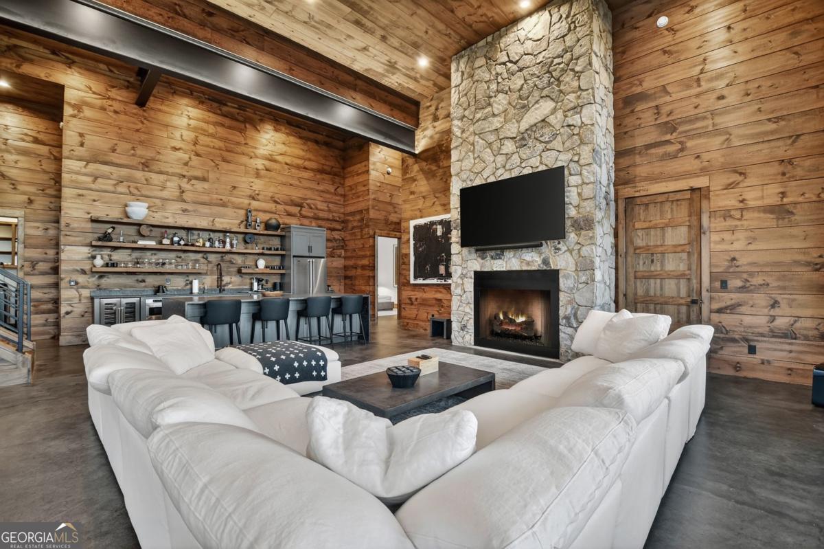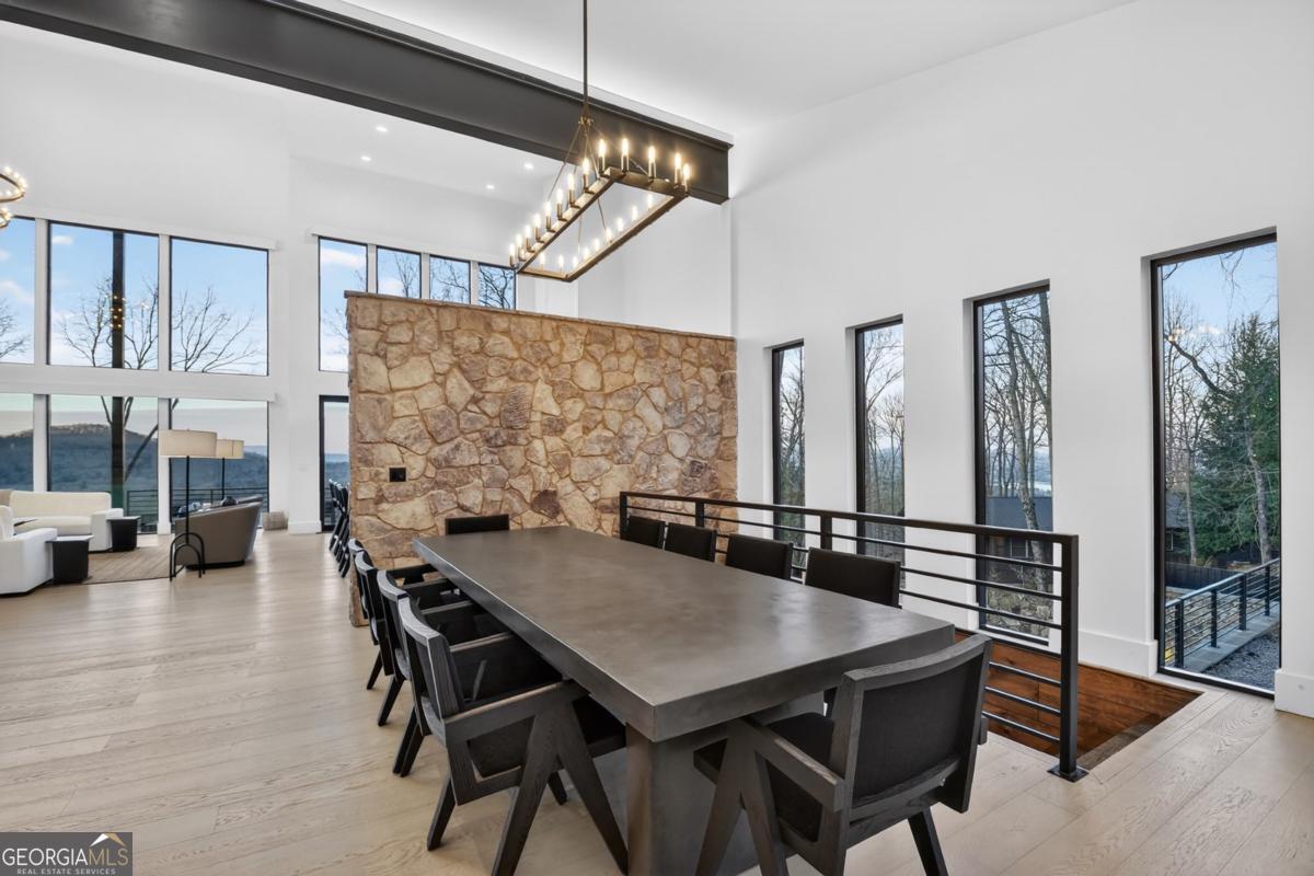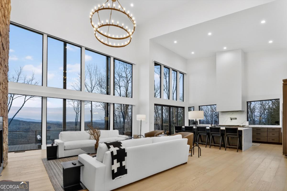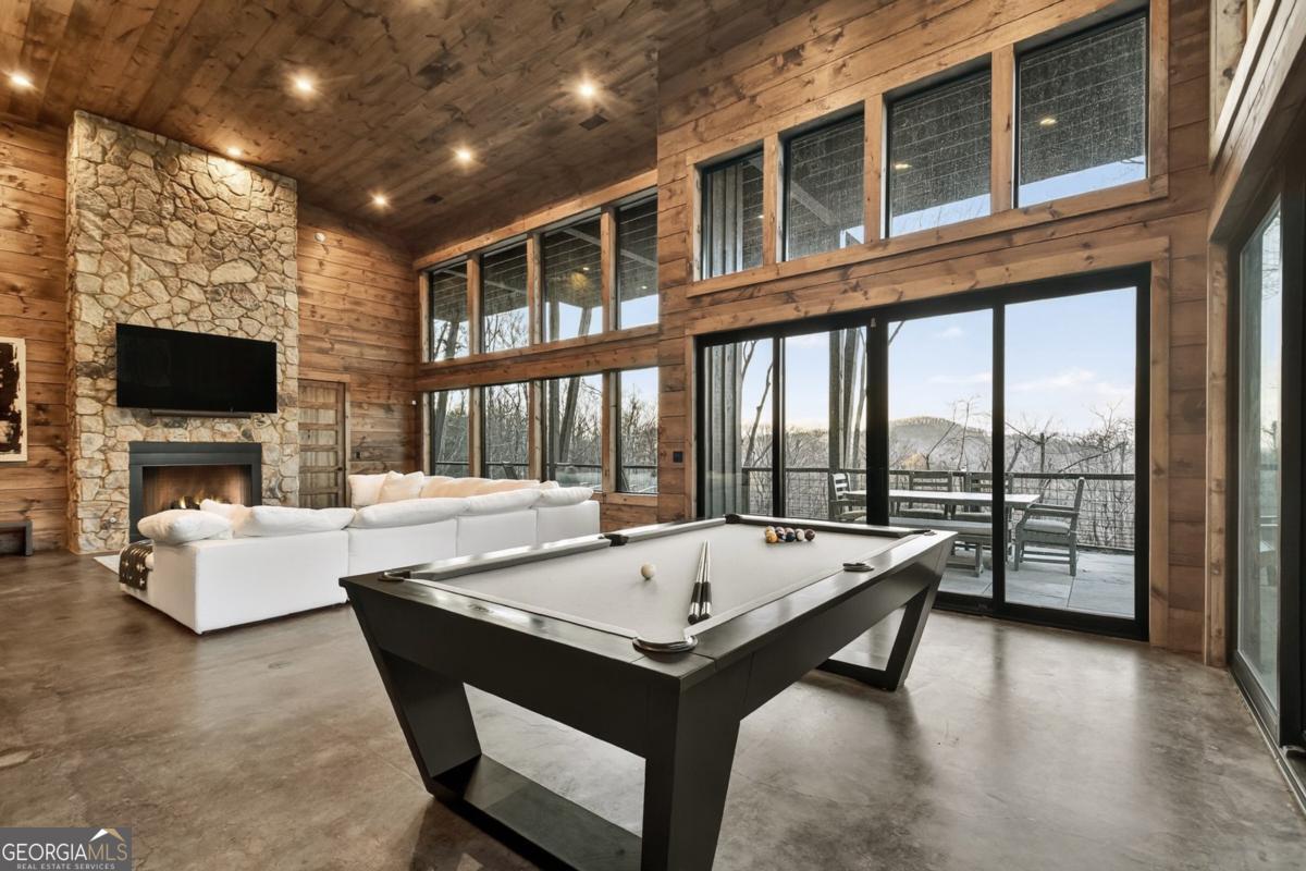 Lake View, Modern Marvel, Aska Adventure Area.. The definition of luxury mountain living. Framed by layered mountain and lake vistas, this extraordinary retreat pairs newly & professionally designed landscaping with resort-style amenities to create a true private sanctuary. Expansive walls of glass flood the home with natural light while showcasing the surrounding scenery. The thoughtfully designed open layout and soaring ceilings blend refined modern finishes with warm rustic character. Five private bedroom suites provide exceptional comfort for hosting large groups or enjoying everyday living with space for everyone. Perfectly positioned just minutes from Downtown Blue Ridge, Lake Blue Ridge, and the Toccoa River-and even closer to premier hiking and biking trails such as Flat Branch Loop-the location offers both convenience and adventure. Features include dramatic stone fireplaces, a chefs kitchen with oversized island and generous dining area, and a fully finished terrace-level lounge with bar and billiards space. Sliding glass doors lead to a slate patio complete with fire pit and the spa-like pool and hot tub overlooking the mountains. Offered turn key with tasteful furnishings & decor...and curated with meticulous attention to detail, this one-of-a-kind mountain lodge delivers an unmatched living experience in gated community. Comfortable full time living, much needed vacation getaway...or excellent short term rental potential...Schedule your private tour today and discover a new standard of mountain luxury.