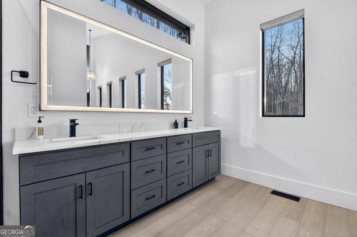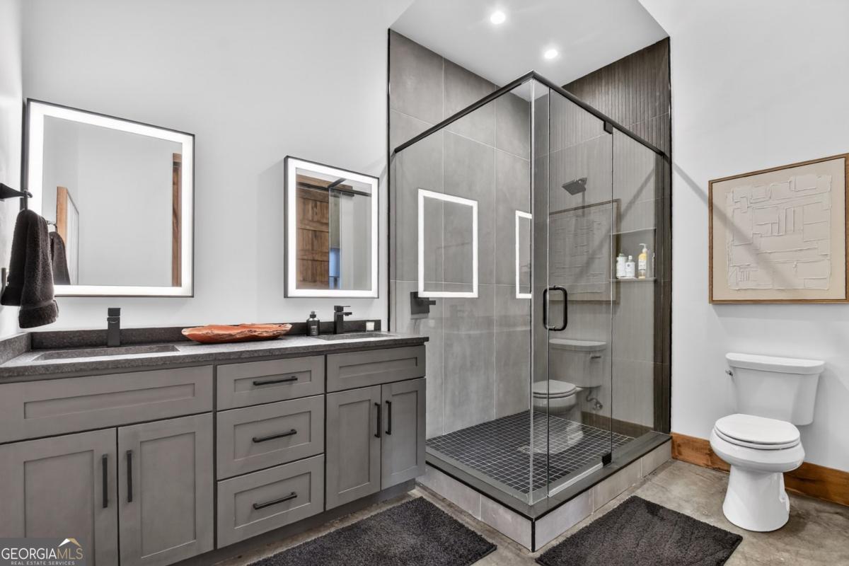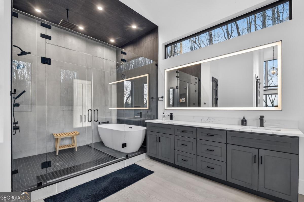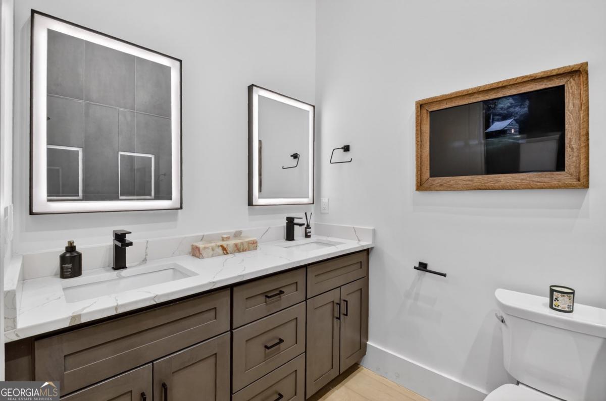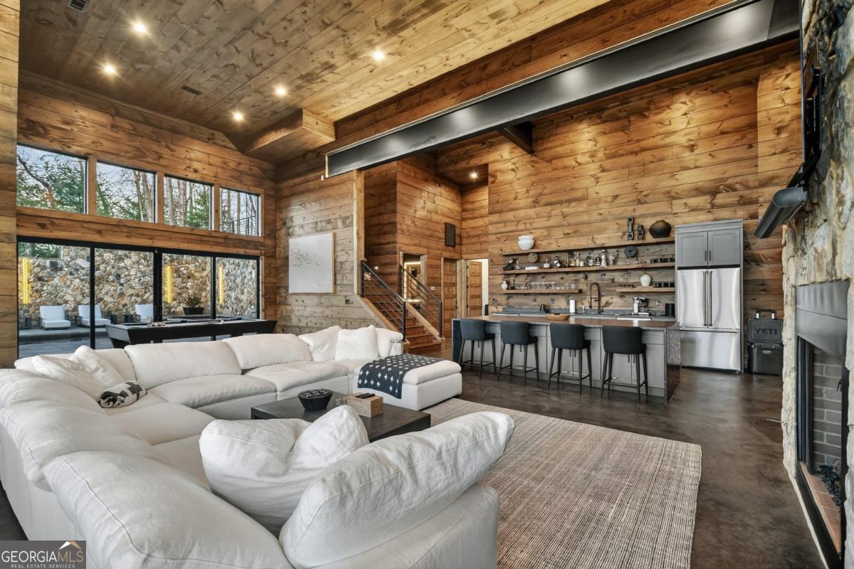 Lake View, Modern Marvel, Aska Adventure Area.. The definition of luxury mountain living. Framed by layered mountain and lake vistas, this extraordinary retreat pairs newly & professionally designed landscaping with resort-style amenities to create a true private sanctuary. Expansive walls of glass flood the home with natural light while showcasing the surrounding scenery. The thoughtfully designed open layout and soaring ceilings blend refined modern finishes with warm rustic character. Five private bedroom suites provide exceptional comfort for hosting large groups or enjoying everyday living with space for everyone. Perfectly positioned just minutes from Downtown Blue Ridge, Lake Blue Ridge, and the Toccoa River-and even closer to premier hiking and biking trails such as Flat Branch Loop-the location offers both convenience and adventure. Features include dramatic stone fireplaces, a chefs kitchen with oversized island and generous dining area, and a fully finished terrace-level lounge with bar and billiards space. Sliding glass doors lead to a slate patio complete with fire pit and the spa-like pool and hot tub overlooking the mountains. Offered turn key with tasteful furnishings & decor...and curated with meticulous attention to detail, this one-of-a-kind mountain lodge delivers an unmatched living experience in gated community. Comfortable full time living, much needed vacation getaway...or excellent short term rental potential...Schedule your private tour today and discover a new standard of mountain luxury.