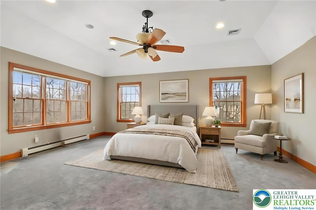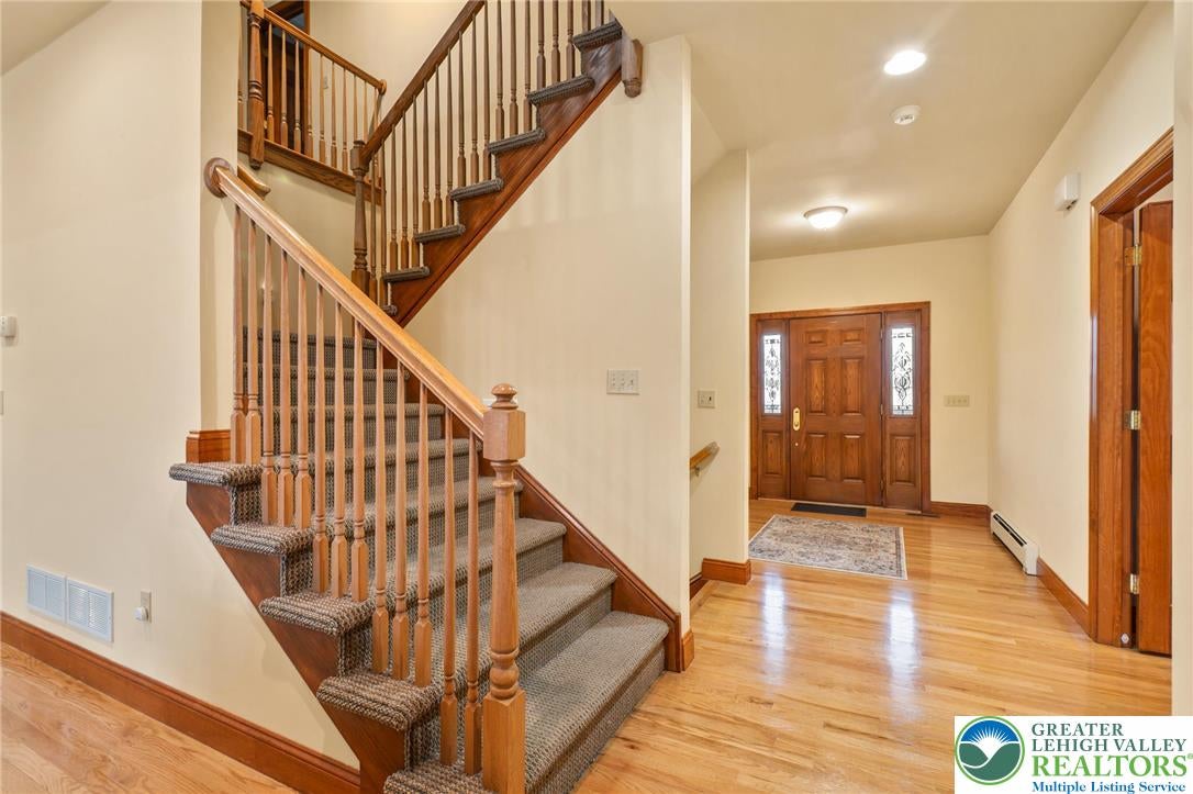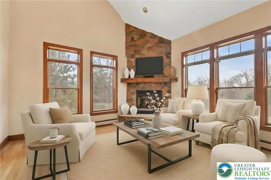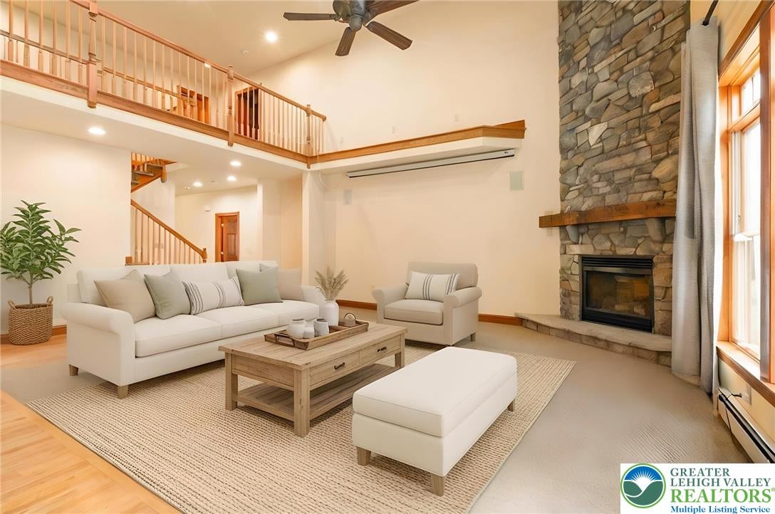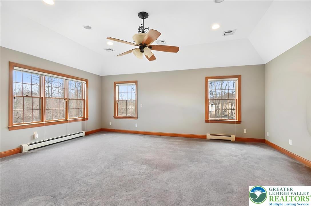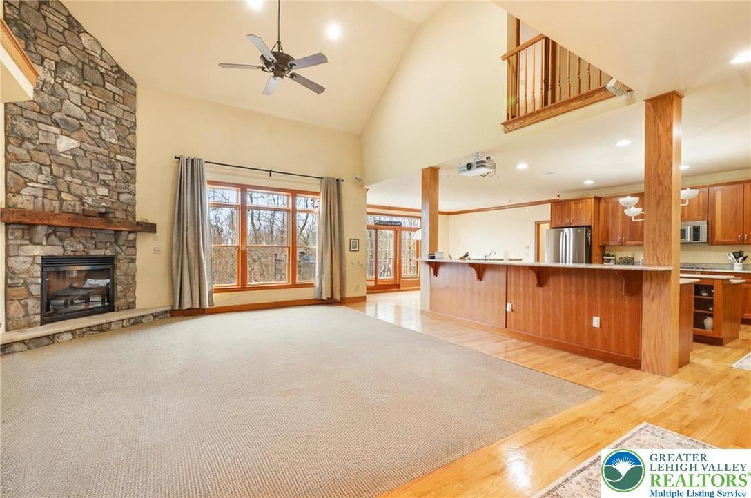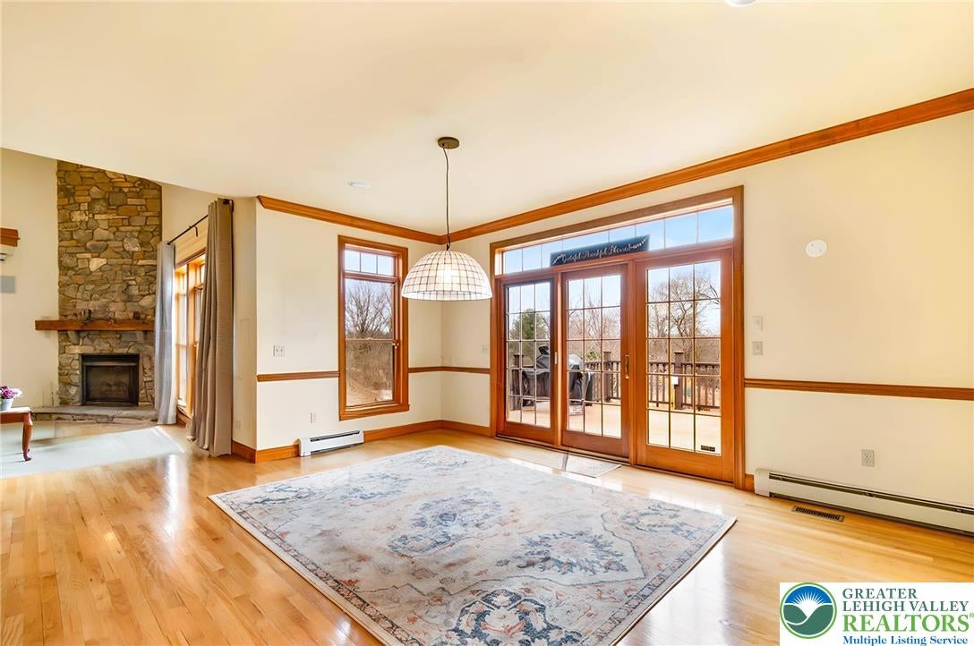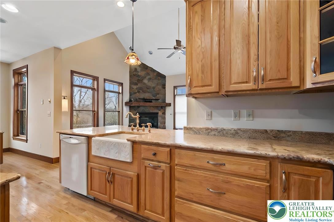 Tucked away on a quiet cul-de-sac in the highly sought-after Tuscany Hill communityan enclave of just nine distinctive homes built by award-winning Monogram Custom Homesthis exceptional property offers a rare combination of craftsmanship, flexibility, and true multigenerational living. This is one of the few homes where two families could own the home together and both feel like they have their own house. A dramatic two-story family room anchors the main home, featuring a striking floor-to-ceiling stone fireplace and walls of windows that flood the space with natural light while framing peaceful backyard views. The kitchen is both functional and inviting, offering custom cabinetry, granite countertops, a center island, and seamless connection to the breakfast area and family roomideal for both entertaining and everyday living. Just off the kitchen, a bright dining area is surrounded by windows and opens directly to the rear deck. The main level also includes a private office, a bedroom with full bath, and a spacious laundry/mudroom.Upstairs, an open loft overlooks the main living space. The primary suite is a true retreat, featuring vaulted ceilings, a private sitting area with fireplace, and abundant natural light. The spa-like bath includes dual vanities, a jetted soaking tub, tiled walk-in shower, skylights, and two walk-in closets. Additional bedrooms are generously sized, each offering excellent privacy and access to full baths.What truly sets this home apart is the fully integrated yet private in-law suiteapproximately 1,000 square feet of independent living space. Complete with its own entrance, kitchen with center island and granite countertops, living room with fireplace, bedroom suite with walk-in closet, full bath, and its own laundry, this space is ideal for multigenerational living, long-term guests, or an au pair setup. It can function entirely independently or remain connected to the main home. The full walk-out basement with 9-foot ceilings and rough-in plumbing offers endless potential for future finishing. Outdoor living is equally impressive, featuring an expansive elevated deck overlooking a beautifully designed paver patio and thoughtfully landscaped yardcreating multiple spaces to relax, entertain, and enjoy the peaceful surroundings. Located in Southern Lehigh School District with convenient access to I-78, shopping, and dining, this home offers a rare opportunity to own a truly versatile property that lives like two homes in one. *BUY WITH CONFIDENCEPRE-LISTING HOME INSPECTION AVAILABLE * 3D MATTERPORT PLUS INTERACTIVE FLOOR PLAN AVAILABLE, TOO*