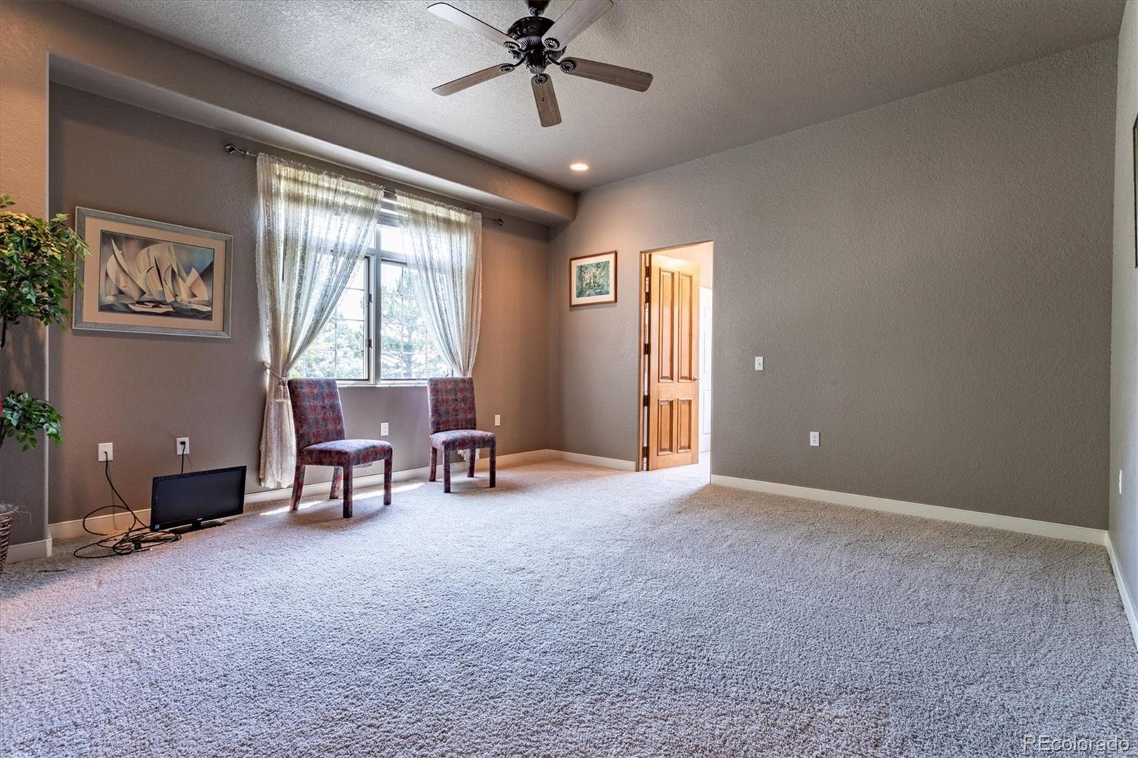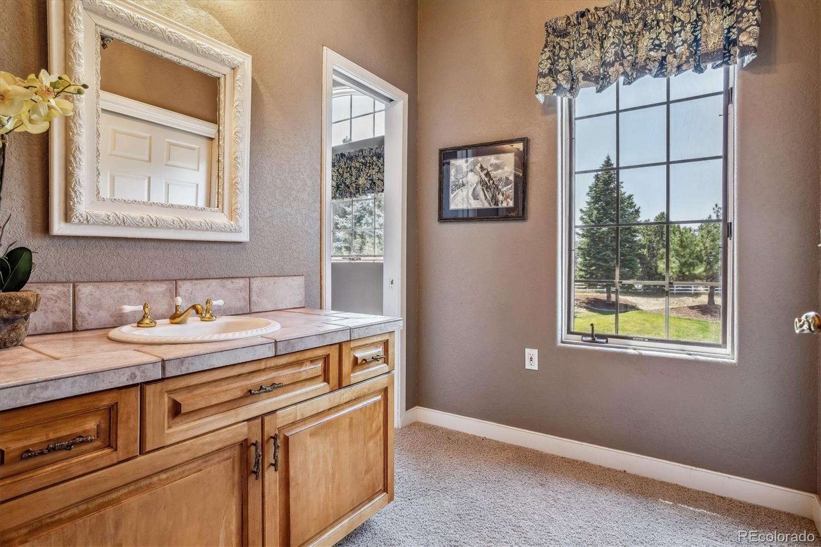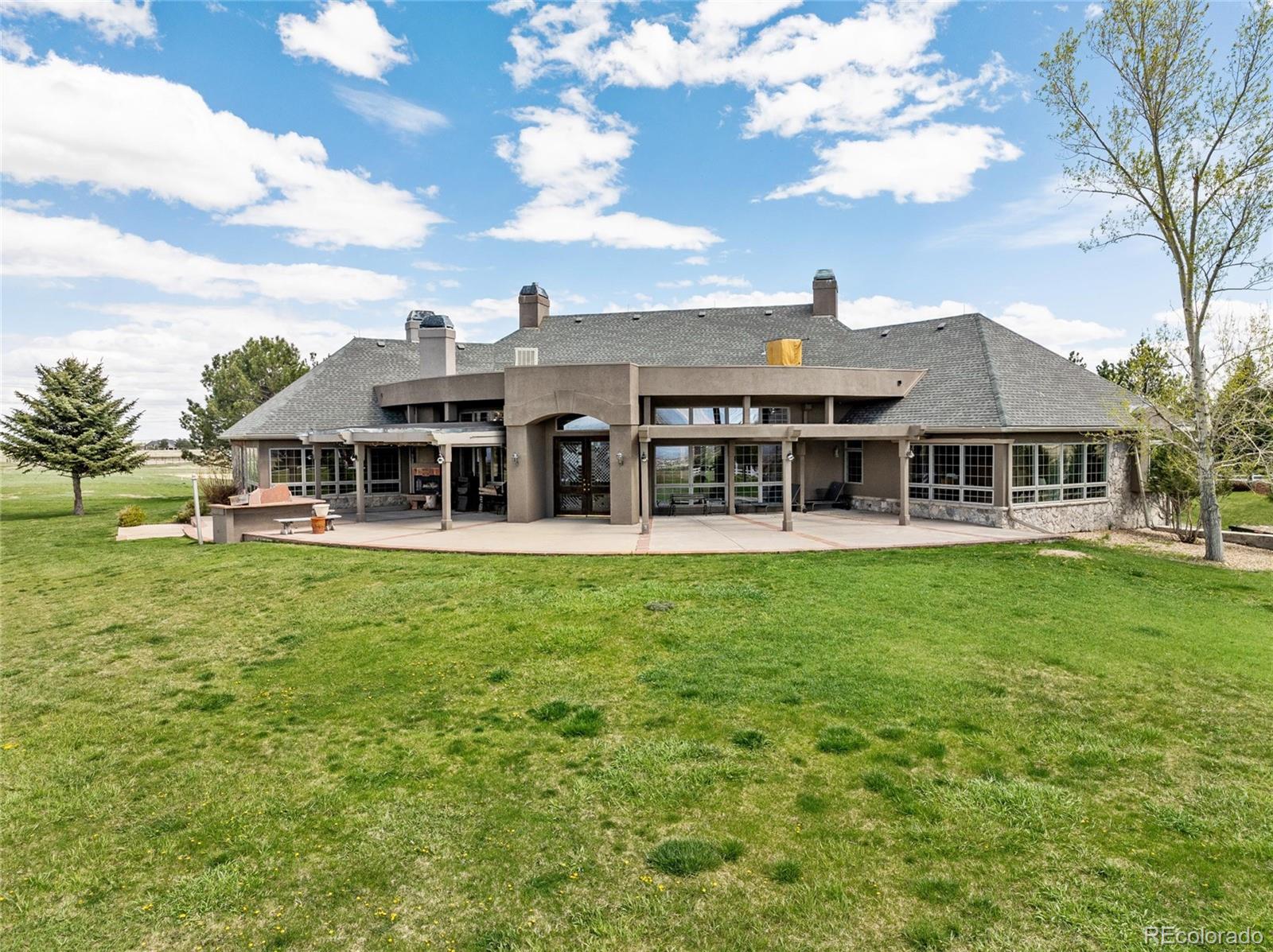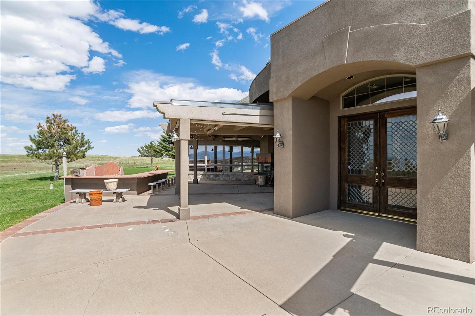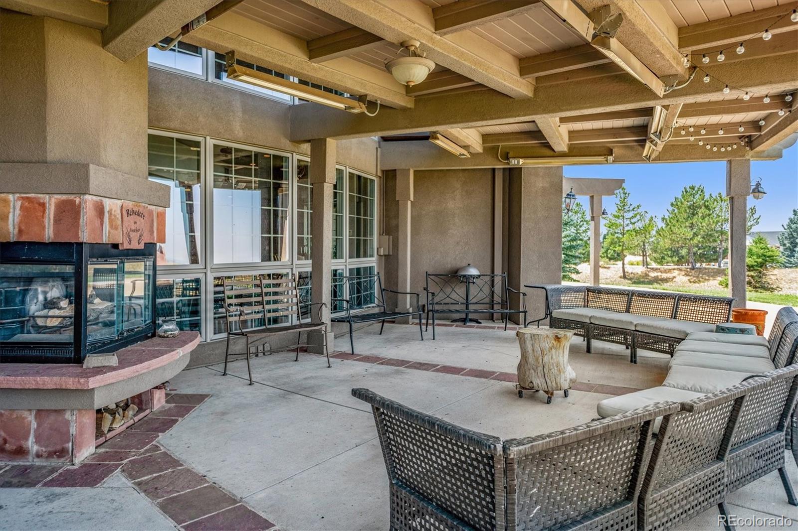 Belvedere on Heather is a rare estate on 5.88 private acres, offering breathtaking mountain and city views from Pikes Peak to Longs Peak and the Denver skyline. This one-of-a-kind residence blends refined French elegance with timeless Southern charm. A grand foyer opens to an expansive great room with soaring ceilings, a dramatic floor-to-ceiling stone fireplace, and a sitting area perfectly positioned for spectacular sunsets. Designed for both entertaining and everyday living, the space flows seamlessly into a stunning sunroom where panoramic views take center stage. The gourmet kitchen is a true showpiece, featuring European cabinetry, an antique tin ceiling, multiple sinks and appliances, and an impressive 11-seat island crafted from the original mahogany back bar of the historic Brown Palace. An inviting breakfast room, butlers pantry, and formal dining room with custom detailing complete this exceptional space. A private en-suite office with a stained-glass ceiling offers a serene workspace. The owners retreat is a luxurious sanctuary with walls of windows, a fireplace, dual vanities, and a spacious custom closet. A second spa-like bath features a soaking tub, steam shower, and walk-in closet, connected to a well-appointed laundry room. Two additional en-suite bedrooms and a powder room complete the main level. The lower level offers a sitting area, two bedrooms, a full bath, and over 3,300 SF of unfinished heated space ideal for a wine cellar, media room, fitness area, or multigenerational living. Outdoor living shines with lush landscaping, a heated flagstone veranda, indoor/outdoor sound system, private riding trails, and exceptional privacy. Additional highlights include radiant heated floors, vintage doors throughout, brick and stucco exterior, plus a new roof and gutters. An extraordinary estate offering unmatched views, architectural distinction, and timeless elegance in a truly remarkable setting.