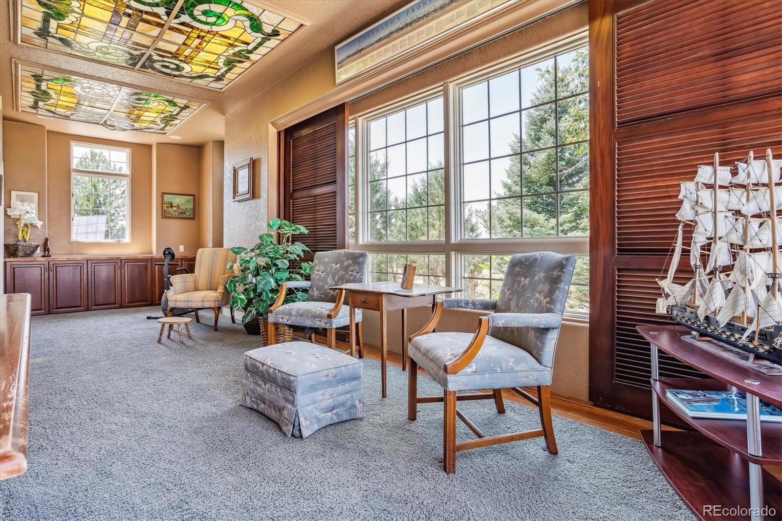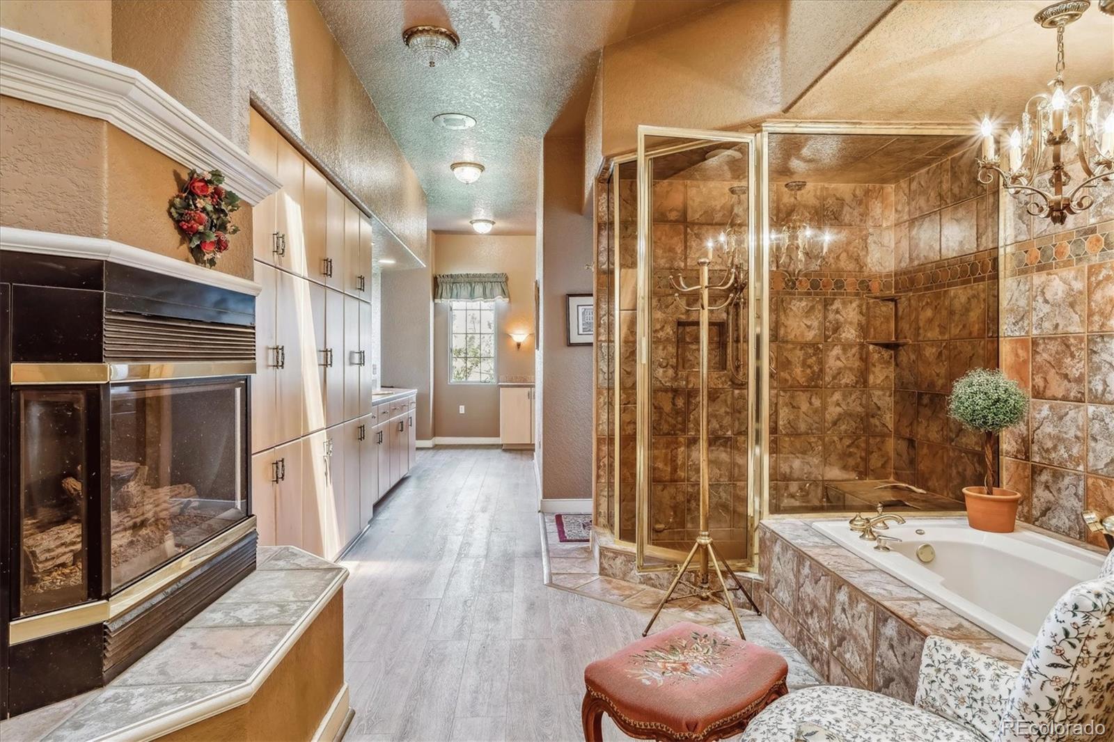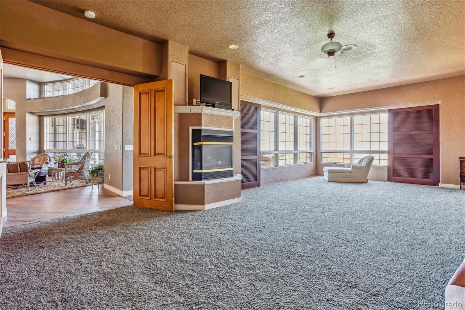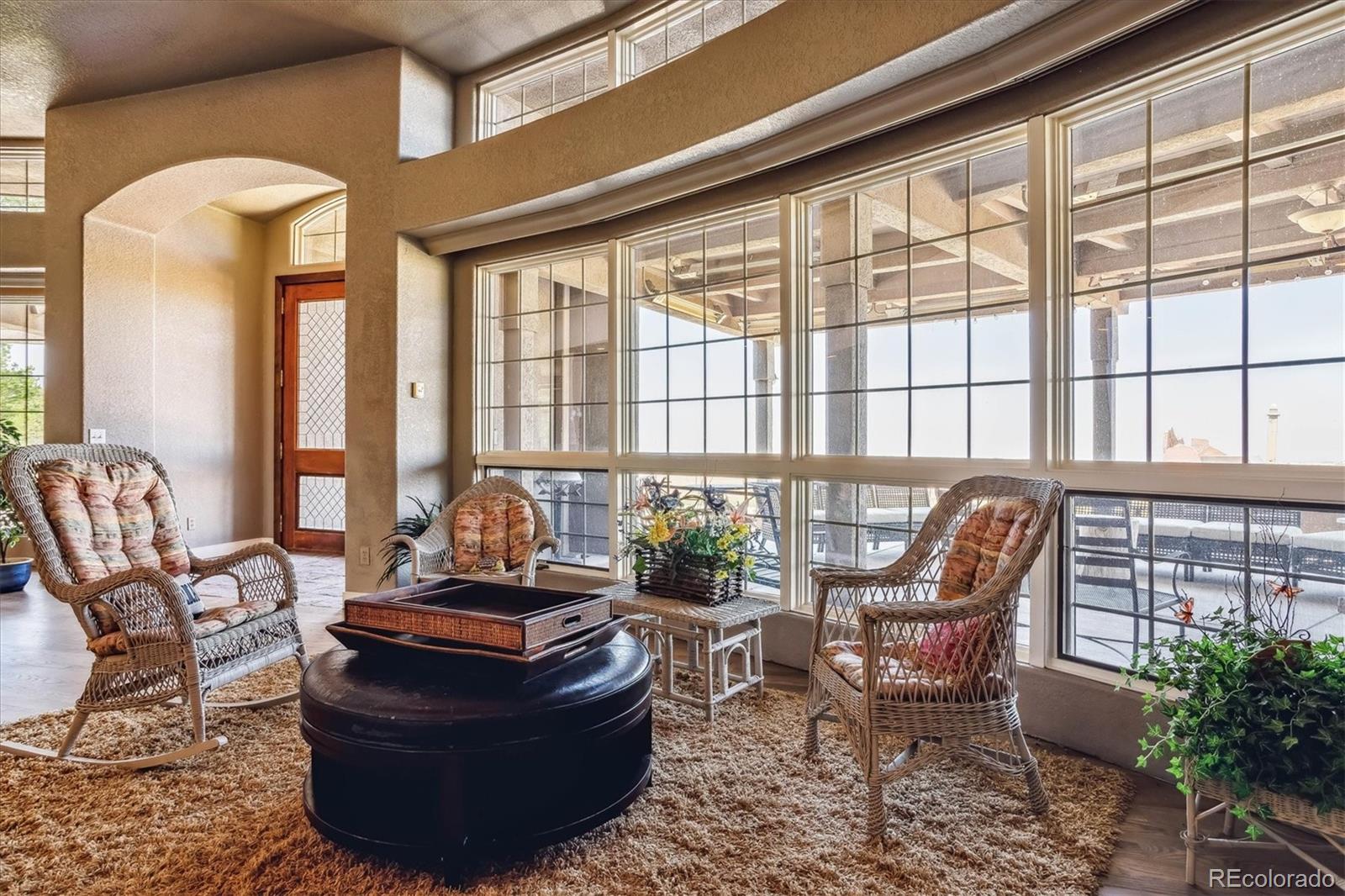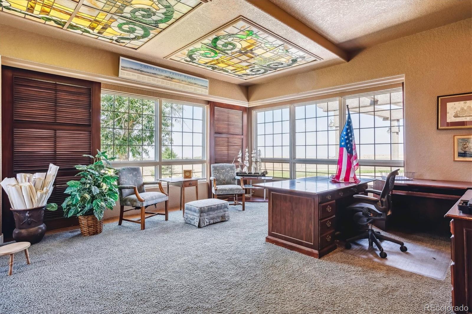 Belvedere on Heather is a rare estate on 5.88 private acres, offering breathtaking mountain and city views from Pikes Peak to Longs Peak and the Denver skyline. This one-of-a-kind residence blends refined French elegance with timeless Southern charm. A grand foyer opens to an expansive great room with soaring ceilings, a dramatic floor-to-ceiling stone fireplace, and a sitting area perfectly positioned for spectacular sunsets. Designed for both entertaining and everyday living, the space flows seamlessly into a stunning sunroom where panoramic views take center stage. The gourmet kitchen is a true showpiece, featuring European cabinetry, an antique tin ceiling, multiple sinks and appliances, and an impressive 11-seat island crafted from the original mahogany back bar of the historic Brown Palace. An inviting breakfast room, butlers pantry, and formal dining room with custom detailing complete this exceptional space. A private en-suite office with a stained-glass ceiling offers a serene workspace. The owners retreat is a luxurious sanctuary with walls of windows, a fireplace, dual vanities, and a spacious custom closet. A second spa-like bath features a soaking tub, steam shower, and walk-in closet, connected to a well-appointed laundry room. Two additional en-suite bedrooms and a powder room complete the main level. The lower level offers a sitting area, two bedrooms, a full bath, and over 3,300 SF of unfinished heated space ideal for a wine cellar, media room, fitness area, or multigenerational living. Outdoor living shines with lush landscaping, a heated flagstone veranda, indoor/outdoor sound system, private riding trails, and exceptional privacy. Additional highlights include radiant heated floors, vintage doors throughout, brick and stucco exterior, plus a new roof and gutters. An extraordinary estate offering unmatched views, architectural distinction, and timeless elegance in a truly remarkable setting.