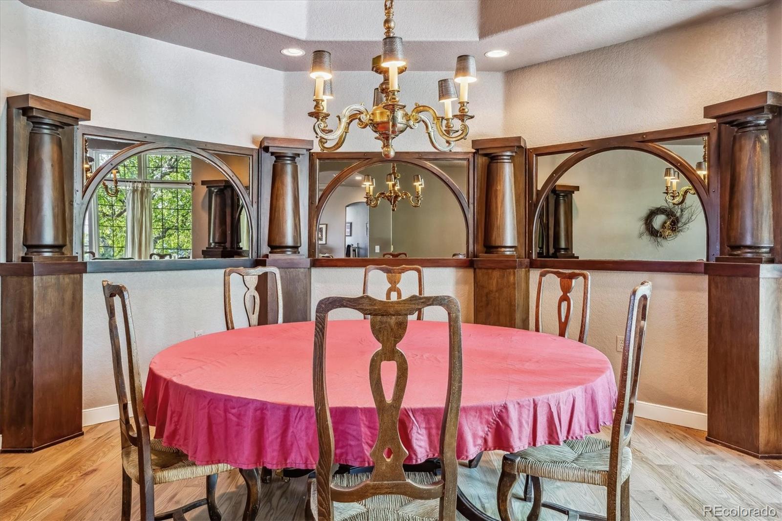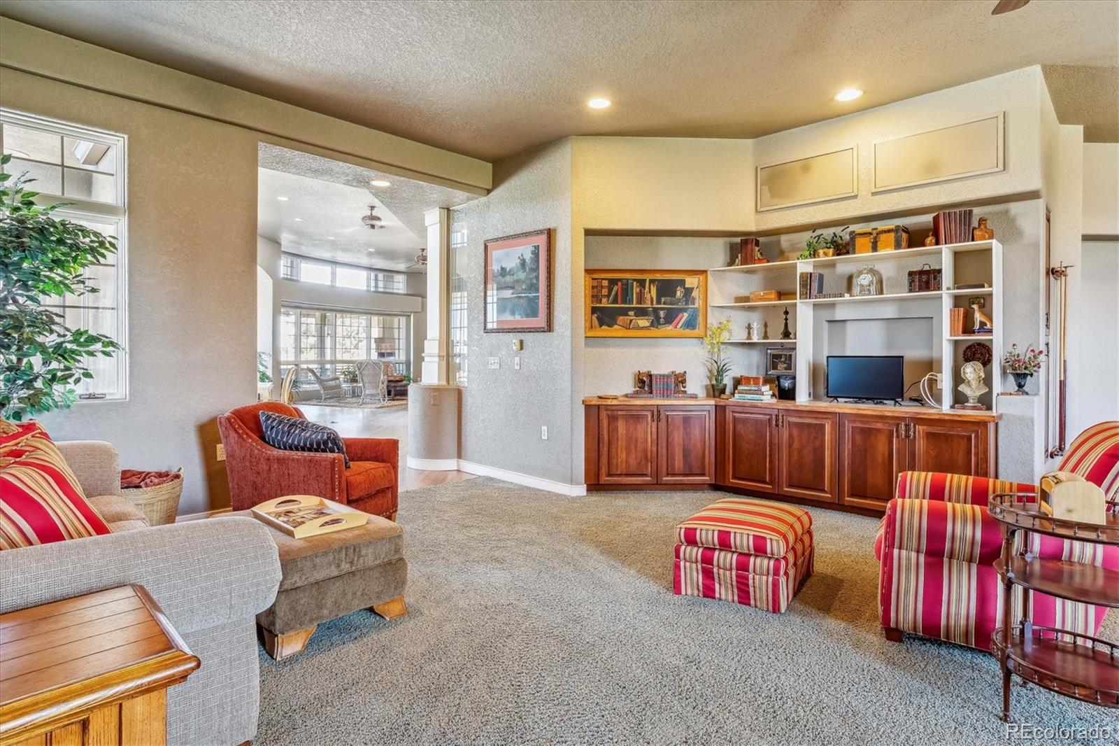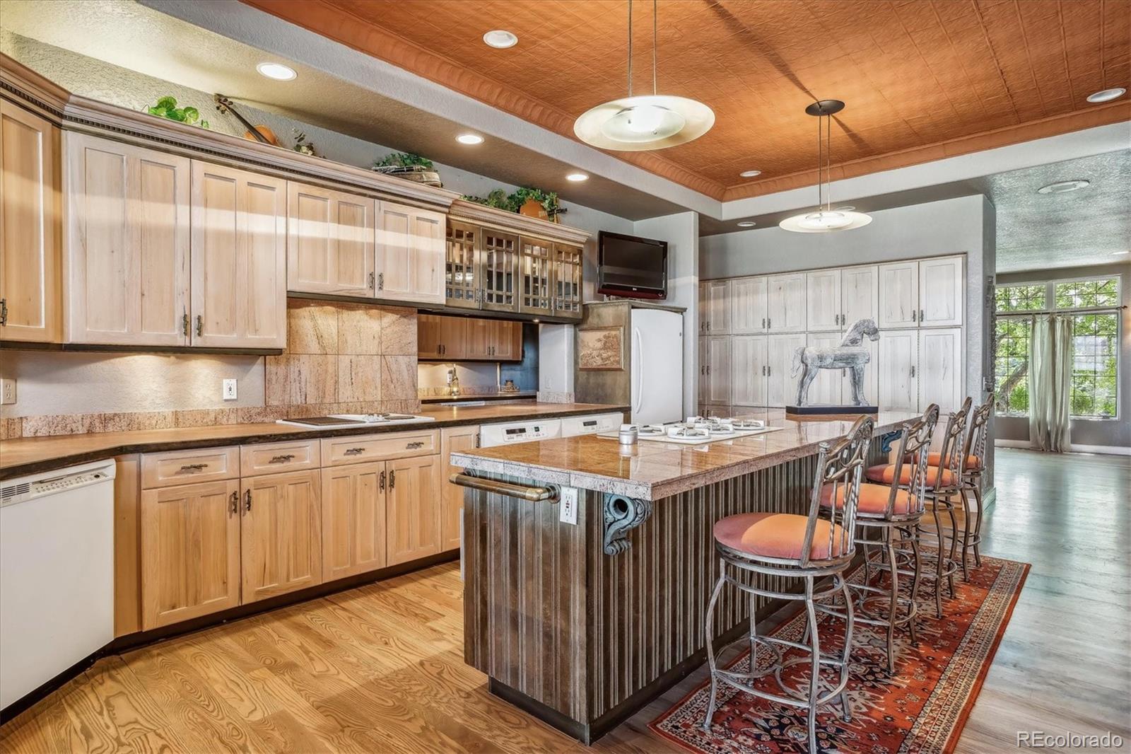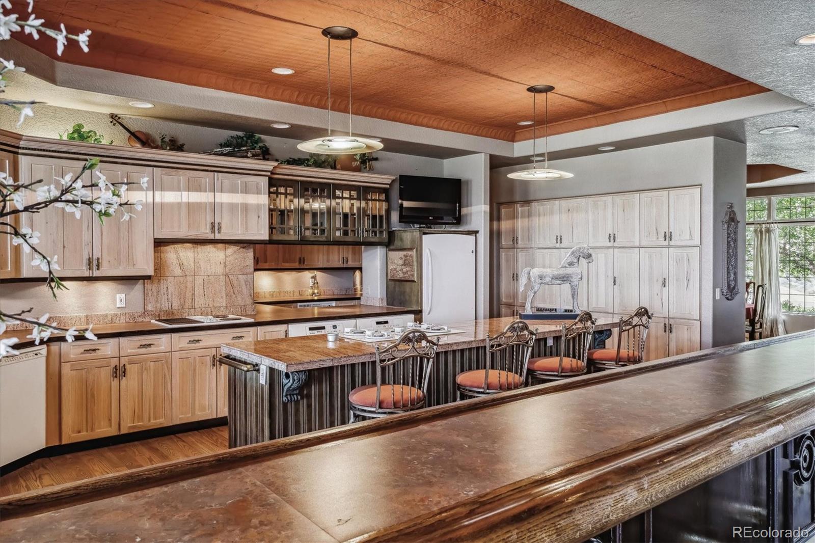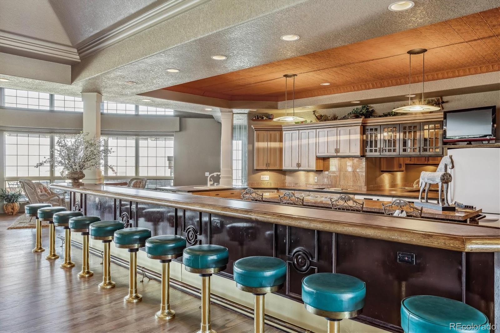 Belvedere on Heather is a rare estate on 5.88 private acres, offering breathtaking mountain and city views from Pikes Peak to Longs Peak and the Denver skyline. This one-of-a-kind residence blends refined French elegance with timeless Southern charm. A grand foyer opens to an expansive great room with soaring ceilings, a dramatic floor-to-ceiling stone fireplace, and a sitting area perfectly positioned for spectacular sunsets. Designed for both entertaining and everyday living, the space flows seamlessly into a stunning sunroom where panoramic views take center stage. The gourmet kitchen is a true showpiece, featuring European cabinetry, an antique tin ceiling, multiple sinks and appliances, and an impressive 11-seat island crafted from the original mahogany back bar of the historic Brown Palace. An inviting breakfast room, butlers pantry, and formal dining room with custom detailing complete this exceptional space. A private en-suite office with a stained-glass ceiling offers a serene workspace. The owners retreat is a luxurious sanctuary with walls of windows, a fireplace, dual vanities, and a spacious custom closet. A second spa-like bath features a soaking tub, steam shower, and walk-in closet, connected to a well-appointed laundry room. Two additional en-suite bedrooms and a powder room complete the main level. The lower level offers a sitting area, two bedrooms, a full bath, and over 3,300 SF of unfinished heated space ideal for a wine cellar, media room, fitness area, or multigenerational living. Outdoor living shines with lush landscaping, a heated flagstone veranda, indoor/outdoor sound system, private riding trails, and exceptional privacy. Additional highlights include radiant heated floors, vintage doors throughout, brick and stucco exterior, plus a new roof and gutters. An extraordinary estate offering unmatched views, architectural distinction, and timeless elegance in a truly remarkable setting.