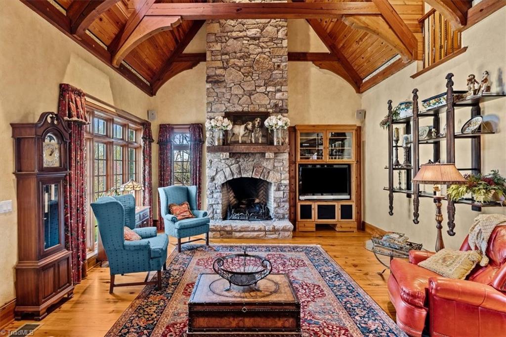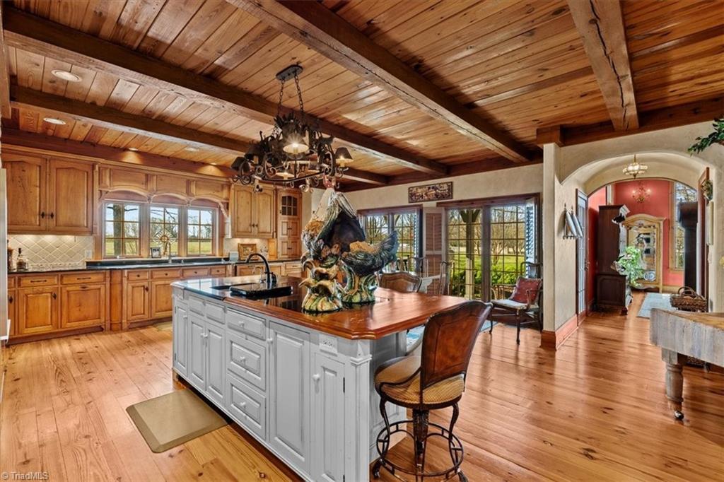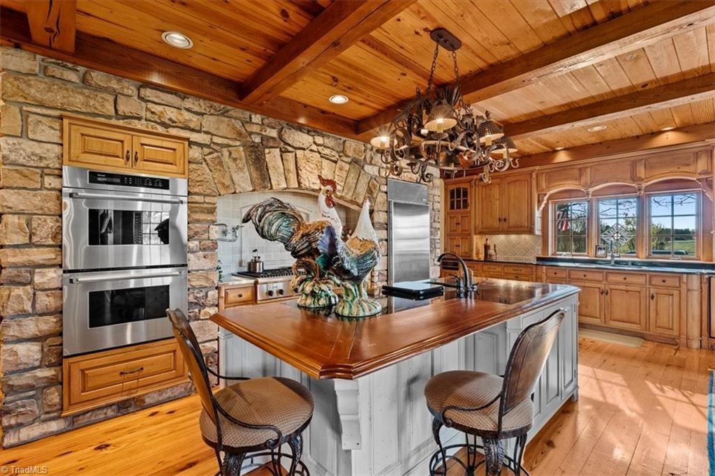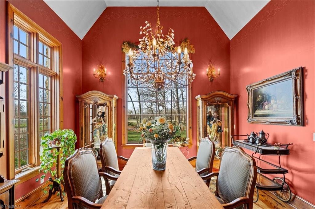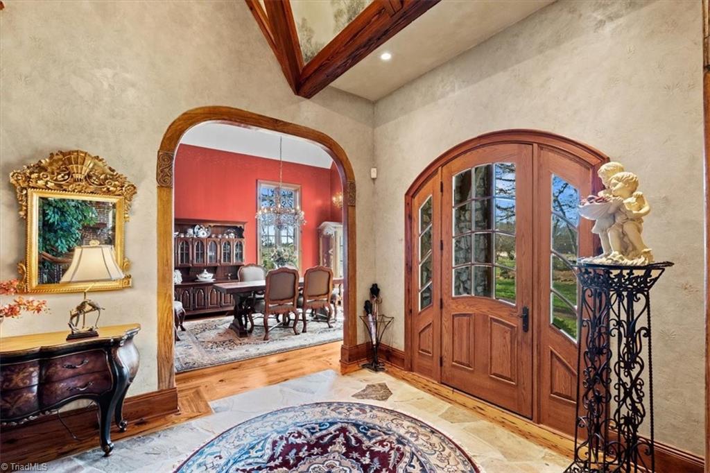 FRENCH COUNTRY CUSTOM HOME.. 8,400 sq ft estate set on 24.26 acres offering space, privacy, and endless possibilities. This unique property features a massive 37x22 living room with fireplace plus a separate family room with its own fireplace, creating multiple inviting living areas. The kitchen is a true standout with custom wormy maple cabinetry milled from the property, along with high-end appliances including Sub-Zero refrigerator, Thermador double ovens, Thermador 6-burner gas cooktop with grill, Bosch dishwasher, and built-in ice maker. A custom HVAC system designed by Harry Boody provides enhanced comfort and efficiency. Outside, the property is ideal for equestrian or recreational use with two horse barns, usable land, and a scenic pond fed by a second well. The grounds are absolutely beautiful with all the different flowers and shrubs. There is so much more to share.. A rare opportunity to own a property that combines craftsmanship, land, and lifestyle.