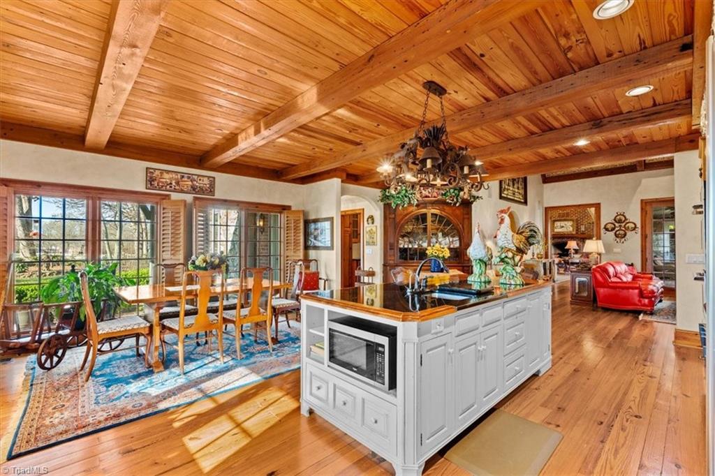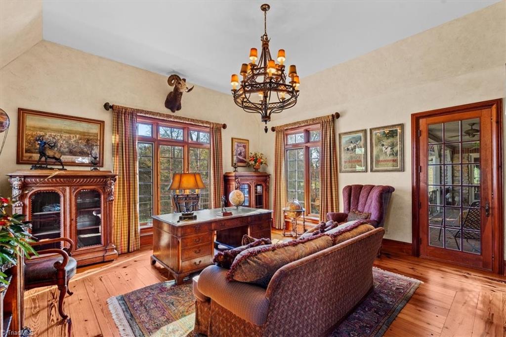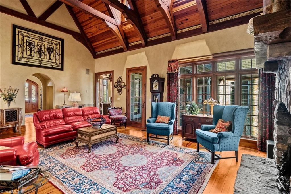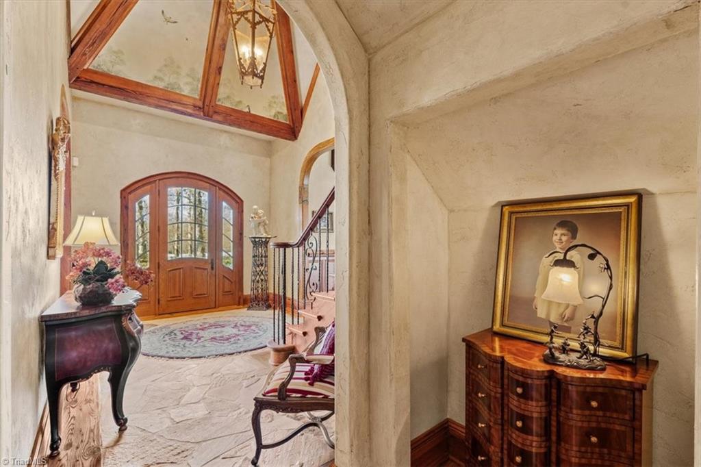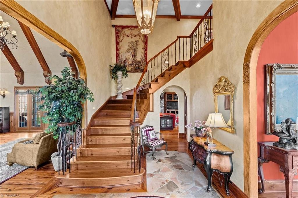 FRENCH COUNTRY CUSTOM HOME.. 8,400 sq ft estate set on 24.26 acres offering space, privacy, and endless possibilities. This unique property features a massive 37x22 living room with fireplace plus a separate family room with its own fireplace, creating multiple inviting living areas. The kitchen is a true standout with custom wormy maple cabinetry milled from the property, along with high-end appliances including Sub-Zero refrigerator, Thermador double ovens, Thermador 6-burner gas cooktop with grill, Bosch dishwasher, and built-in ice maker. A custom HVAC system designed by Harry Boody provides enhanced comfort and efficiency. Outside, the property is ideal for equestrian or recreational use with two horse barns, usable land, and a scenic pond fed by a second well. The grounds are absolutely beautiful with all the different flowers and shrubs. There is so much more to share.. A rare opportunity to own a property that combines craftsmanship, land, and lifestyle.