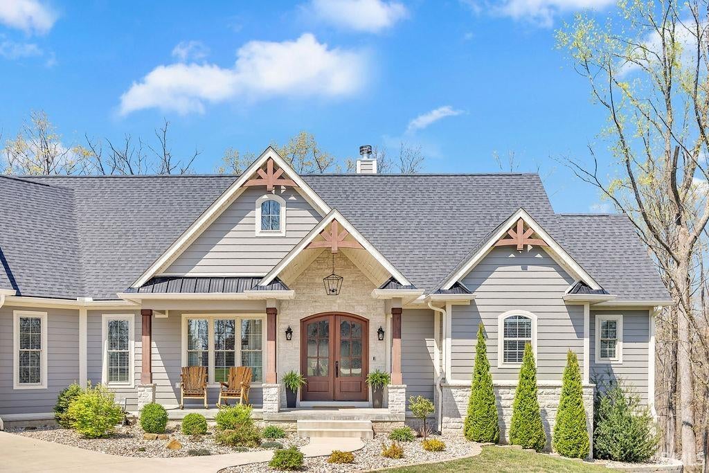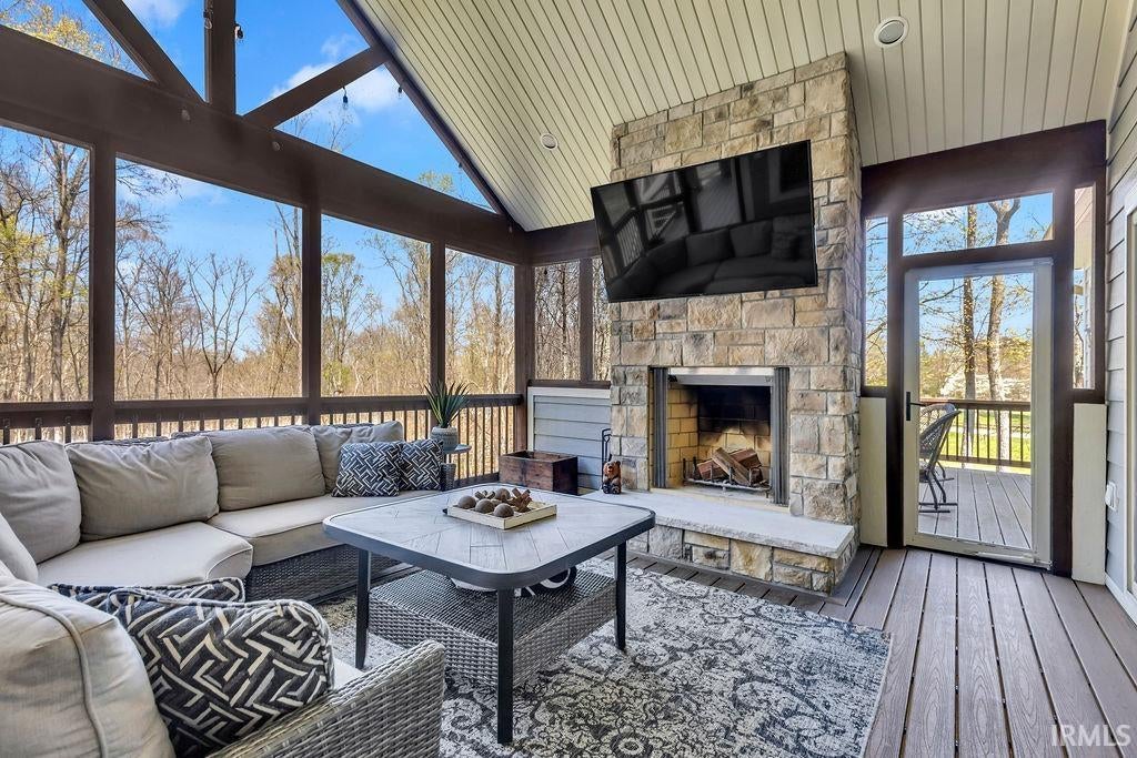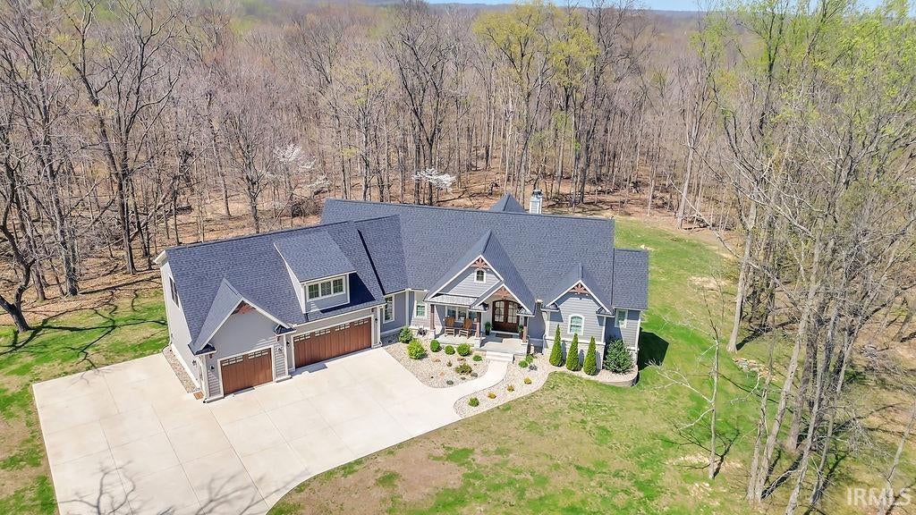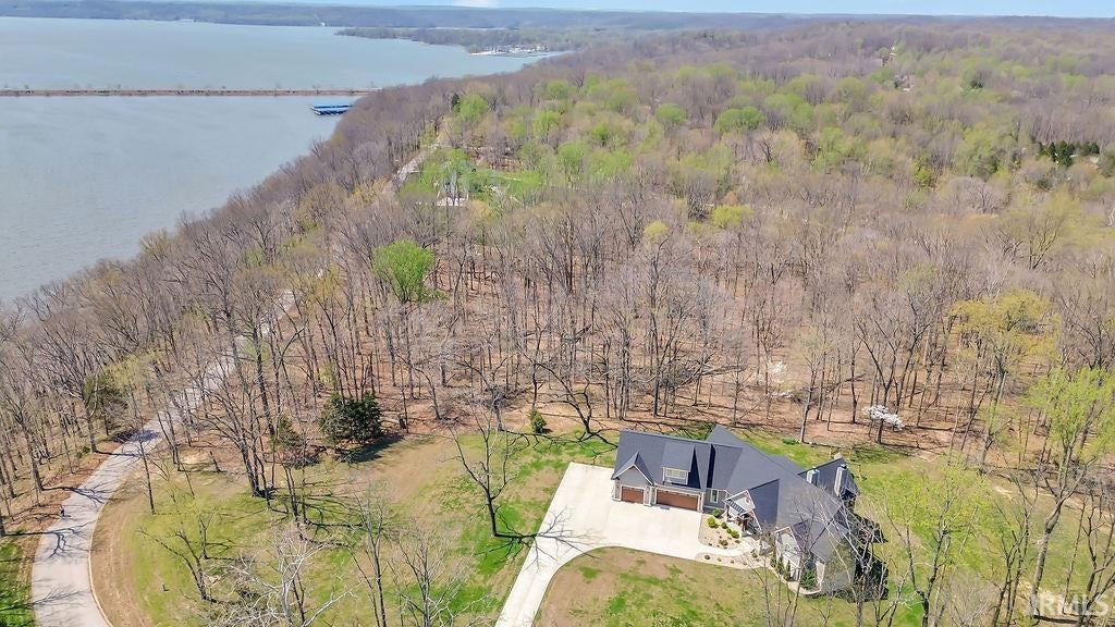 An open floor plan, exceptional craftsmanship, and a prime location on the shores of Lake Monroe define this custom-built ranch over a walkout basement. Offering over 5,000 square feet, 5 bedrooms, 5 baths, and a 3-car garage, this home sits on two lots totaling 6.5 acres and was constructed in 2021 by Keystone Buildersstill living and feeling like new. This stylish exterior combines stone and cement board for timeless curb appeal, while the main level showcases a stunning great room that flows seamlessly into the gourmet kitchen and dining area, all overlooking the expansive backyard and incredible covered deck with an exterior fireplaceperfect for entertaining or relaxing. The kitchen is a true centerpiece, featuring a large quartz island, walk-in pantry, abundant custom cabinetry by Fehrenbacher, and high-end appliances including a Sub-Zero refrigerator, double ovens, and a 6-burner gas range. The main level also offers two bedroom suites, rich hardwood flooring, and an additional stone fireplace. The luxurious primary suite delivers everything youd expect, including a walk-in tile shower and a spacious walk-in closet with built-in shelving. A second ensuite bedroom provides flexibility and convenient access to the large bonus room over the garage. The walkout lower level is equally impressive with three additional bedrooms and two full baths, including a well-appointed guest suite. Youll also find a large family room, dedicated workout space, and a finished, temperature-controlled storage area. Mechanical systems are all within five years old and include an efficient dual geothermal and gas heating and cooling system. Directly across the street, 30 acres owned by Sycamore Land Trust offer private access to wooded trails, adding even more to this incredible setting. Dont miss this rare combination of location, quality, and space on Lake Monroe.