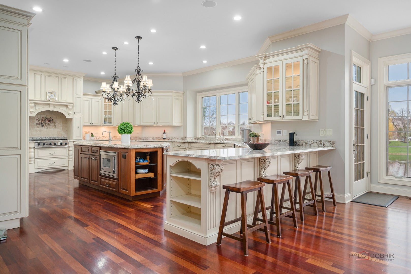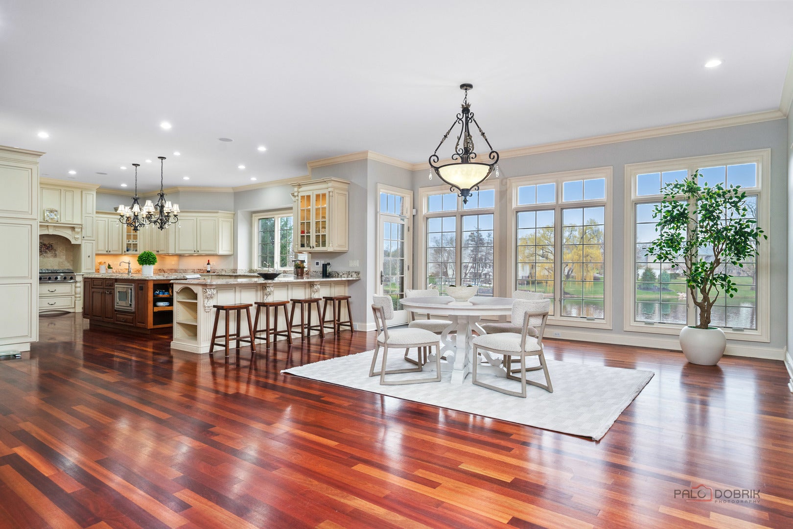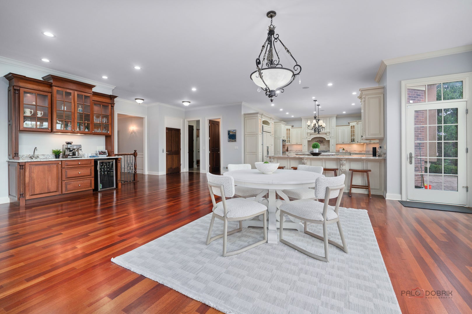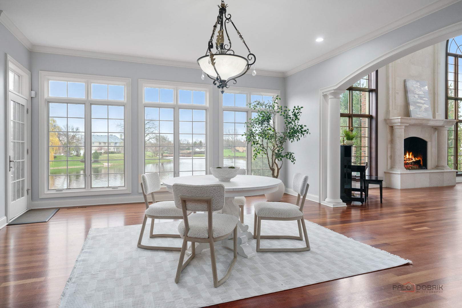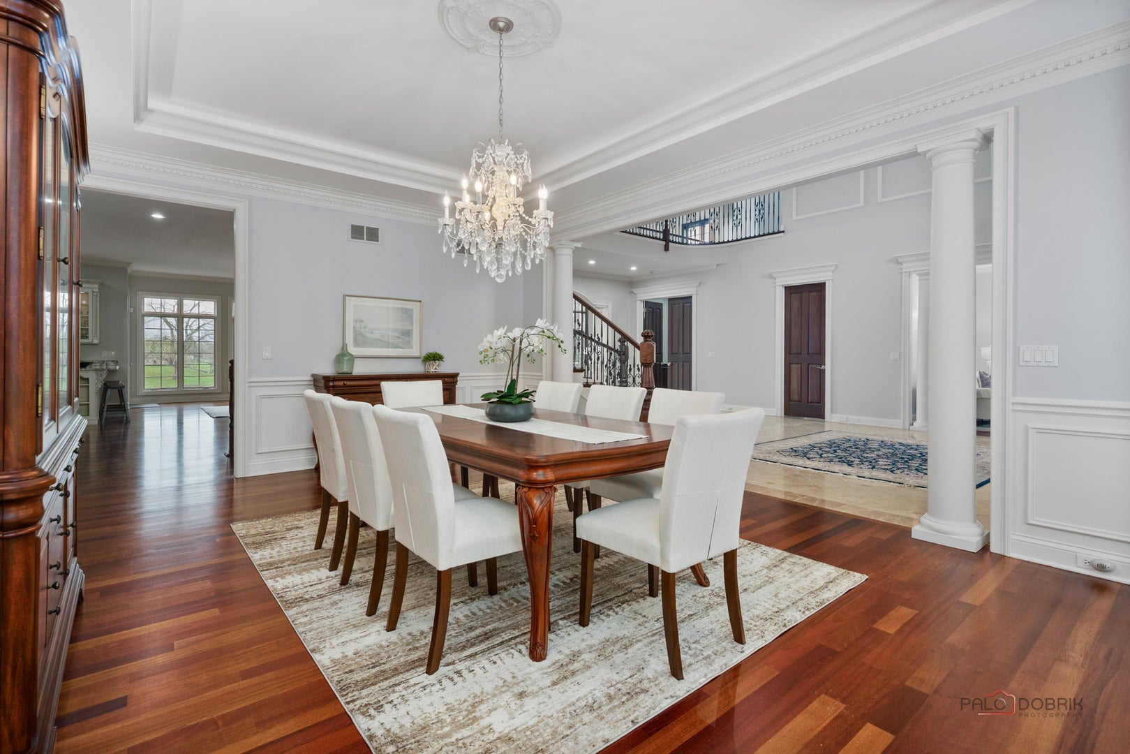Experience luxury living at its finest in this spectacular 6-bedroom, 6.1-bath custom home by renowned Harris Builders, showcasing exceptional craftsmanship and high-end finishes throughout. A grand foyer welcomes you into elegant living and dining rooms, while the impressive two-story family room with fireplace creates a stunning focal point for everyday living and entertaining. The gourmet kitchen is a chefs dream, featuring a large island, abundant cabinetry and counter space, walk-in pantry, and a spacious eating area complete with a wet bar. A main-level bedroom suite, with an attached full bath, offers flexibility for guests or a private home office, and a huge laundry room adds everyday convenience. Upstairs, retreat to the lavish primary suite with a spa-inspired bath offering a soaking tub, oversized separate shower, double vanity, and an enormous walk-in closet. Four additional bedrooms include two sharing a Jack-and-Jill bath and two with private en-suite baths. The expansive finished basement is an entertainers paradise with a wet bar, fireplace, full bath, gym or potential guest bedroom, and abundant storage. Enjoy outdoor living in the open backyard backing to a tranquil pond, highlighted by a massive patio and circular driveway, perfectly complementing this extraordinary home designed for comfort, elegance, and unforgettable gatherings.
