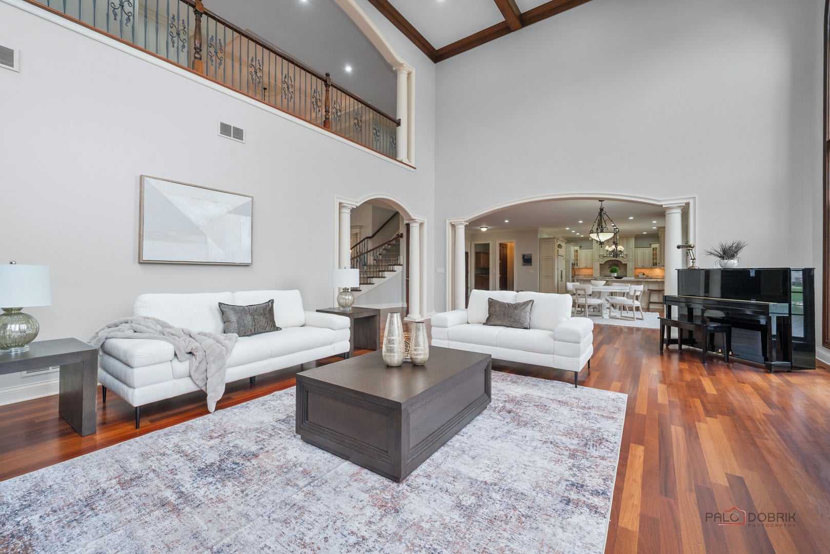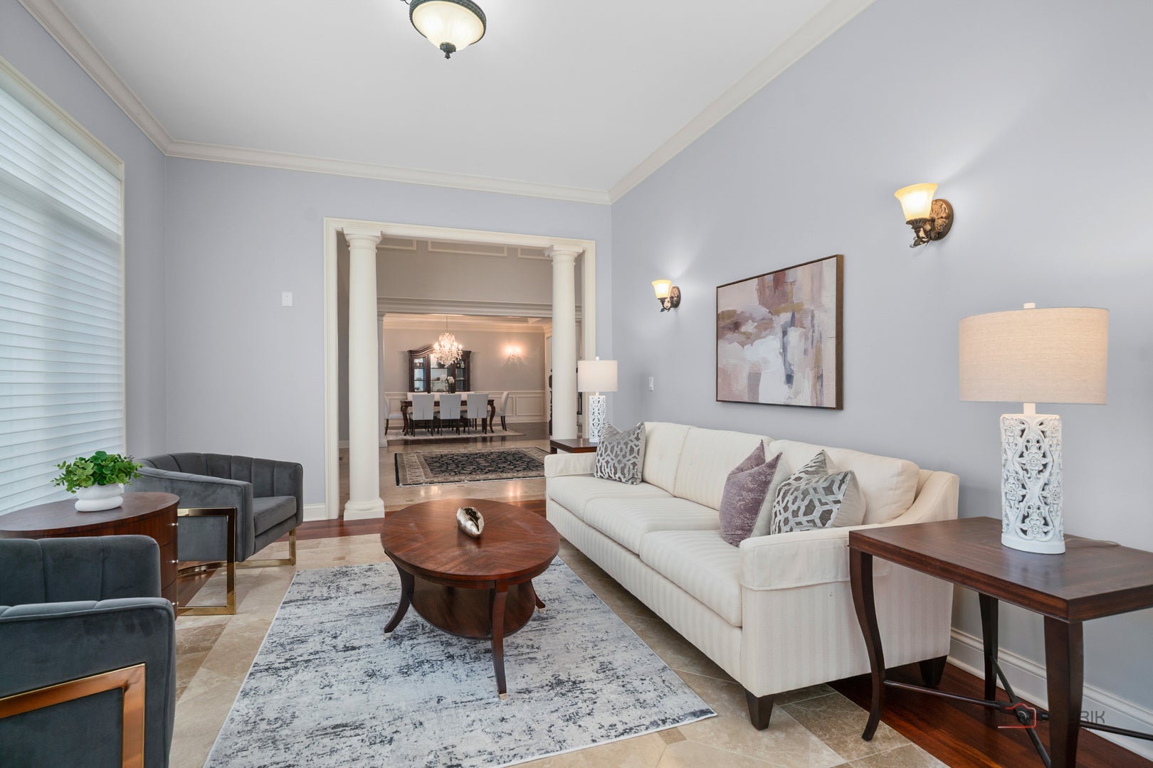 Experience luxury living at its finest in this spectacular 6-bedroom, 6.1-bath custom home by renowned Harris Builders, showcasing exceptional craftsmanship and high-end finishes throughout. A grand foyer welcomes you into elegant living and dining rooms, while the impressive two-story family room with fireplace creates a stunning focal point for everyday living and entertaining.