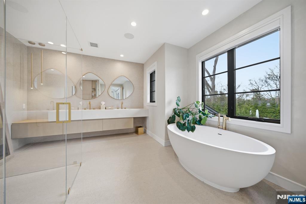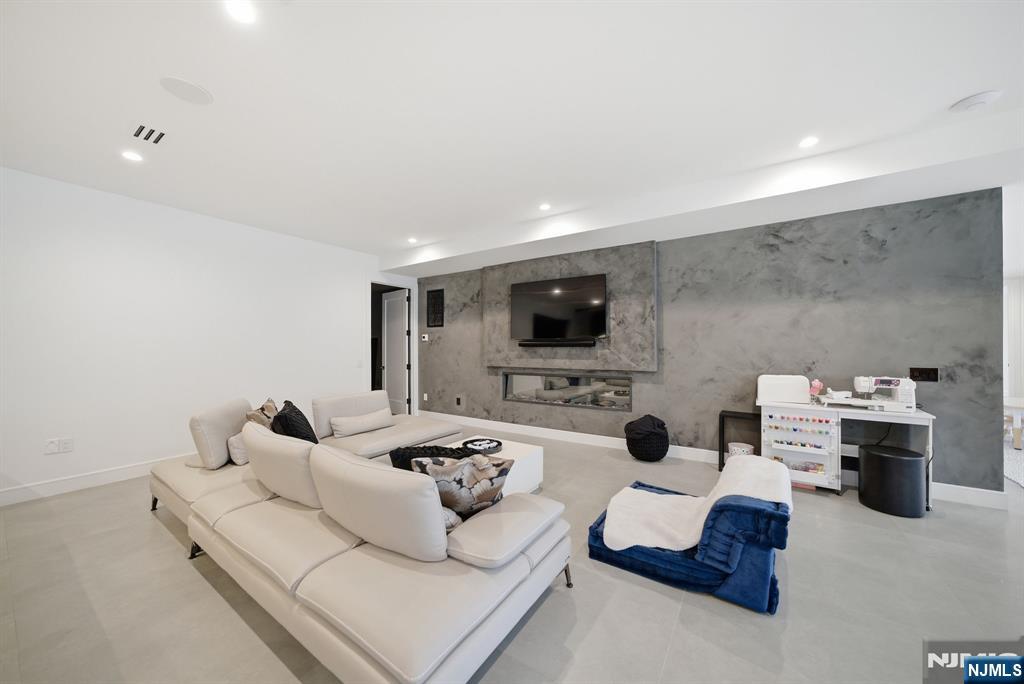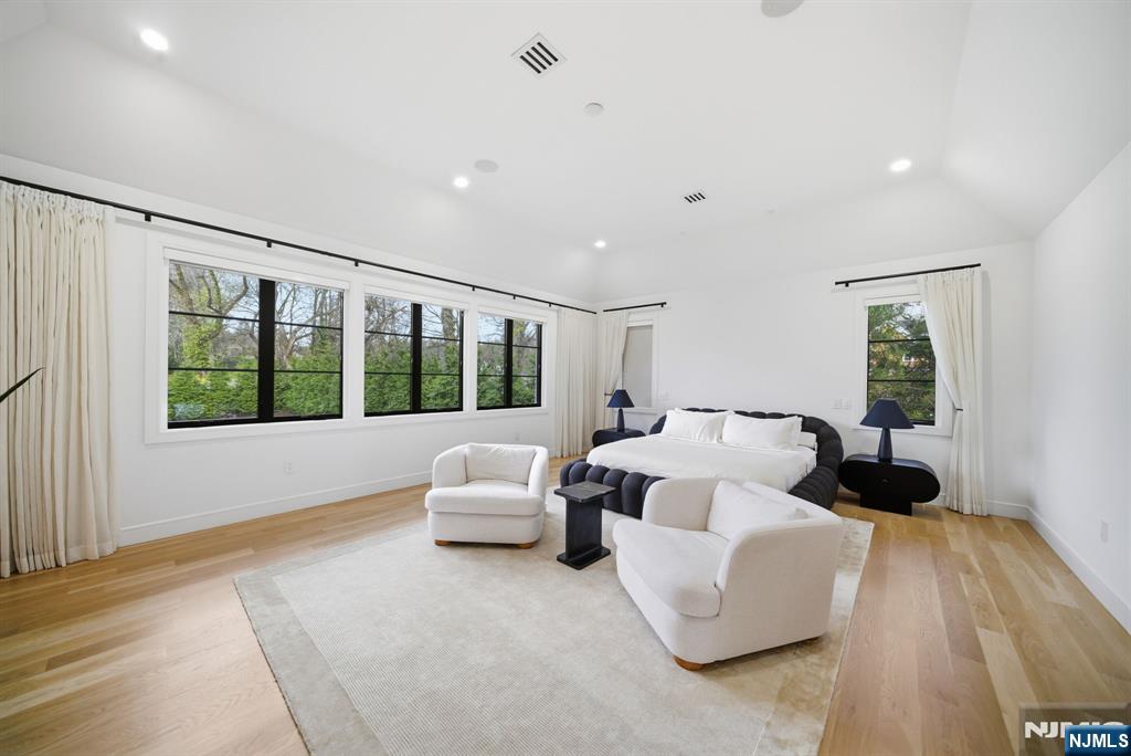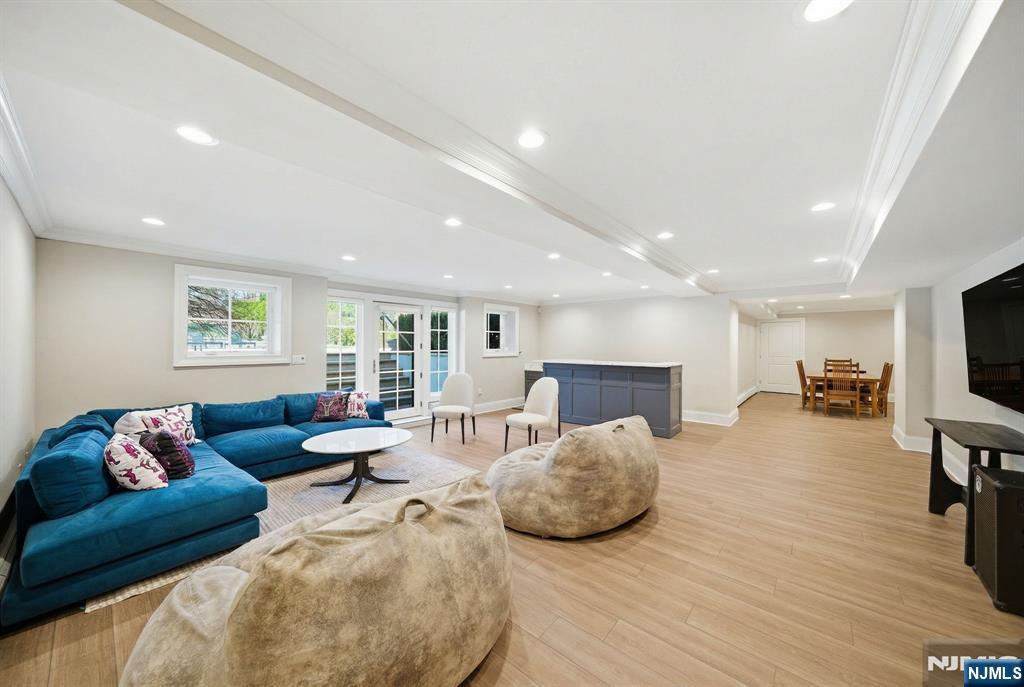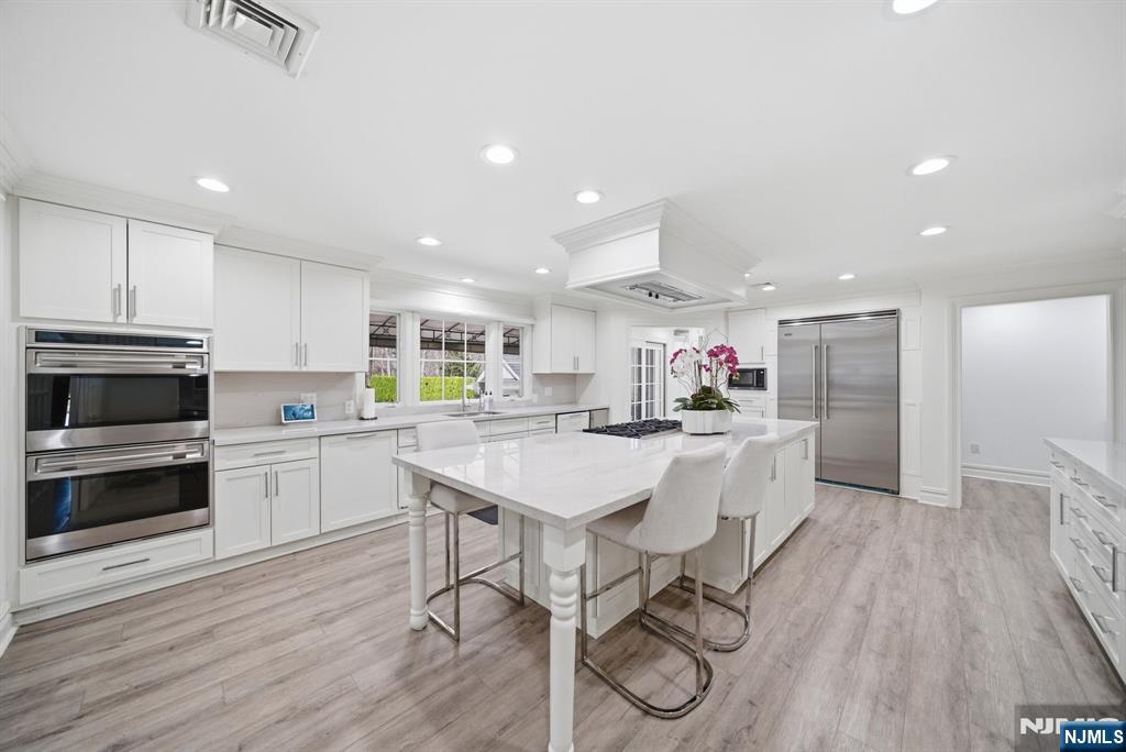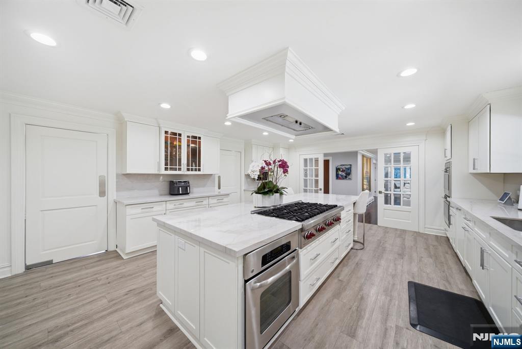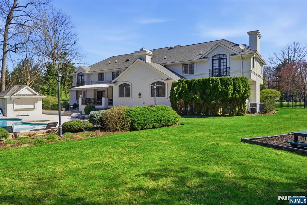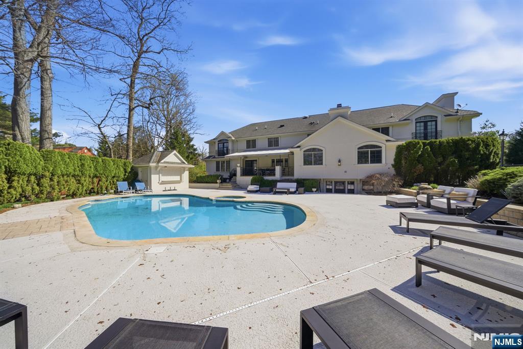 Set on one of Cresskills most beautiful streets, this fully renovated stucco home offers exceptional curb appeal with a circular driveway. A grand double-height foyer opens to elegant living and dining rooms, leading to a brand-new chefs kitchen overlooking a magnificent family room with fireplace. An additional spacious TV room with its own fireplace provides flexible use as a bedroom or office. The main level also features two full baths, including a cabana bath for pool access, and a three-car garage. Upstairs offers five en-suite bedrooms, including a luxurious primary suite with a large walk-in closet and spa-like bath, plus convenient second-floor laundry. The fully finished walk-out lower level spans the footprint of the home and includes a bedroom, full bath, gym, sauna, and expansive recreation space. A seamless indoor-outdoor lifestyle completes this exceptional offering.