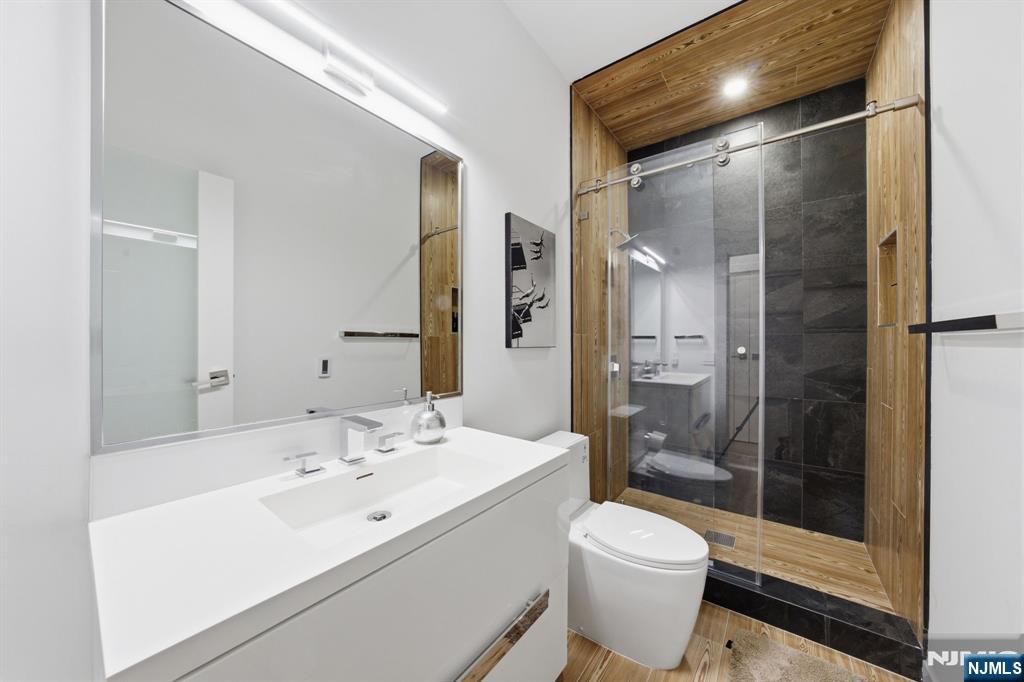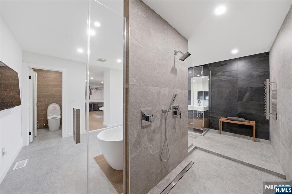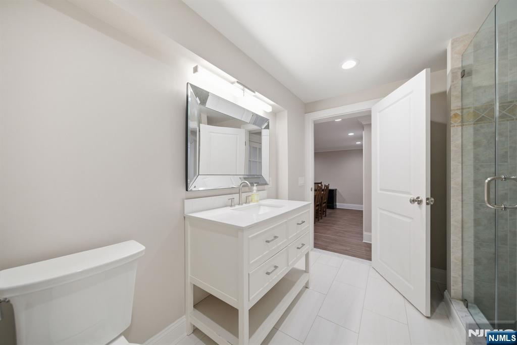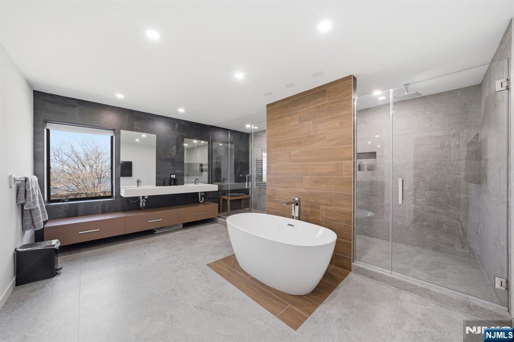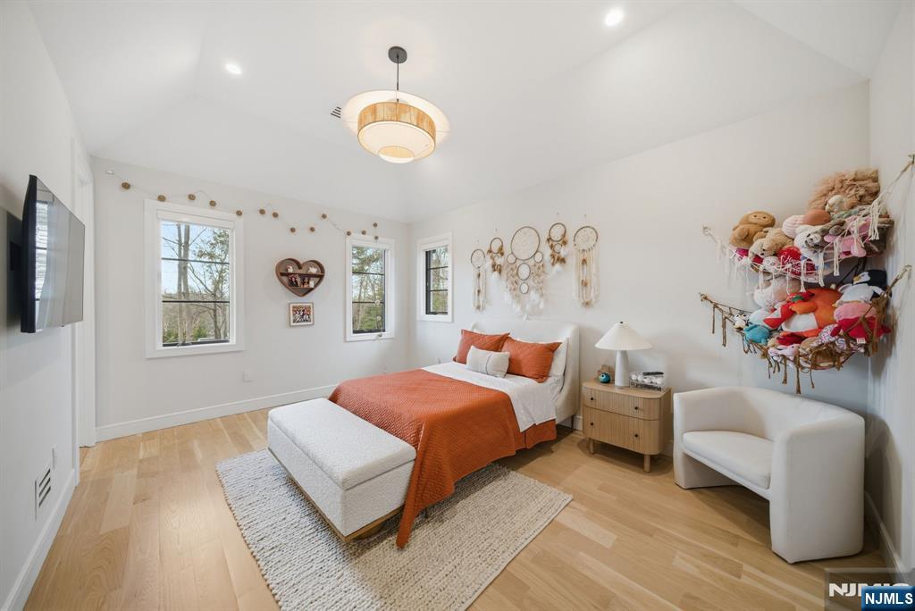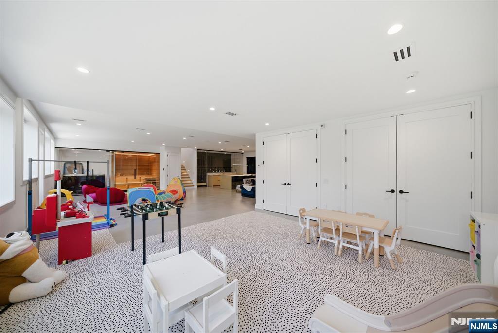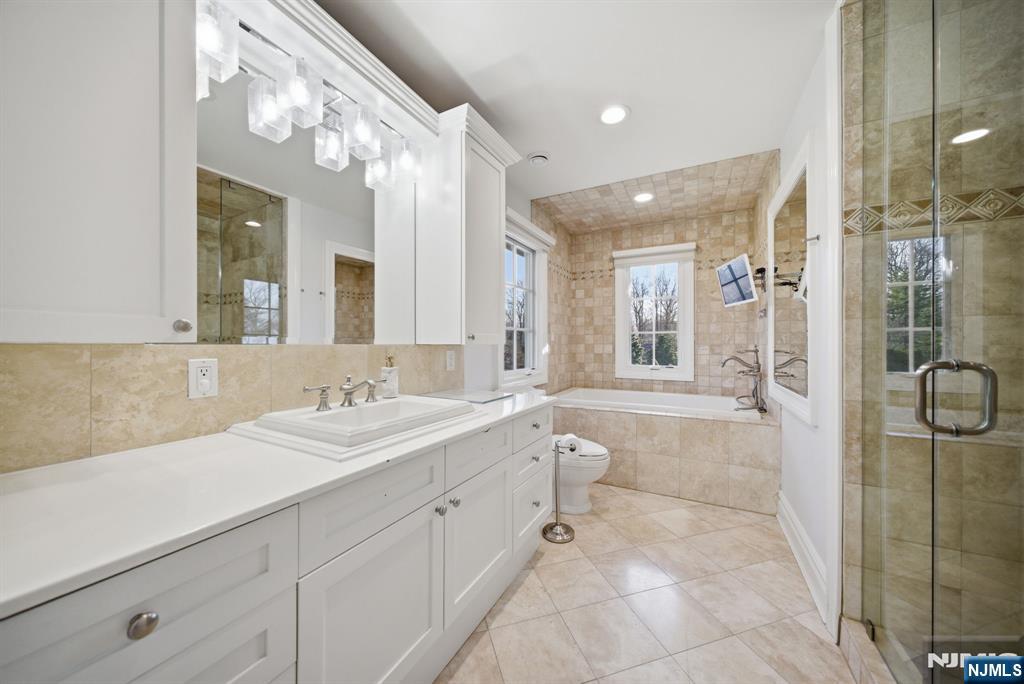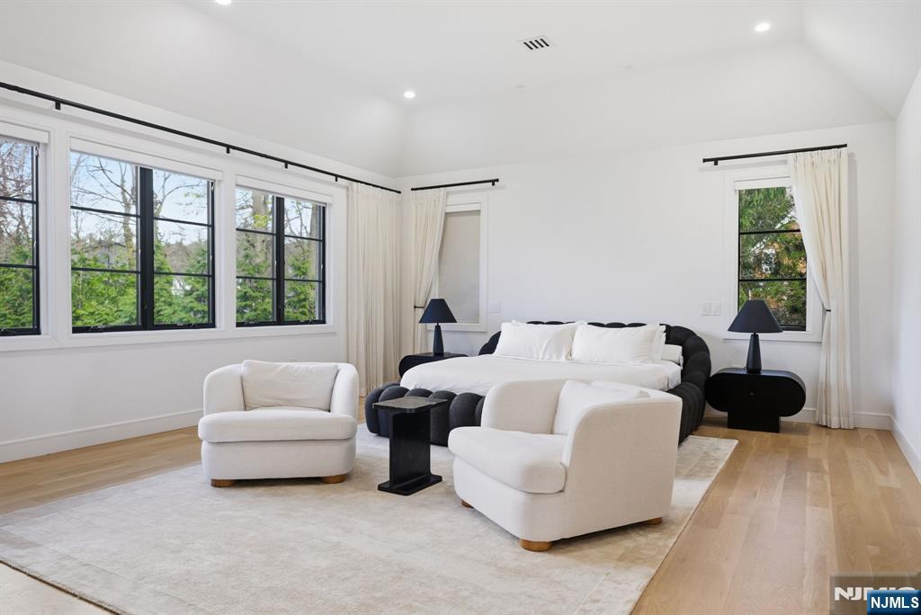 Set on one of Cresskills most beautiful streets, this fully renovated stucco home offers exceptional curb appeal with a circular driveway. A grand double-height foyer opens to elegant living and dining rooms, leading to a brand-new chefs kitchen overlooking a magnificent family room with fireplace. An additional spacious TV room with its own fireplace provides flexible use as a bedroom or office. The main level also features two full baths, including a cabana bath for pool access, and a three-car garage. Upstairs offers five en-suite bedrooms, including a luxurious primary suite with a large walk-in closet and spa-like bath, plus convenient second-floor laundry. The fully finished walk-out lower level spans the footprint of the home and includes a bedroom, full bath, gym, sauna, and expansive recreation space. A seamless indoor-outdoor lifestyle completes this exceptional offering.