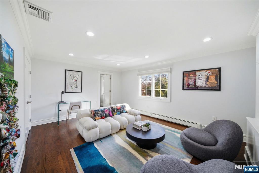 Set on one of Cresskills most beautiful streets, this fully renovated stucco home offers exceptional curb appeal with a circular driveway. A grand double-height foyer opens to elegant living and dining rooms, leading to a brand-new chefs kitchen overlooking a magnificent family room with fireplace. An additional spacious TV room with its own fireplace provides flexible use as a bedroom or office.