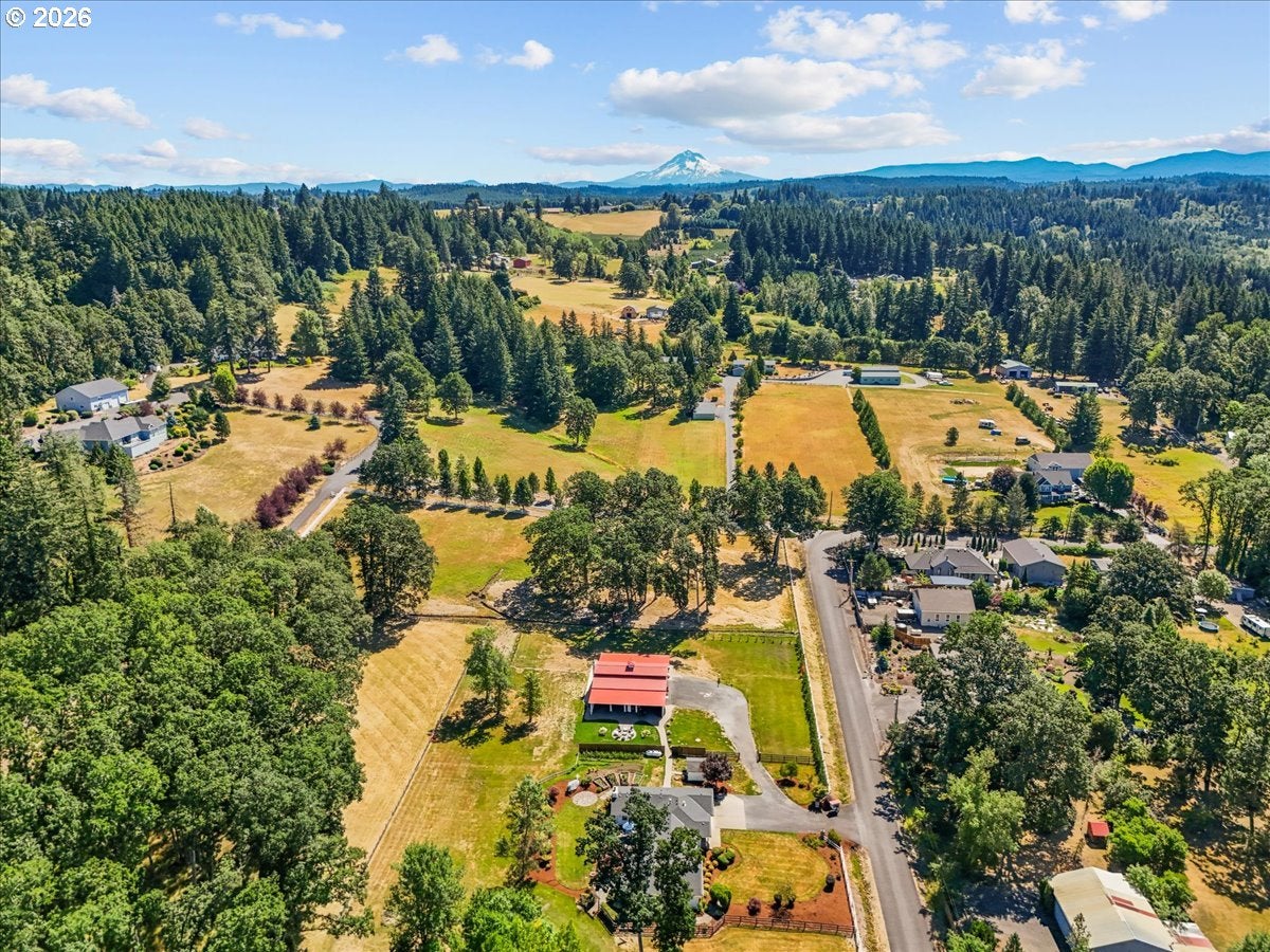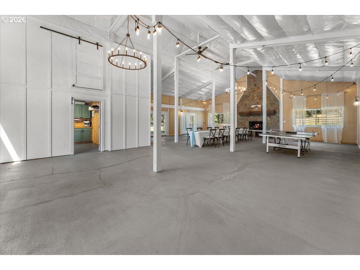 Welcome to this beautifully remodeled one level ranch, nestled on 4.96 private acres. This turnkey home offers comfortable one level living with a brand new kitchen, bathrooms, flooring, appliances, interior doors, and fresh paint inside and out, blending charming farmhouse style with peaceful surroundings. Step outside to enjoy a beautiful backyard featuring a spacious patio and a relaxing jacuzzi, perfect for unwinding or entertaining. The property also includes a stunning barn with 1,728 square feet of flexible space, highlighted by a dramatic floor to ceiling wood burning fireplace, a full kitchen, one bathroom, a two car attached garage, and a dedicated storage area. An inviting covered patio with extra seating and a cozy fire pit makes the space ideal for gatherings under the stars. A rare opportunity to own a unique property that blends comfort, function, and charm, do not miss it. The home also includes a convenient mother in law suite with its own fridge, stovetop, bathroom, and private entrance, ideal for guests or extended family.