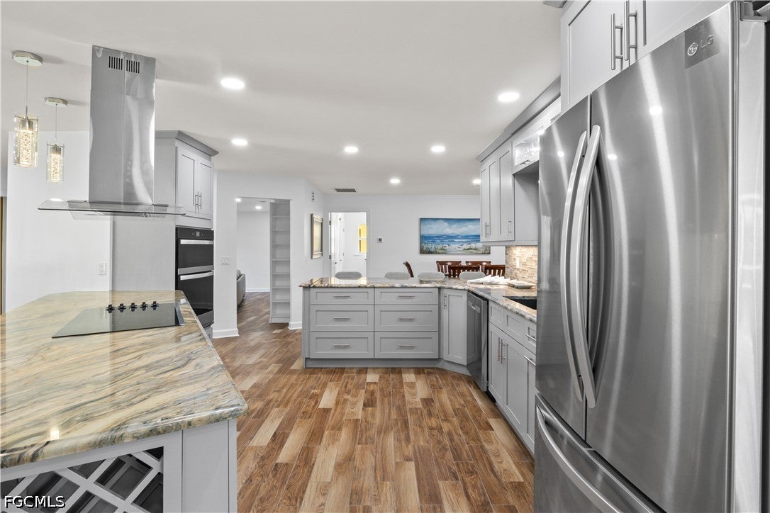 Fabulous TURNKEY executive home in the much sought after Gumbo Limbo subdivision in the heart of Sanibel Island! A sprawling home and premium lot that has been fully renovated with high end luxury finishes - nothing cookie cutter here! Three spacious bedrooms with a split master bedroom retreat and a spa like master bath. A gourmet chefs kitchen is the heart of the home and features an extra-large kitchen island - perfect for social gatherings! The floor plan is very fun and flexible - a large living room, dining area and tv room and a 21 x 21 recreation room with fireplace is perfect for a movie theater or game room. Custom cabinetry, ceramic tile flooring, recessed lighting - everything has been upgraded with only the best finishes! Guest bedrooms are spacious and located in their own wing. The outdoor area is a true oasis - disappearing slider doors blend the interior and exterior for an even larger living space. Pass thrukitchen window to an outdoor wet bar is another thoughtful feature. Pool Lanai has access to bathroom and there is a very large, covered patio with Kevlar hurricane shutters for additional privacy and protection and a large sunning area. Sparkling pool for added enjoyment throughout the year and a large side yard with plenty of space to add an additional outdoor living space or small sports court. The property is fully irrigated, and the gardens are simply beautiful - a front courtyard patio, a paved circular drive and lush landscape are in the front of the home while the backyard is private but also offers beautiful views and sunsets from the lake - this is paradise at its best! Sanibel Island is world famous for miles of beautiful white sandy beaches, some of the best shelling in the country and incredible offshore fishing! Enjoy easy access to Sanibels bike path, shopping and restaurants - also easy access to Fort Myers! Live your best life on the island!